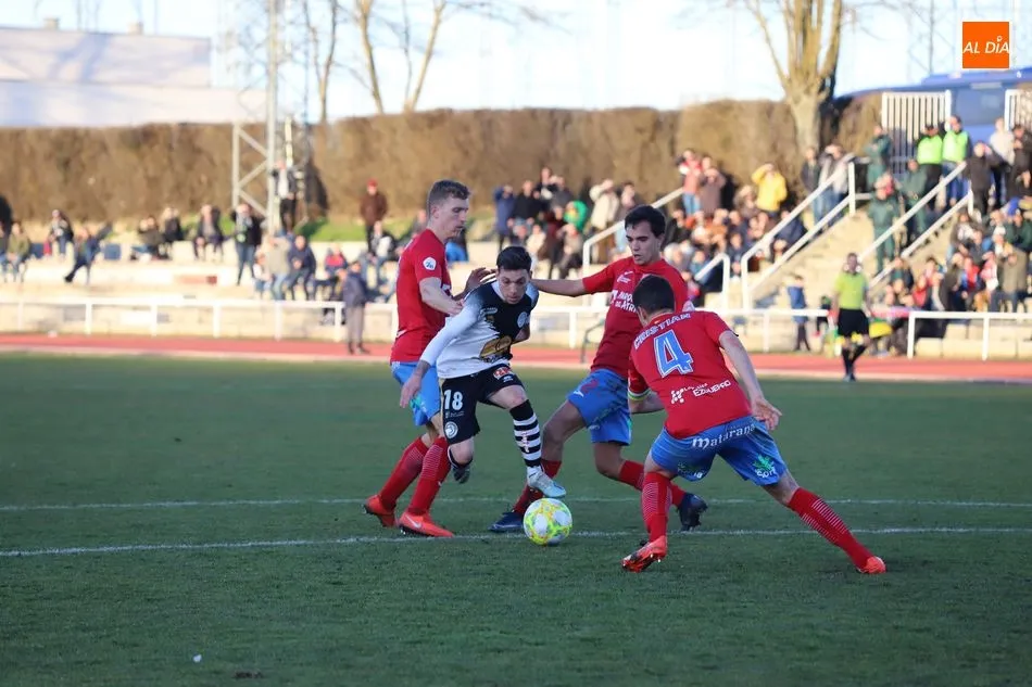 El inicio del encuentro entre Unionistas y el Calahorra estuvo marcado por el dominio inicial del conjunto riojano, que se tradujo en el lanzamiento consecutivo de cuatro saques de esquina en apenas cinco minutos. Se defendió bien Unionistas de ellos, aunque en cada uno el sentimiento de peligro era palpable.