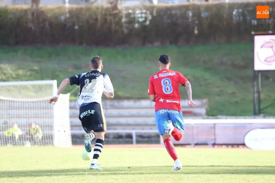 El partido se tornó de idas y venidas en su recta final. En una jugada en la que Álvaro Romero mareó a la defensa riojana, Óscar González a punto estuvo de hacer el gol de la victoria, pero Roberto tiró de reflejos para despejar el disparo del jugador cedido por el Real Valladolid.
