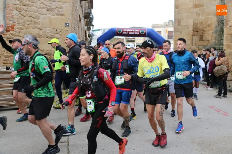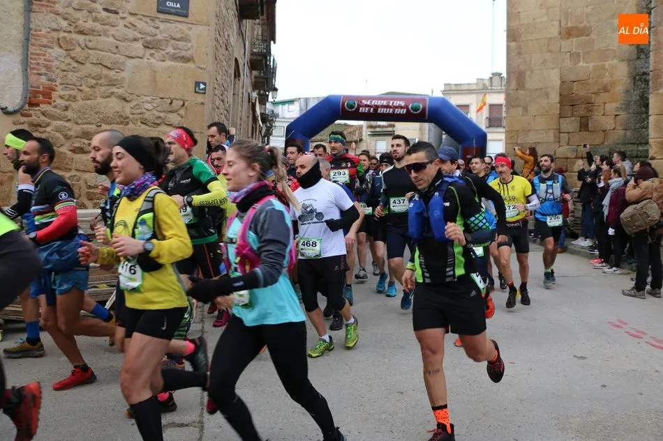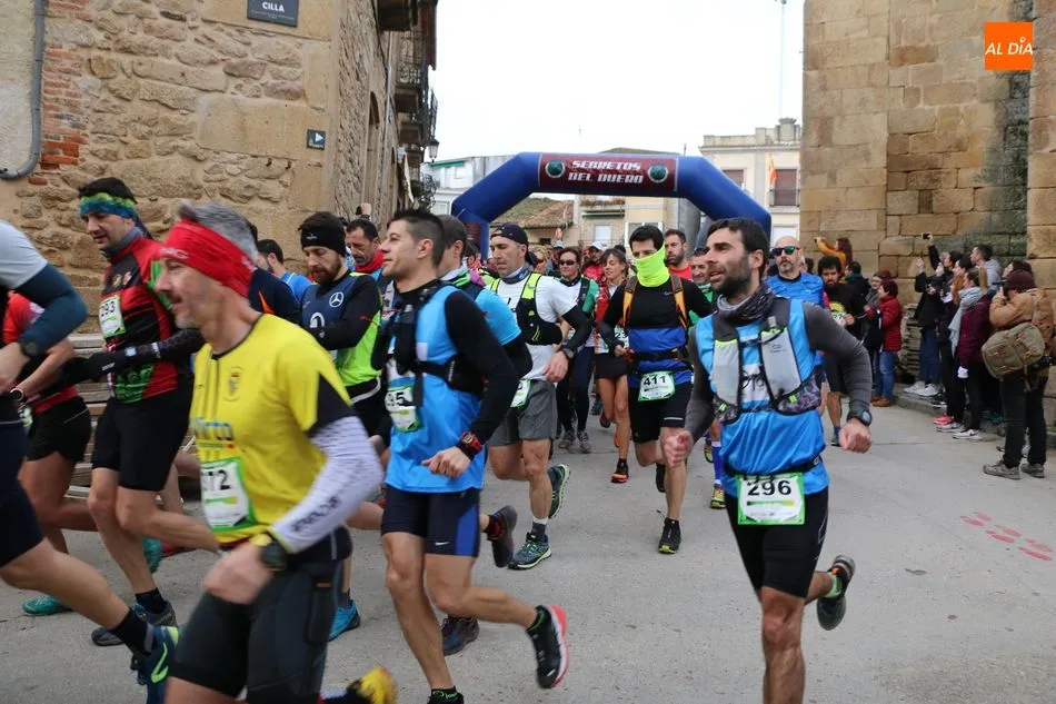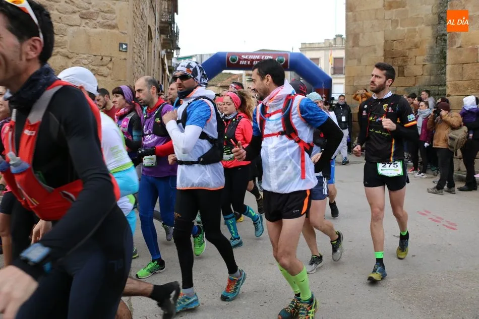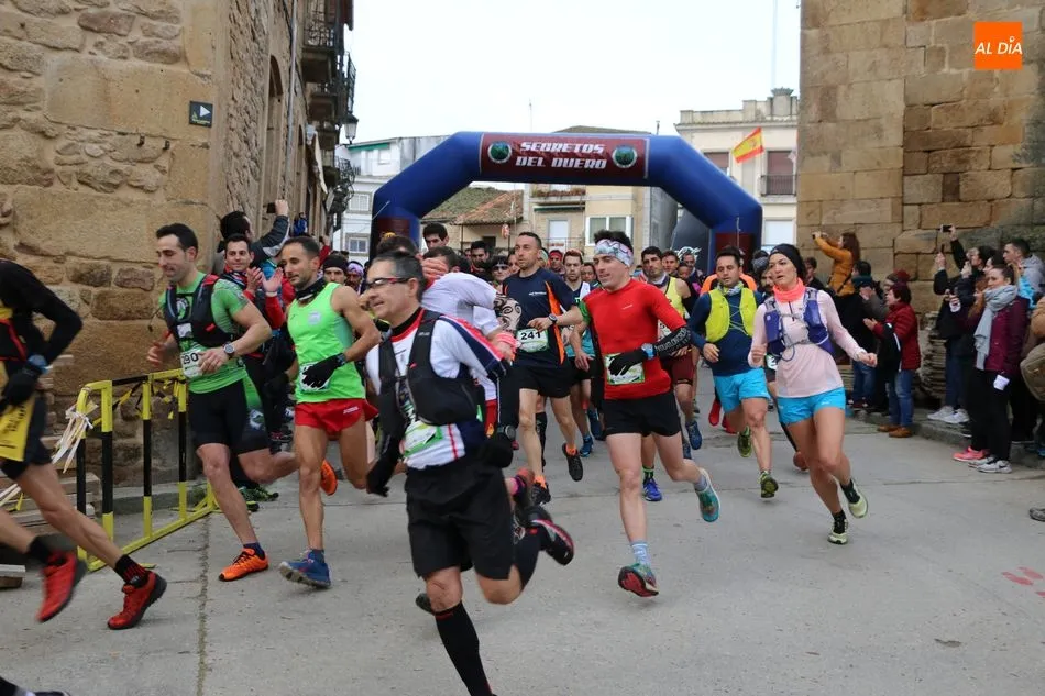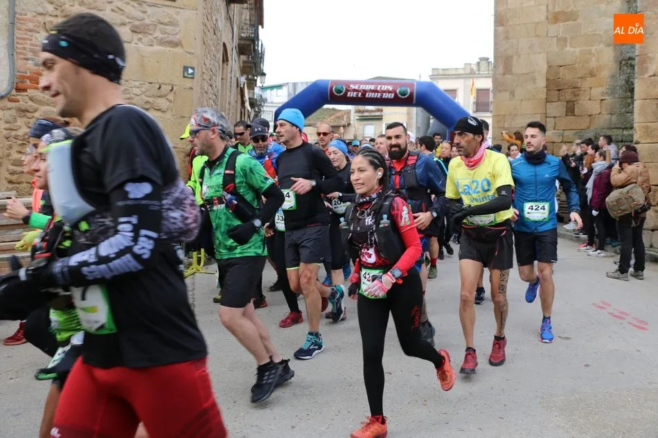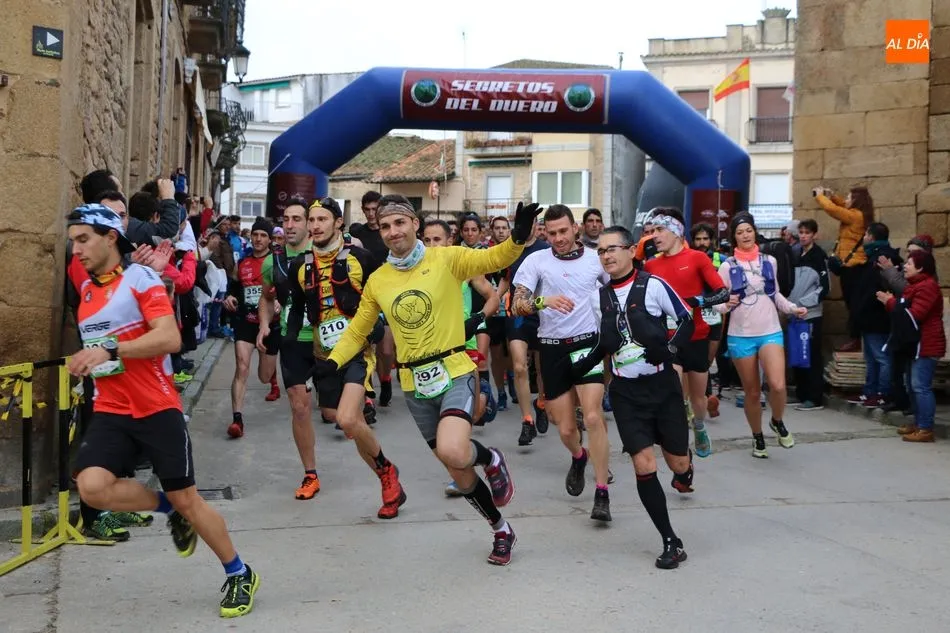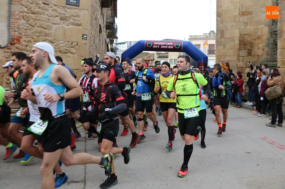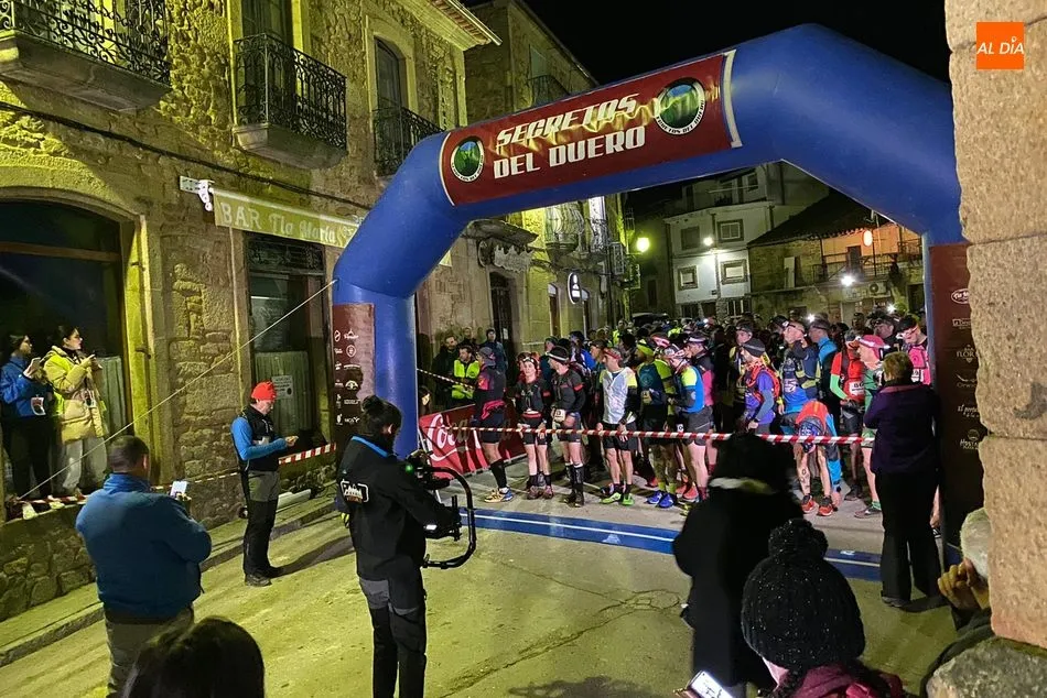 A las 7.00 horas de este domingo, 9 de febrero, arrancaba en Aldeadávila de la Ribera la cuarta edición del trail Secretos del Duero, en esta ocasión con un recorrido de 42 kilómetros y con un desnivel positivo acumulado de 2.850 m. La salida se daba ante un gran ambiente y el destello de las linternas de los 120 participantes coronando sus cabezas.