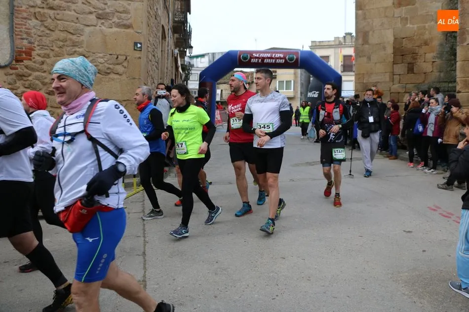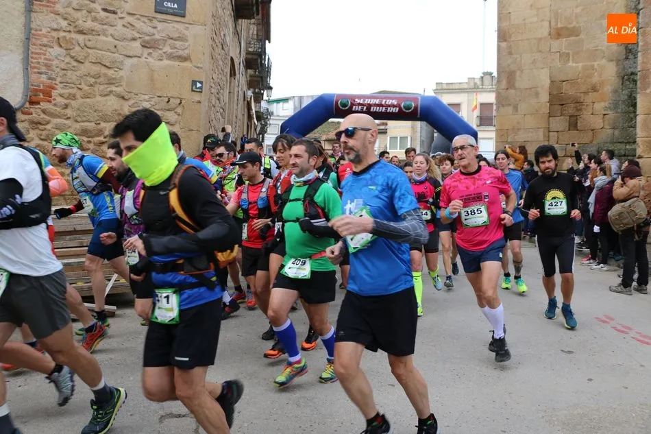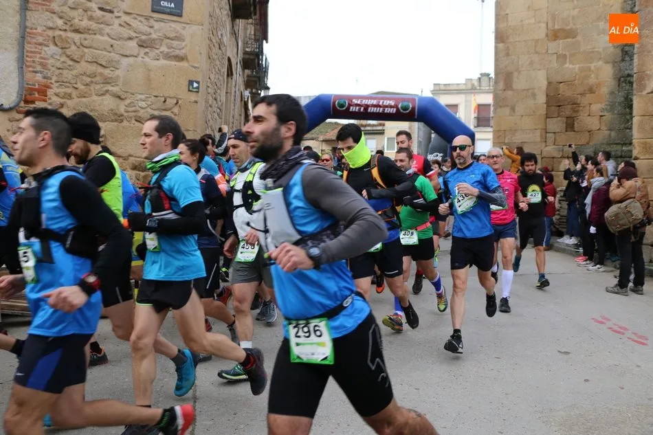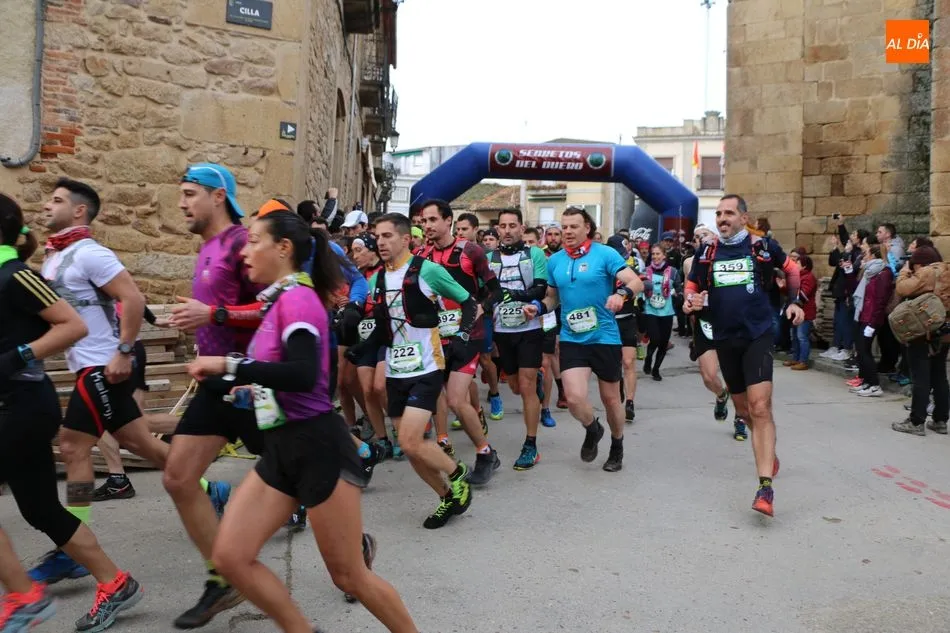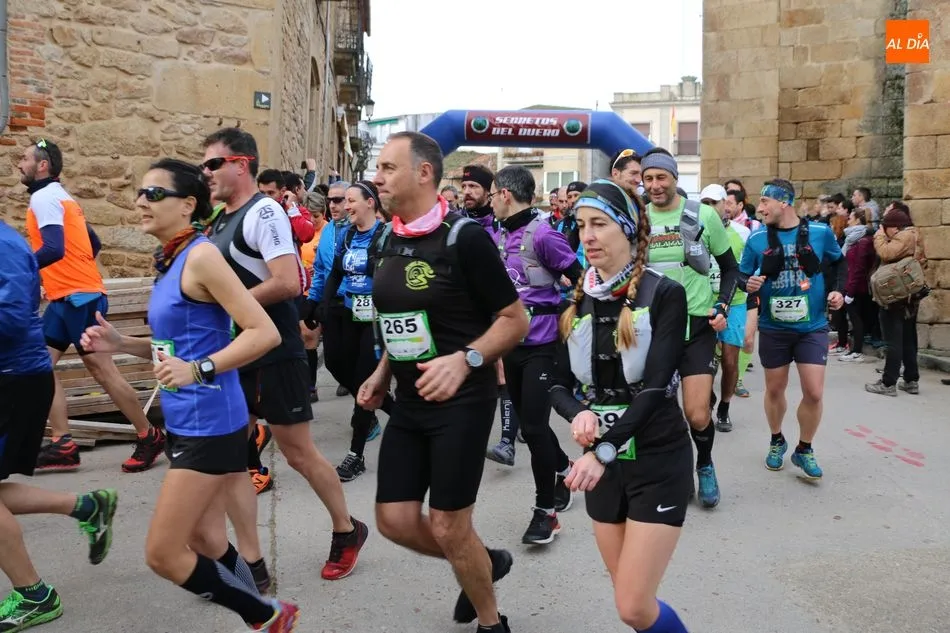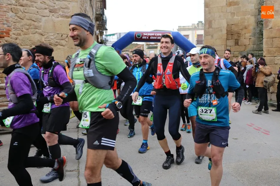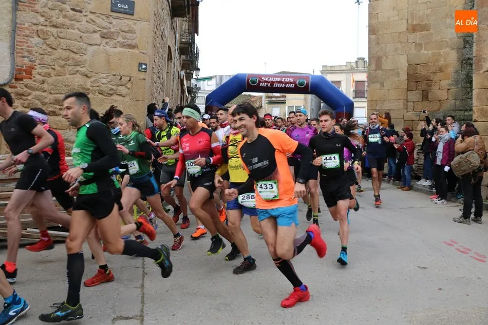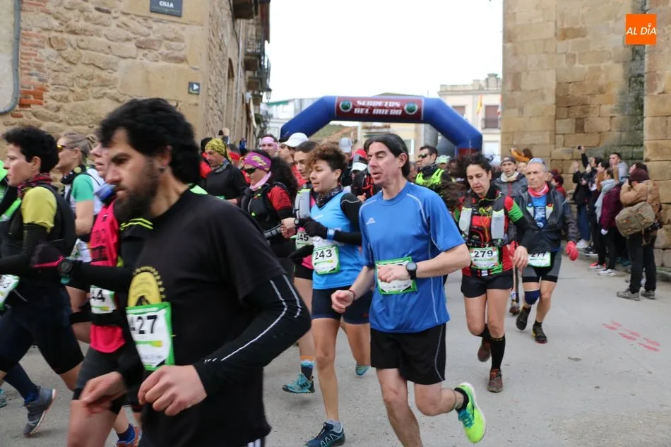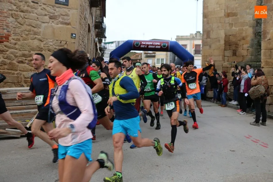 A las 7.00 horas de este domingo, 9 de febrero, arrancaba en Aldeadávila de la Ribera la cuarta edición del trail Secretos del Duero, en esta ocasión con un recorrido de 42 kilómetros y con un desnivel positivo acumulado de 2.850 m. La salida se daba ante un gran ambiente y el destello de las linternas de los 120 participantes coronando sus cabezas.