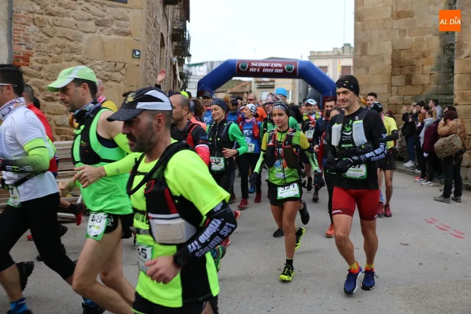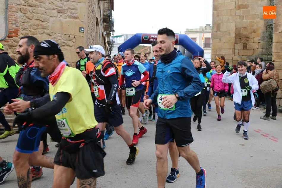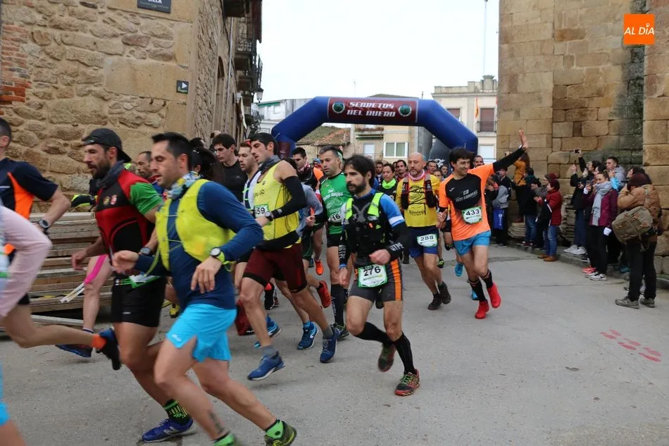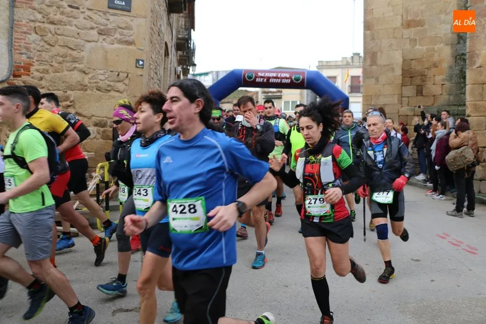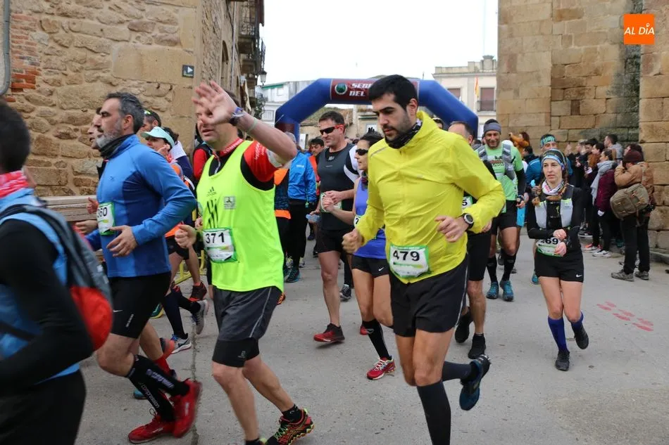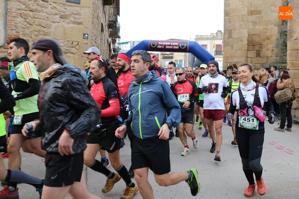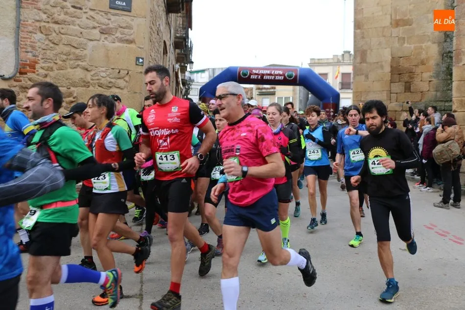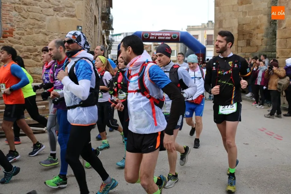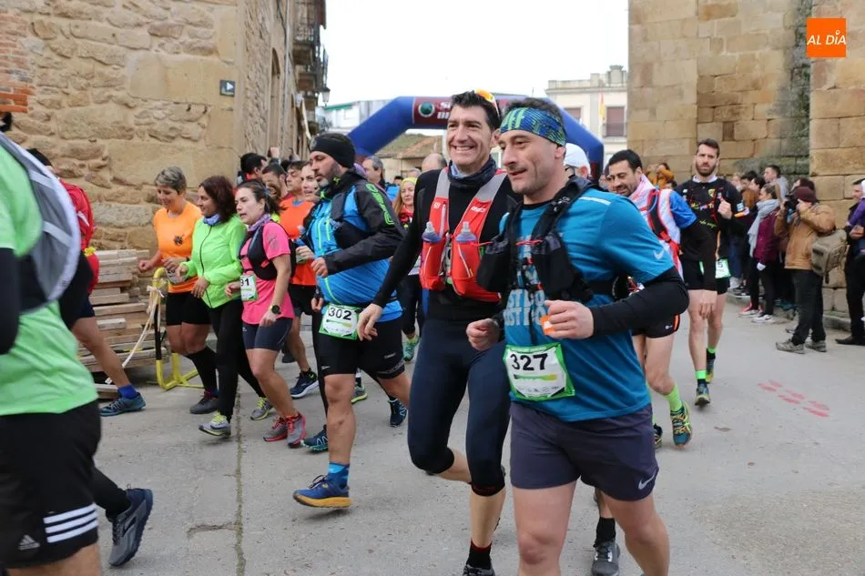 A las 7.00 horas de este domingo, 9 de febrero, arrancaba en Aldeadávila de la Ribera la cuarta edición del trail Secretos del Duero, en esta ocasión con un recorrido de 42 kilómetros y con un desnivel positivo acumulado de 2.850 m. La salida se daba ante un gran ambiente y el destello de las linternas de los 120 participantes coronando sus cabezas.