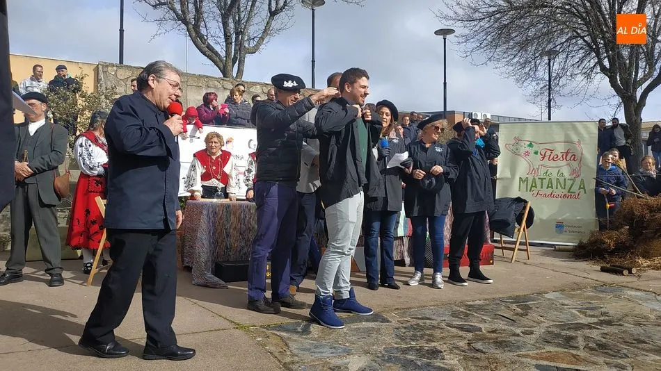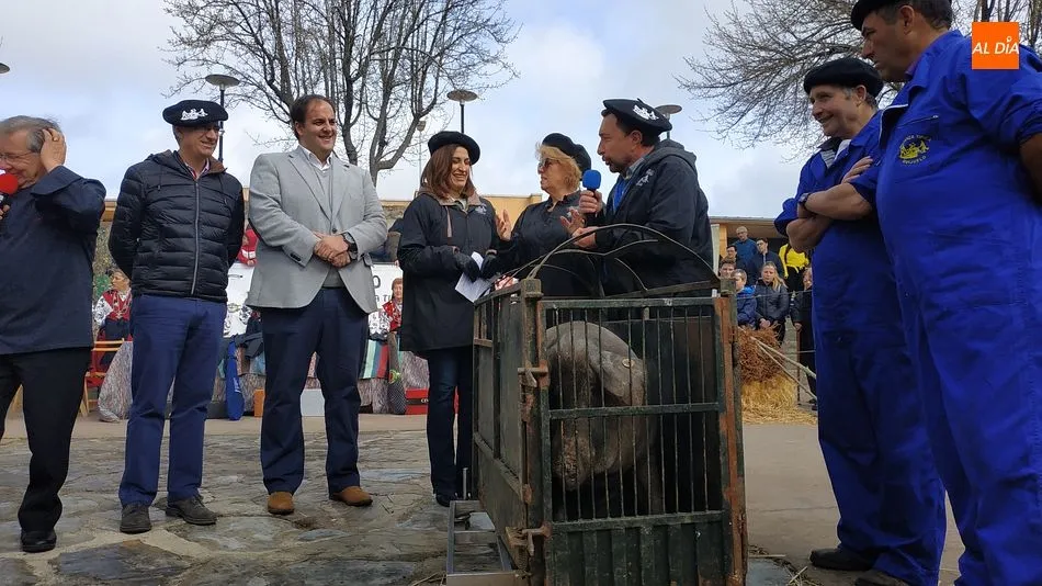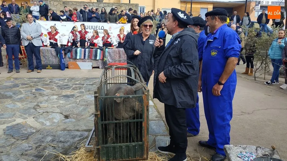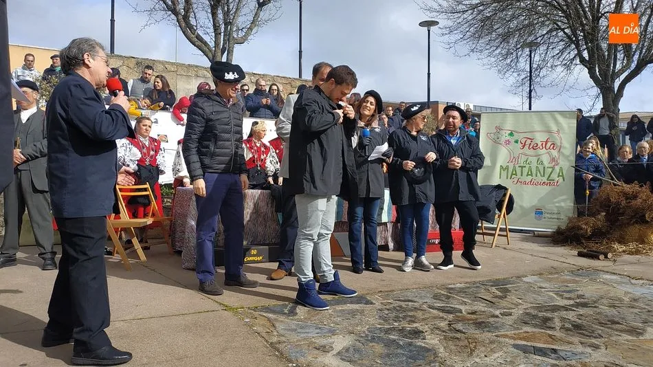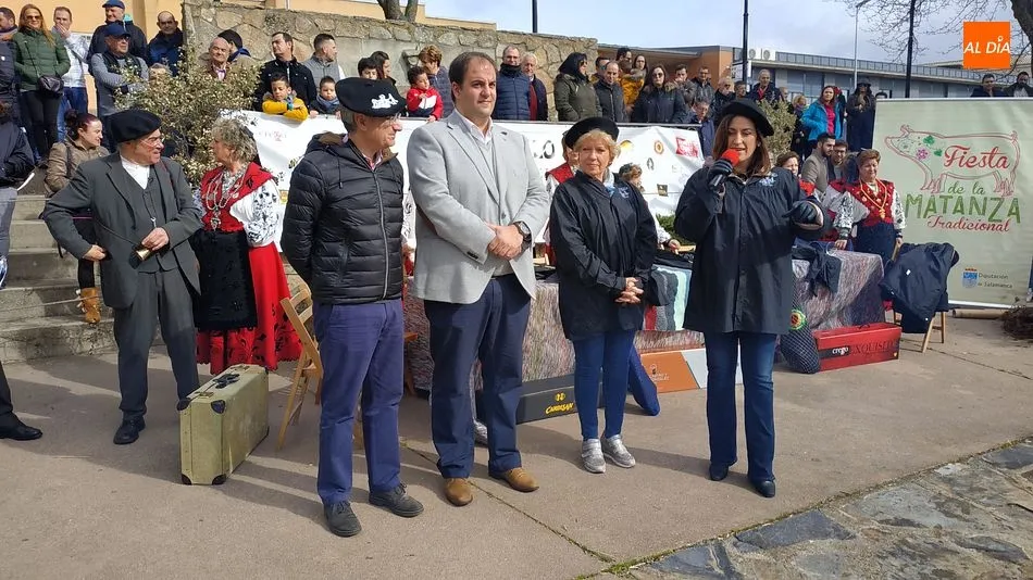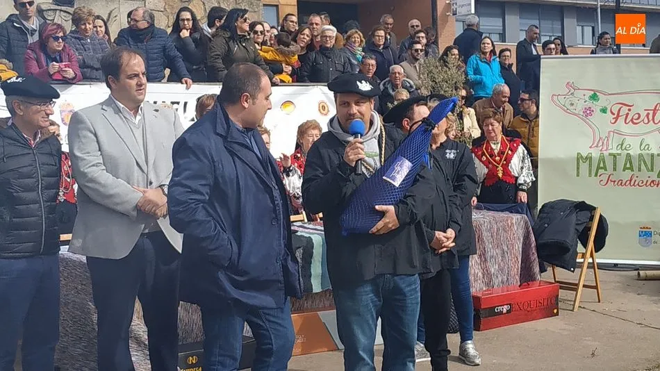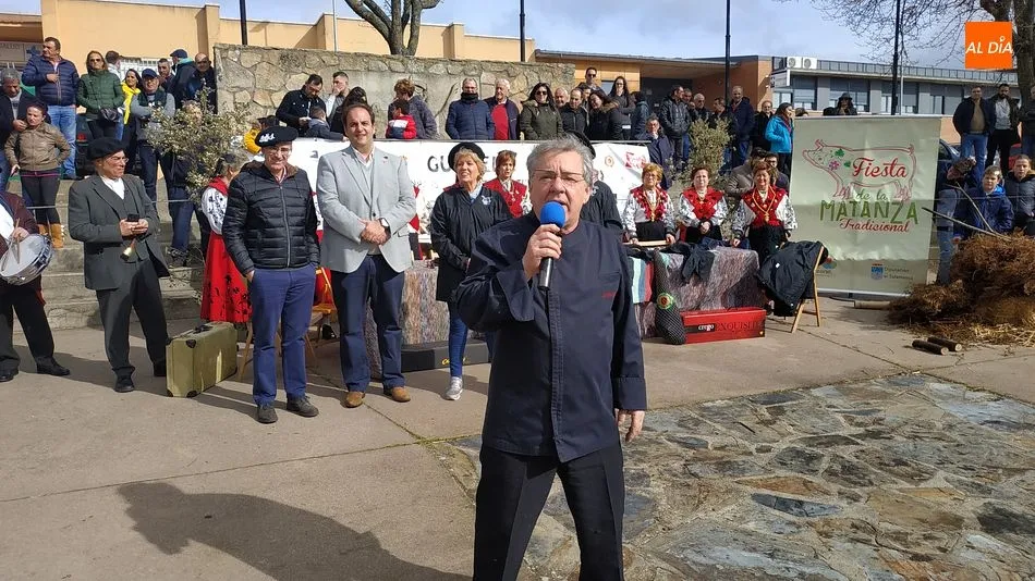 Jesus Merino, organizador de la matanza, dio la bienvenida a todos los presentes, incluyendo a los maestros de ceremonias: Pepa Chacón y Ana Samboal, acompañadas del televisivo José Manuel Parada, pregonero del pasado año, que no quiso perderse la cita matancera este año.