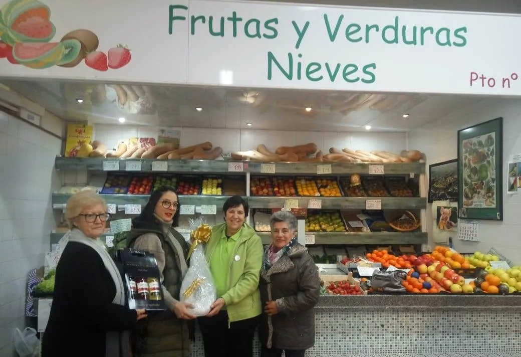 El premio consiste en una tarta de dos pisos, un jamón y varias botellas de vino, que Ana Luisa Moreno recogió en el propio Mercado de Abastos (del que es cliente habitual) de manos de Nieves (aún titular de un puesto en el Mercado), Josefina y Rosario, Águedas fundadoras del colectivo.