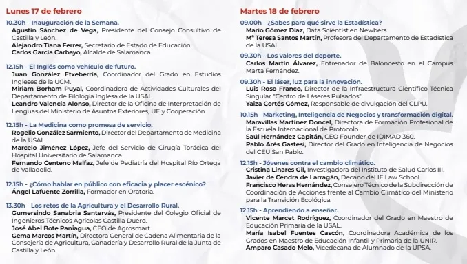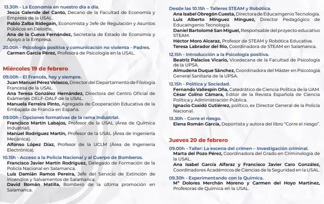 Tendrá lugar del 17 al 21 de febrero bajo el lema ?Enseñar educando? y, junto a los presidentes del TSJCyL y el Consejo Consultivo, traerá también a Salamanca al exdirector general de la Policía Ignacio Cosidó, el alcalde García Carbayo o a los secre