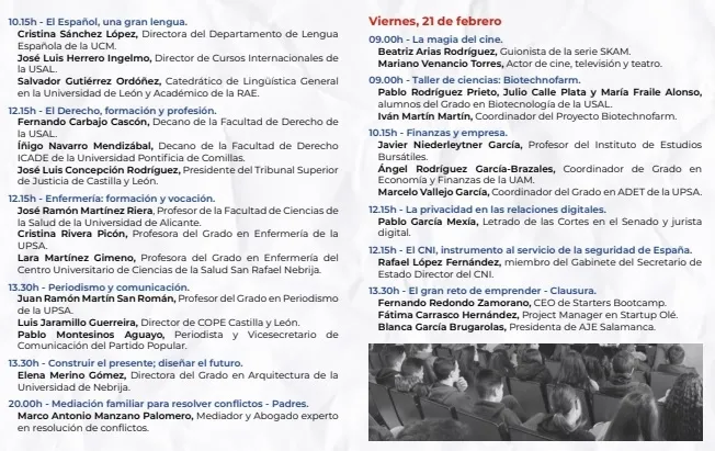 La inauguración tendrá lugar el lunes, 17 de febrero, a las 10:30 horas, con la presencia del presidente del Consejo Consultivo de Castilla y León, Agustín Sánchez de Vega, el secretario de Estado de Educación, Alejandro Tiana, y el alcalde de Salamanca, Carlos García Carbayo.