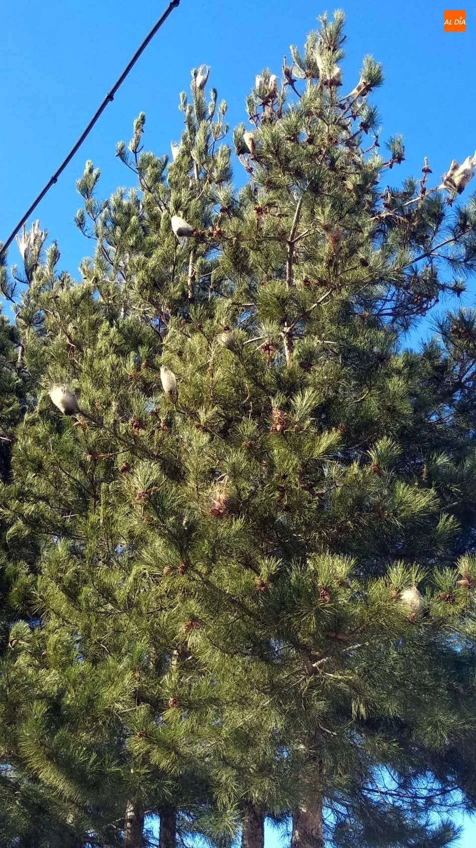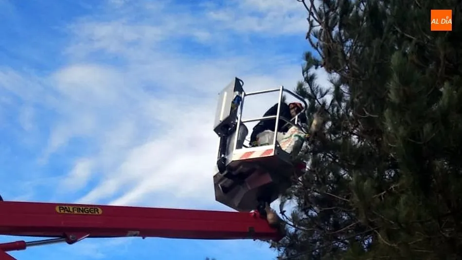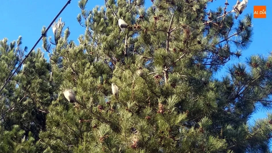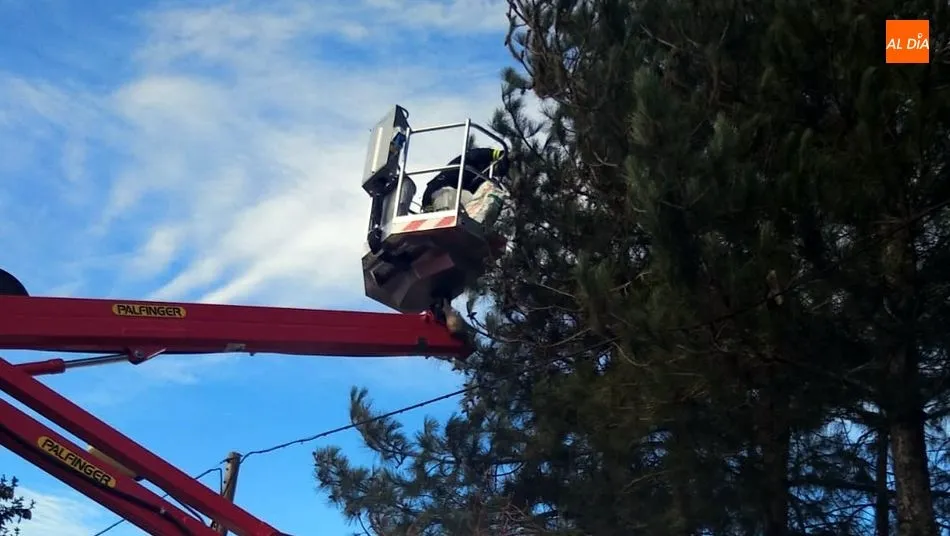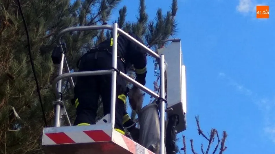Los Bomberos retiran nidos de orugas Procesionarias en los pinos de Bañobárez