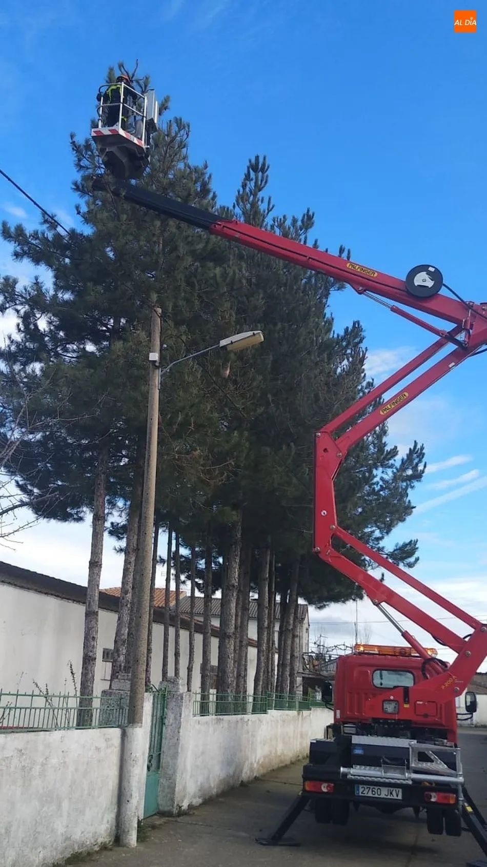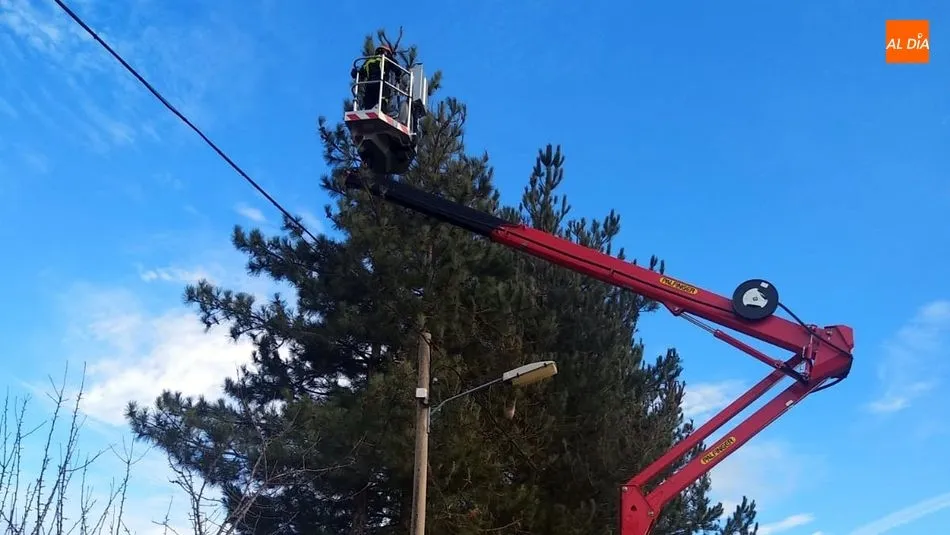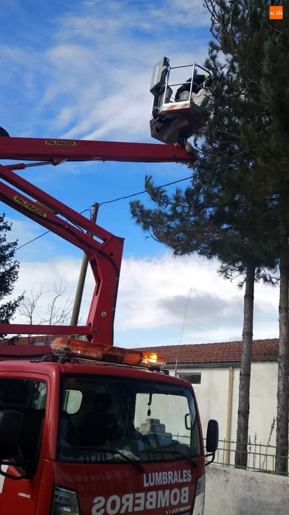 Un equipo del parque comarcal de Lumbrales se desplazó a esta localidad del Abadengo con un vehículo de brazo articulado