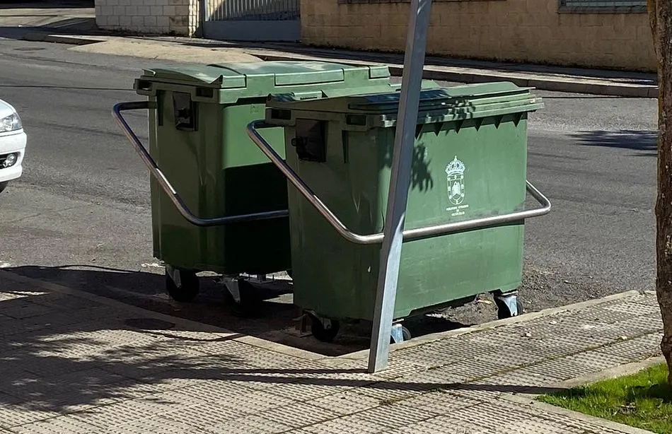 Estos elementos, que ya están instalados en los contenedores situados por las diferentes calles del municipio, consisten en una columna central situada en la parte posterior del contenedor que sirve de fijación a la barra de acero inoxidable en forma de U. De esta forma quedan fijados en su lugar correspondiente y se evita la movilidad de los depósitos de recogida de basura.