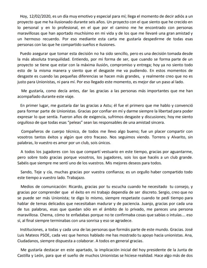 Tom Caamaño, responsable de Relaciones Institucionales de Unionistas, ha decidido no continuar en el club, ya que el exportero de la UDS ha optado por abandonar la entidad, según ha anunciado el propio club en sus redes sociales.
