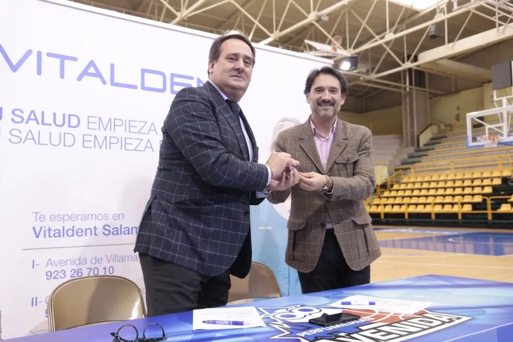 Esta mañana tuvo lugar presentación del acuerdo de colaboración publicitaria entre la compañía Vitaldent y el Perfumerías Avenida, que contó con la presencia de responsables de ambas entidades: Pedro Reoyo, director de Marketing de Vitaldent España, Alberto Sevilla, responsable de Marketing Regional y Javier Vicente, Gerente de Vitaldent Salamanca, y Jorge Recio, presidente del CB Perfumerías Avenida.
