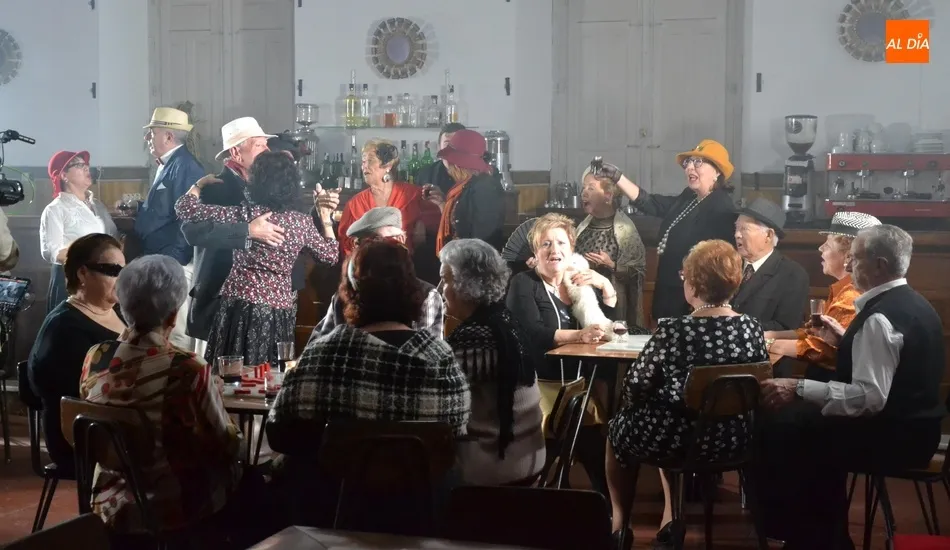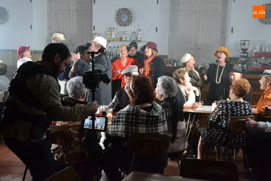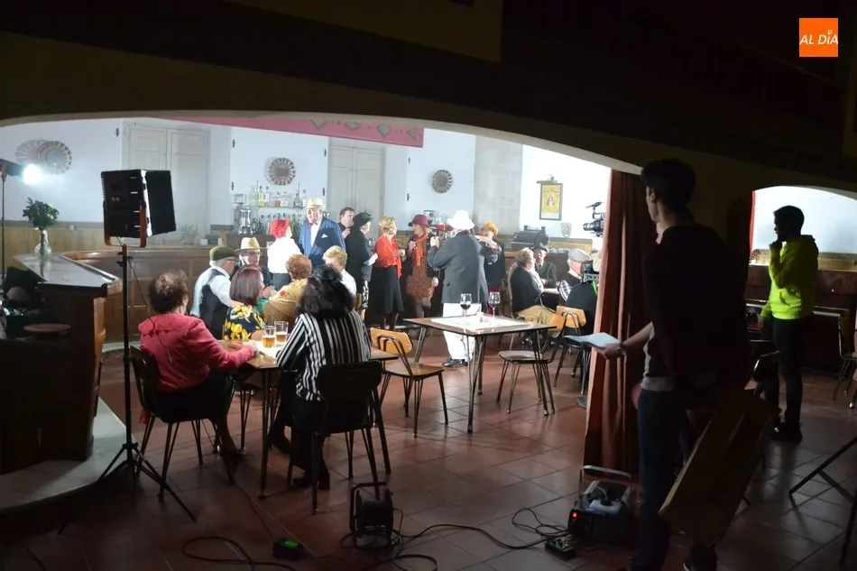 El Centro Social Aldea/Centro Cultural y Recreativo El Porvenir de Ciudad Rodrigo fue escenario en la jornada del jueves (de 13.00 a 15.00 horas, aproximadamente) de una cita muy especial: la grabación por parte de la Coral Dámaso Ledesma de un videoclip, siendo la primera vez que la histórica agrupación mirobrigense cuenta con un material de este tipo. A la hora de realizar esta grabación, los miembros de la Coral hicieron, como se puede comprobar en las imágenes, un viaje al pasado en lo que a su indumentaria se refiere.