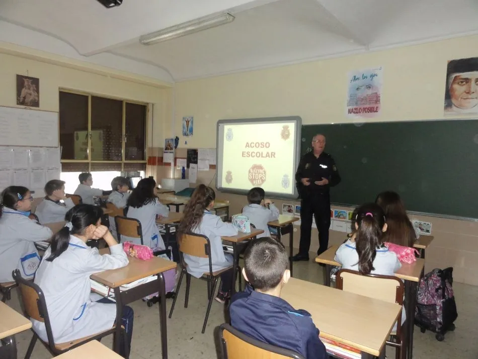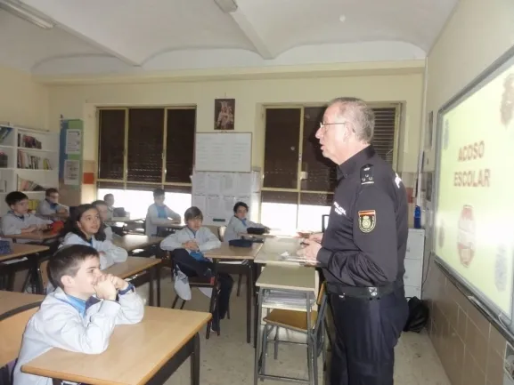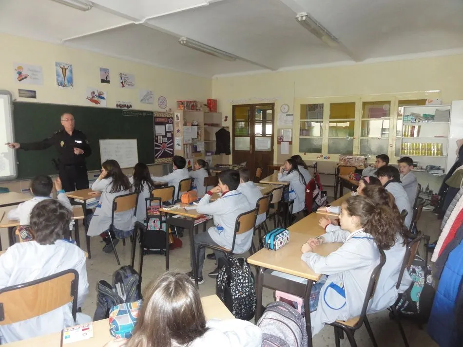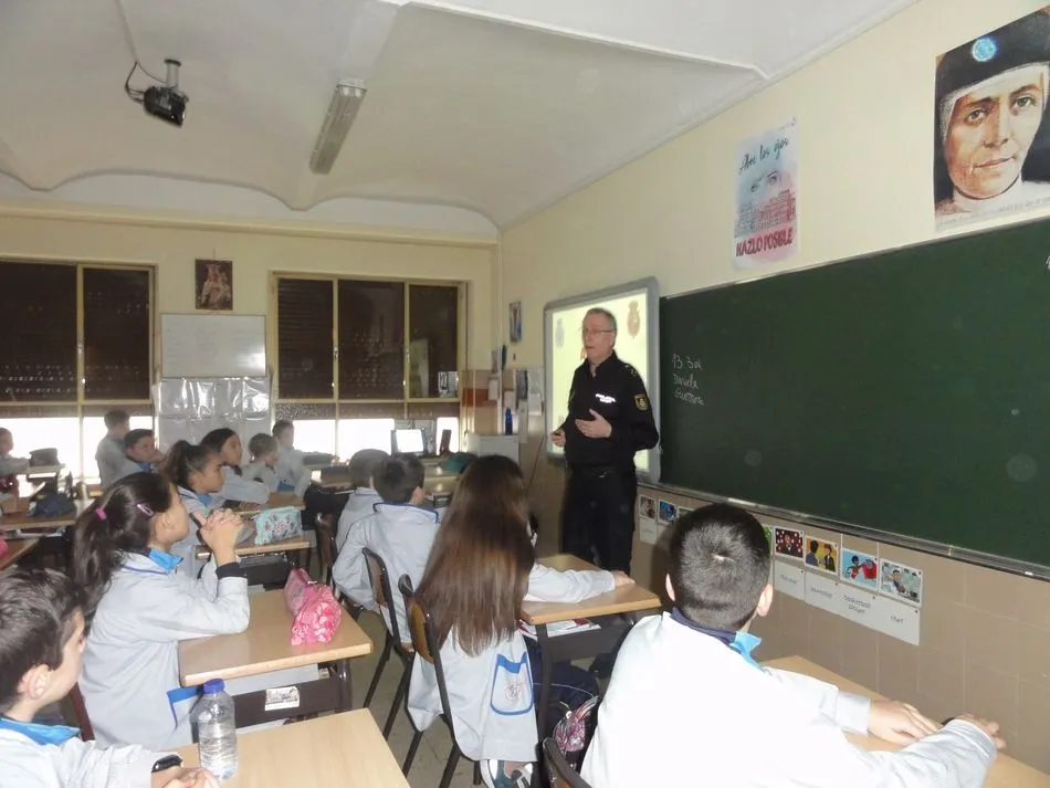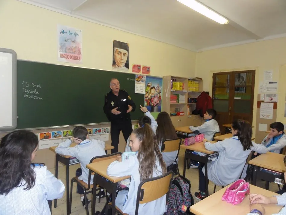 El alumnado de 5º de Primaria del colegio San Juan Bosco recibió este jueves la visita de un agente de la Policía Nacional que los informó sobre los problemas y riesgos que pueden encontrar cuando usan las redes sociales e internet. Durante su charla, el agente también ha ofrecido pautas sobre cómo actuar ante situaciones que se salen fuera de la normalidad.