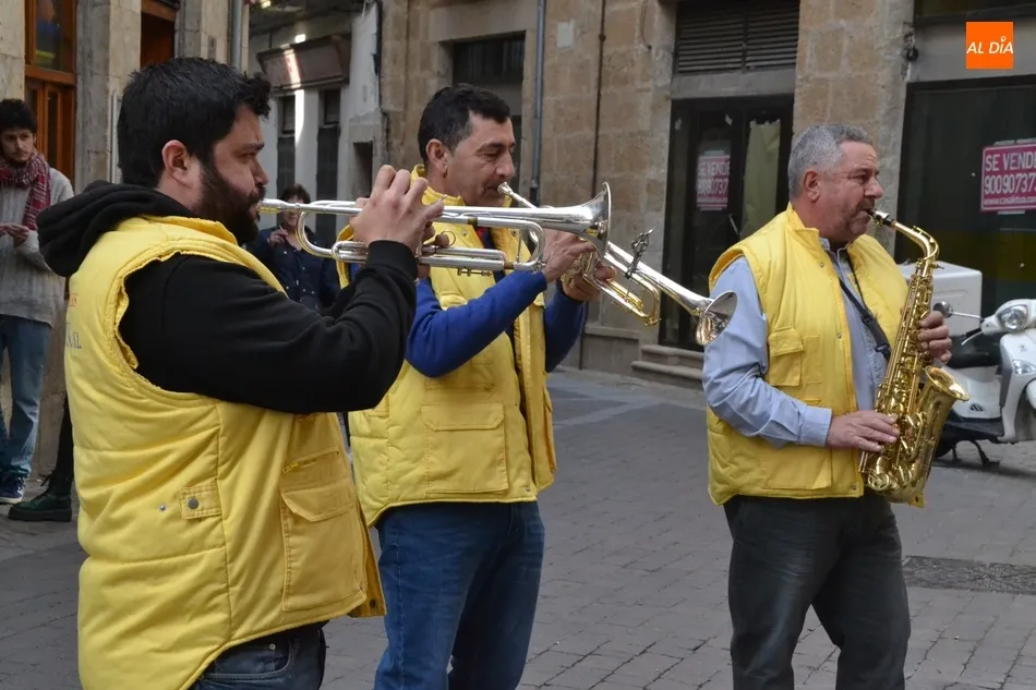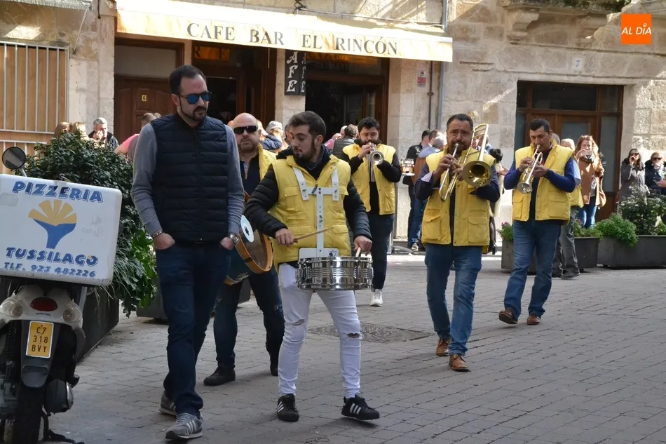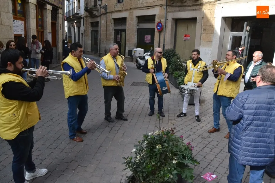 Además del inconfundible sonido del martilleo de las puntas que anticipa la llegada del Carnaval, el entorno de la Plaza Mayor ya sonó a la hora de comer del sábado a puro Carnaval, ya que estuvo tocando durante un rato por las calles adyacentes la Charanga Santa Ana, aprovechando que iban a asistir a la comida de la Peña El Rincón en el Hotel Arcos.