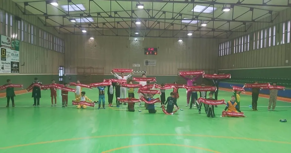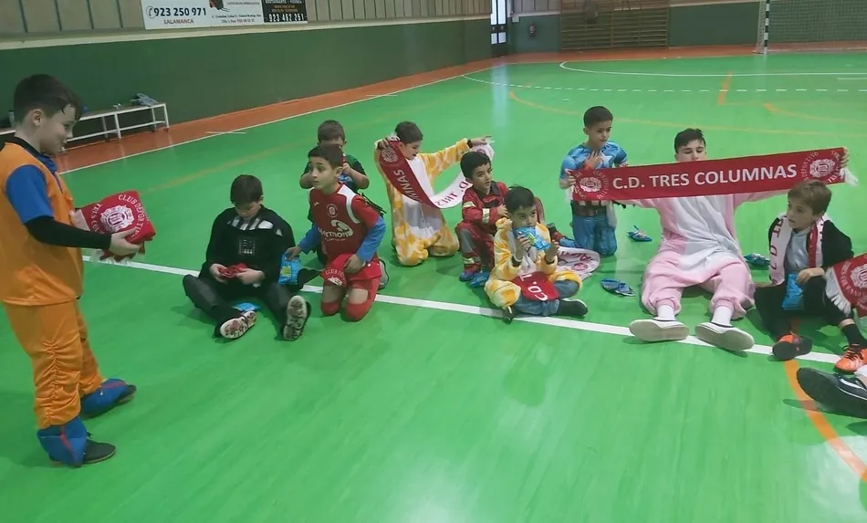 De este modo, la sesión de los benjamines de la tarde del lunes fue un ?calentamiento? del espacio para lo que está por venir, ya que además de los disfraces, estuvo sonando música todo el rato. Todos los chavales se llevaron a casa como obsequio de esta tarde festiva una bolsa de chucherías así como una bufanda del III Columnas regalo de Tasio, padre de David Martín.