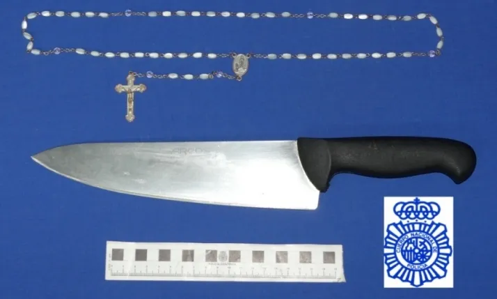 Este arrestado negó su participación, aunque en su poder se encontró parte de un rosario roto, que se correspondía perfectamente con otra parte que había sido intervenid en el lugar de la agresión.