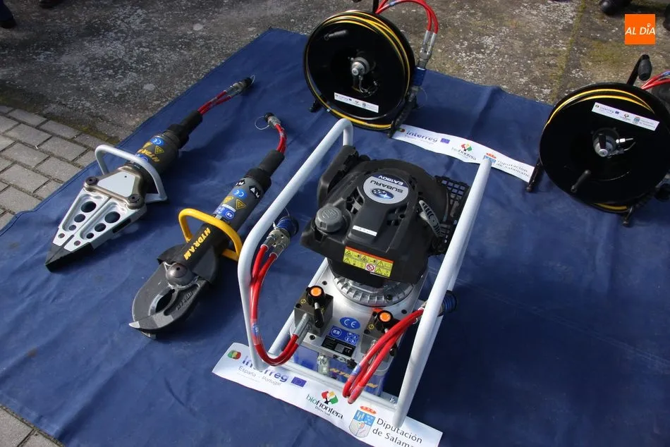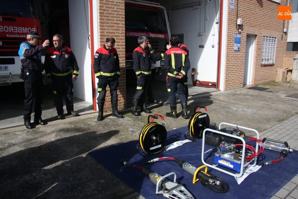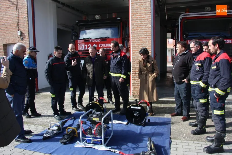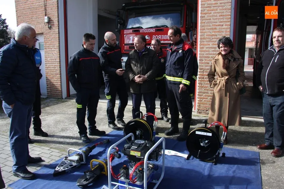 El diputado provincial de bomberos, Román Hernández, hizo entrega este martes de un nuevo equipo de excarcelación al Parque de Bomberos de Vitigudino, herramientas valoradas en 23.000 euros, financiados con fondos europeos, y que facilitarán la labor de los 15 bomberos voluntarios que conforman este servicio perteneciente al Ayuntamiento de Vitigudino.