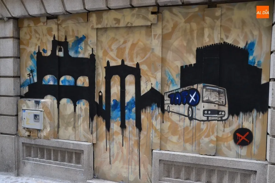 Hay que apuntar que estos paneles temporales se unirán a los que han permanecido montados durante todo el año en la antigua Librería Fama, formando una composición en la que lucen la Casa Consistorial, las Tres Columnas y el Parador de Turismo, junto al autobús de Tato.