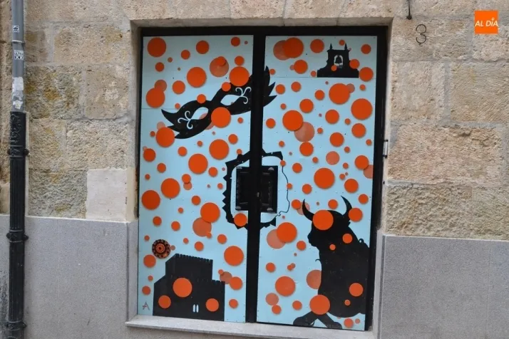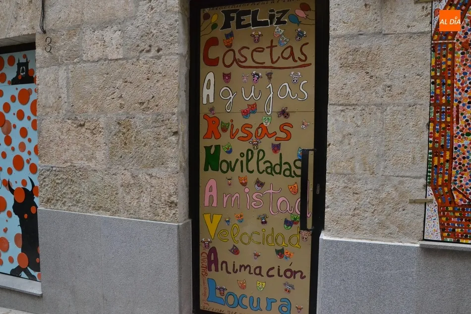 En las próximas horas proliferarán muchos más, una vez los establecimientos comerciales coloquen las protecciones de sus negocios, pero desde hace unos días la calle Madrid ya se ha empezado a vestir de Carnaval, además de con las agujas, con los paneles decorativos situados en puertas y ventana que le dan un toque diferente a la vía desde hace unos años.