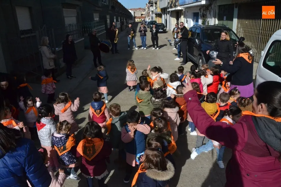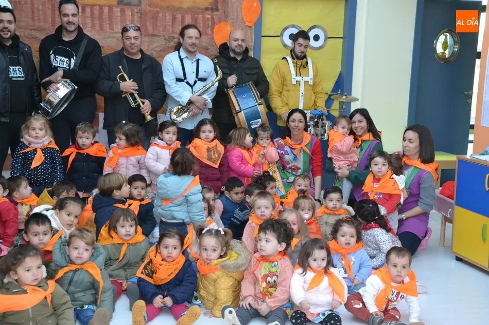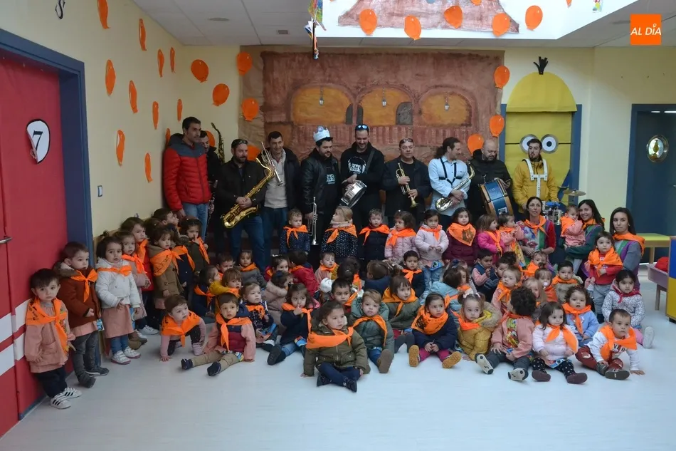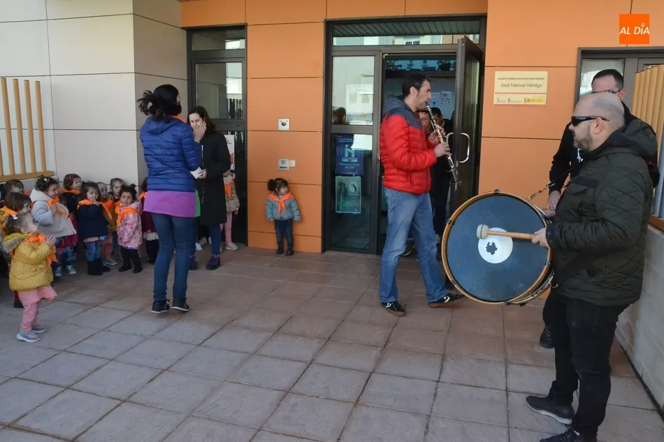 Continuando con las actividades que están desarrollando esta semana con motivo de la llegada del Carnaval del Toro 2020, la Escuela Infantil José Manuel Hidalgo de Ciudad Rodrigo recibió en la mañana del miércoles a miembros de las charangas mirobrigenses, que interpretaron varias piezas para disfrute de los niños.