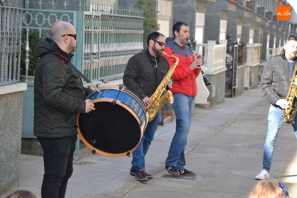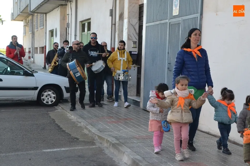 La actuación de estos miembros de las charangas comenzó en las dependencias de la Escuela, donde hubo tiempo para cantarle el Cumpleaños Feliz a uno de ellos, Luisjo. Tras una gran foto de familia, los alumnos más mayores, junto a sus responsables, se fueron a realizar un pasacalles por el entorno de la Escuela.