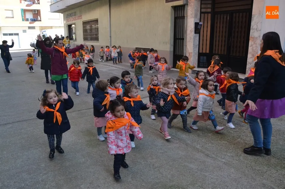 Este pasacalles, en una mañana soleada y con buena temperatura, transcurrió por las calles Hermanos García Carraffa, Santiago Herrero y Vicente Aleixandre, donde se unieron algunos familiares de los pequeños para verles cantar, bailar y saltar varias canciones, entre ellas por supuesto La Campana Gorda.
