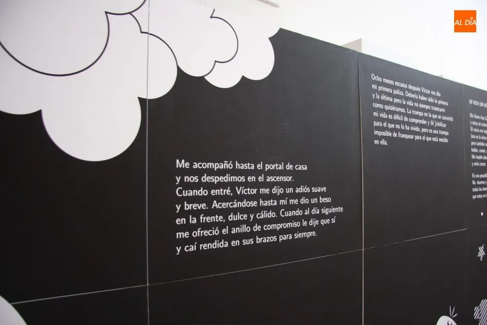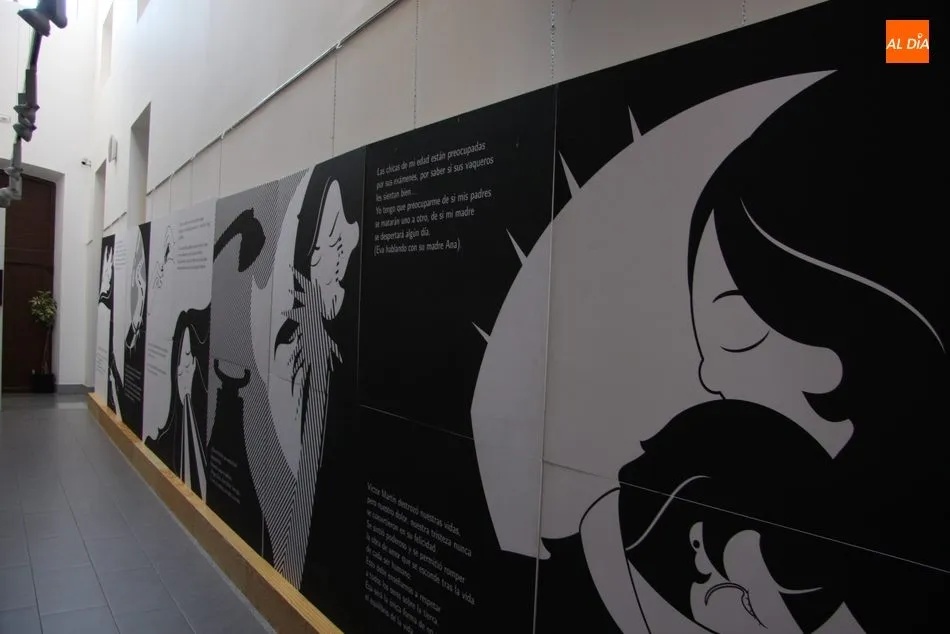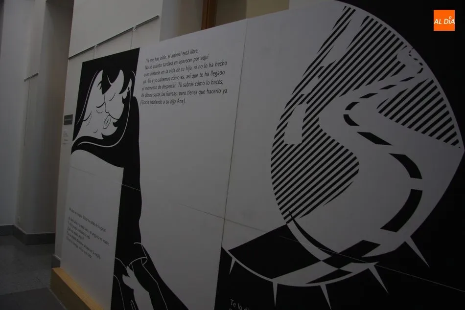 Desde ayer miércoles, el edificio San Nicolás de Vitigudino se ha sumado a la lucha contra la violencia de género a través de ?Un beso en la frente?, relato expositivo que incluye una secuencia de ilustraciones de Pilar Vega y textos recogidos en el libro de Esther B. del Brío que lleva por título el mismo nombre que la exposición, planteada como una obra gráfica de concienciación contra la violencia de género.