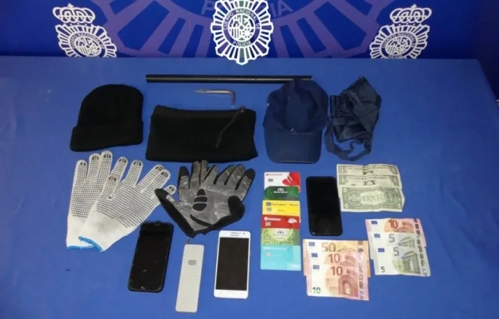 Los agentes efectuaron a los detenidos un cacheo de seguridad, interviniendo en su poder tarjetas bancarias, teléfonos móviles, guantes, gorros, bragas y una llave exagonal, tipo Allen, con uno de sus extremos afilado, además de 70 euros en diferentes billetes y 3 dólares USA.