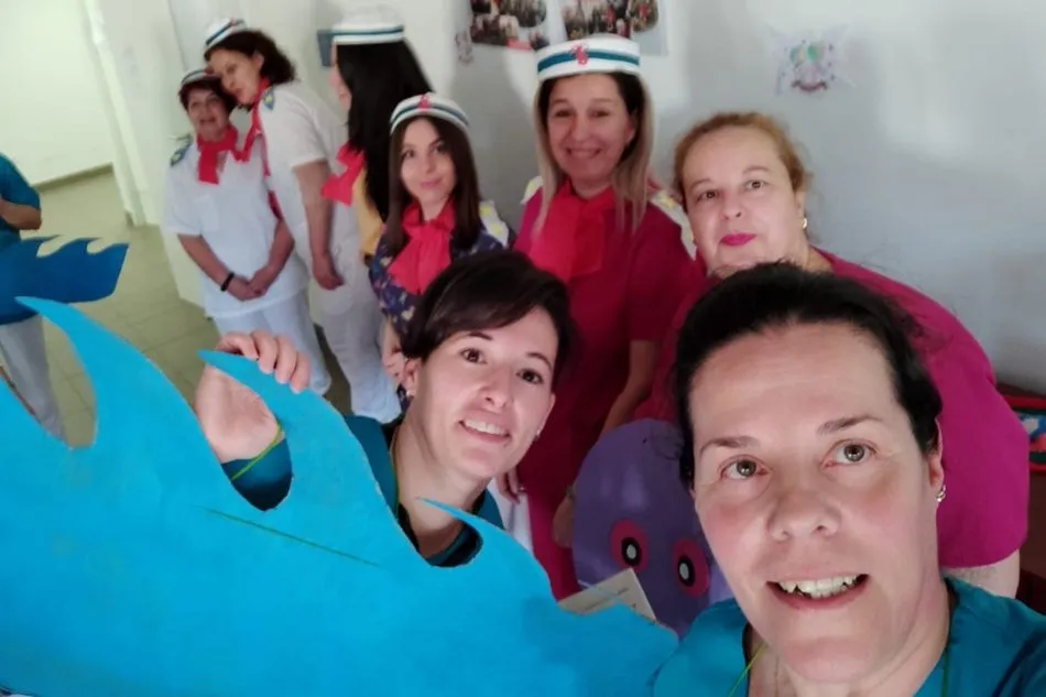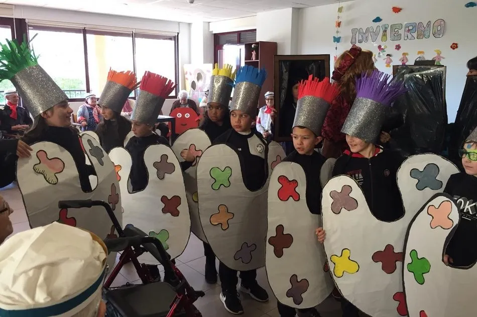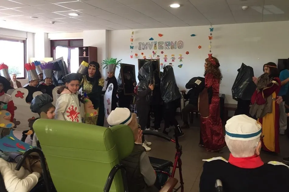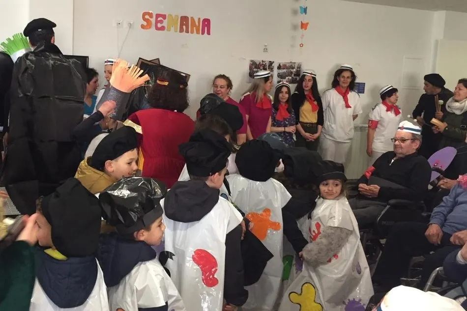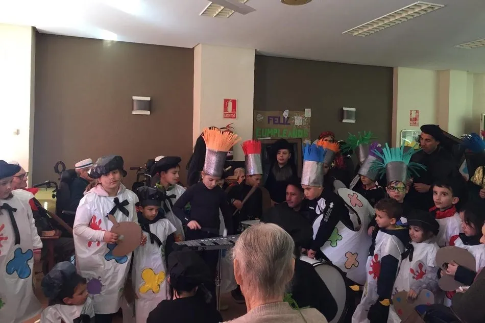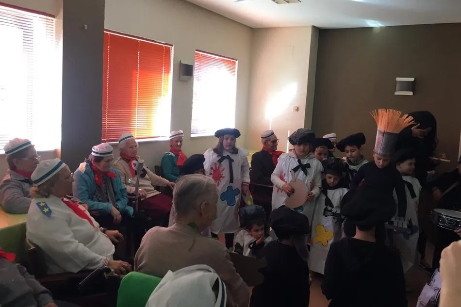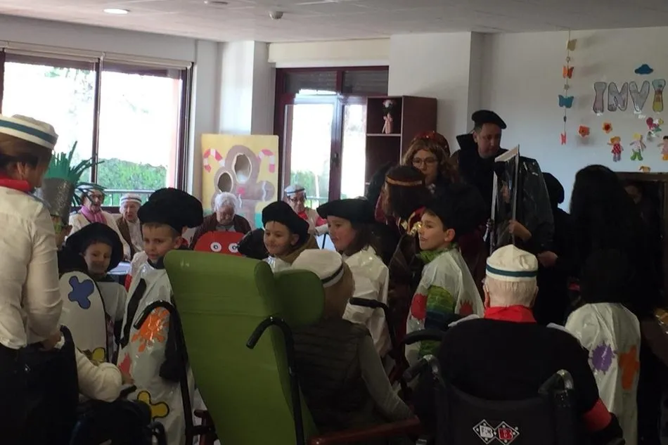 Alumnos del CRA La Ribera, de Aldeadávila, compartieron la celebración del Carnaval con los mayores usuarios de las dos residencias municipales y sus empleadas. Pequeños y mayores lucieron sus disfraces y disfrutaron del sonido de percusión a ritmo de batukada.