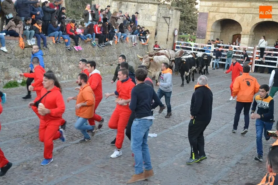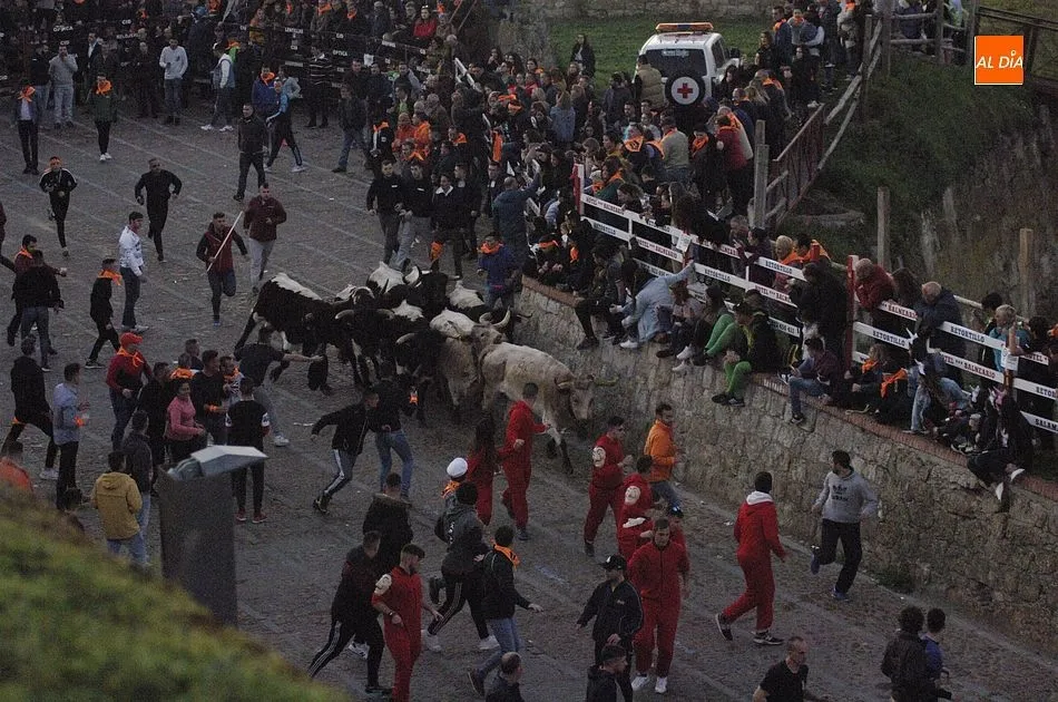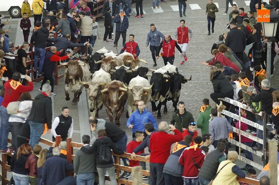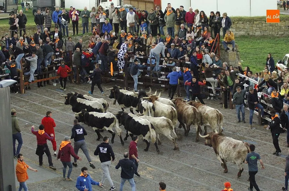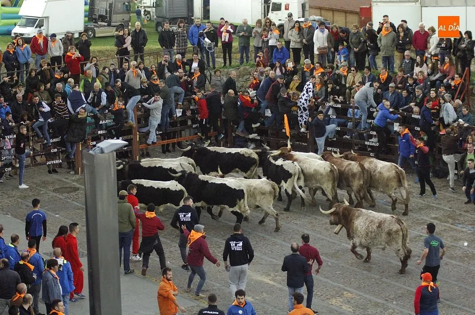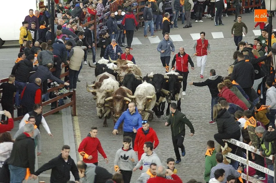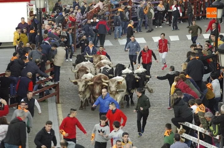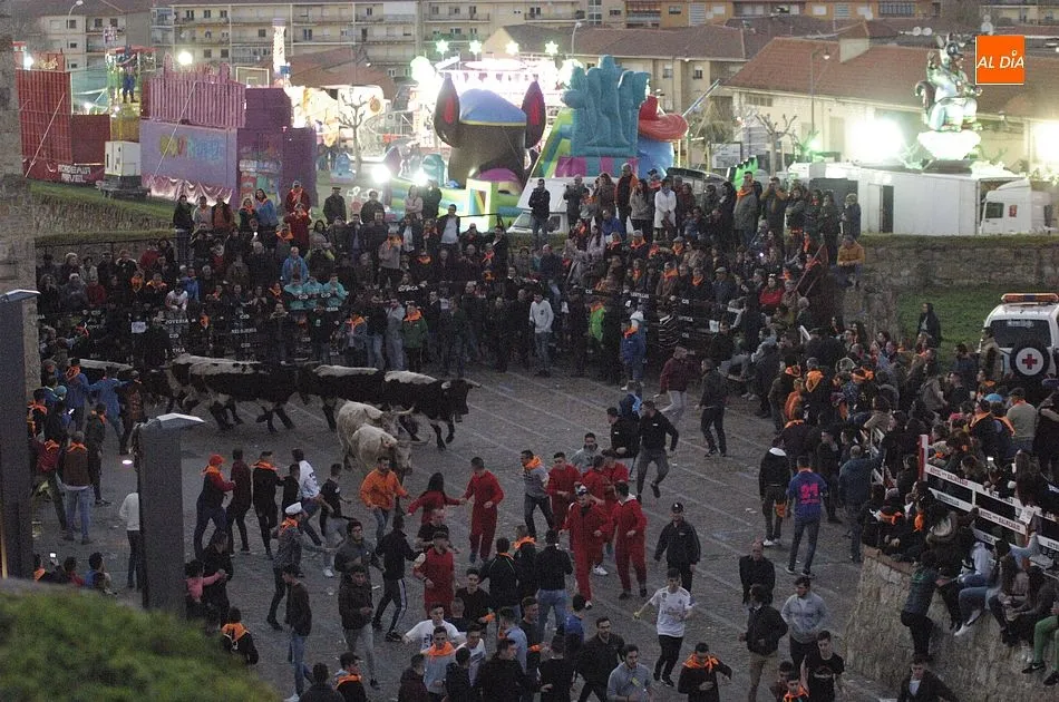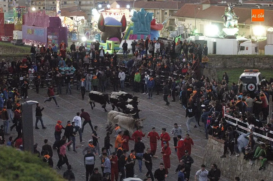 Concluido el Campanazo, buena parte de los asistentes al evento se repartieron por el recorrido del primer encierro carnavalero, protagonizado por los bueyes que en los próximos días acompañarán a los toros de los encierros urbanos. Este año, esos bueyes pertenecen a la ganadería de Raya La Dehesa SLU, contándose hasta con una docena de ellos.