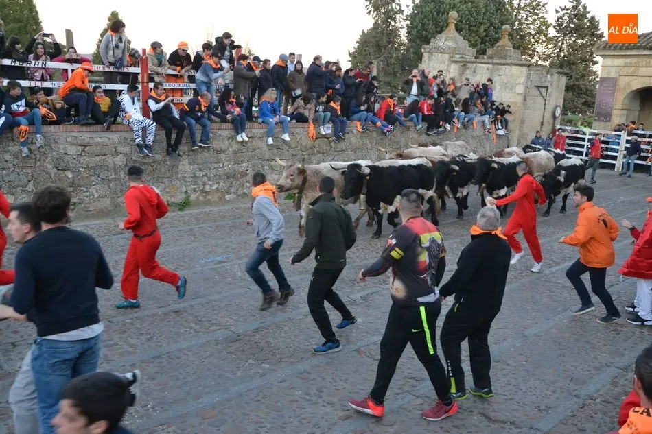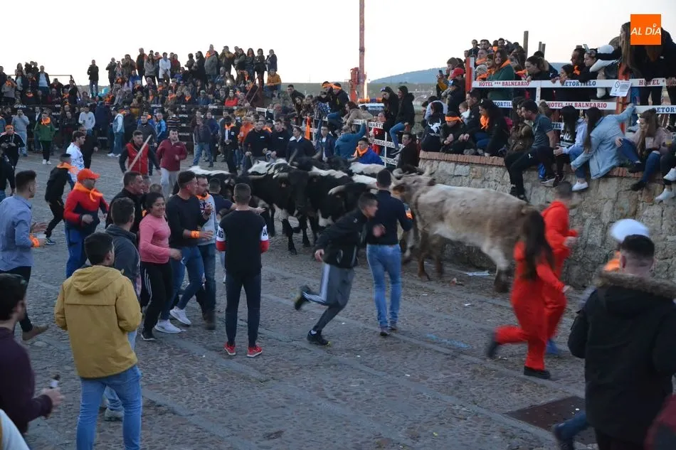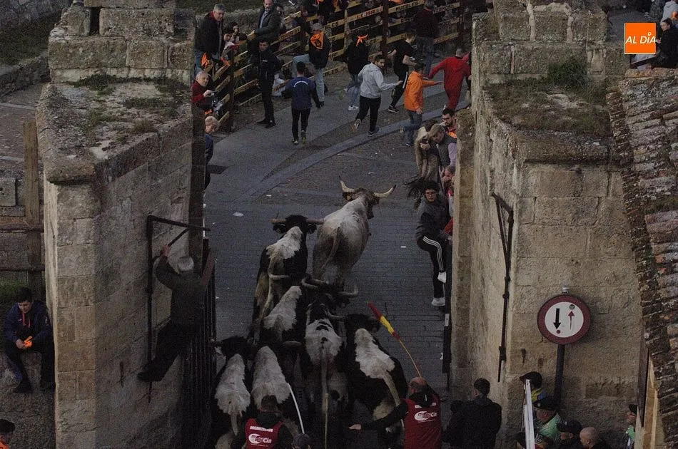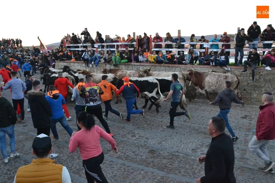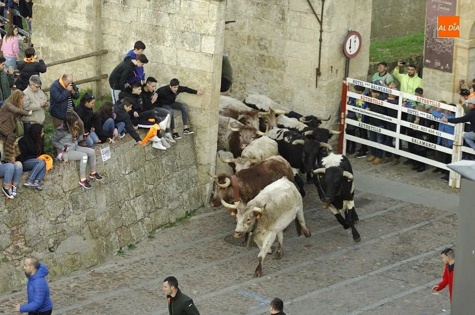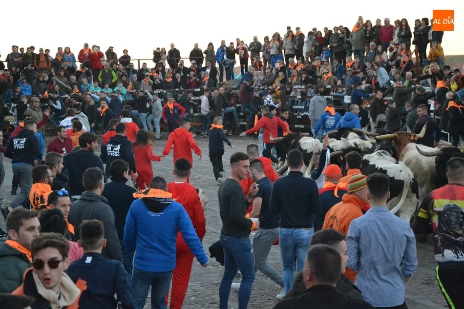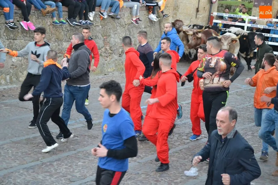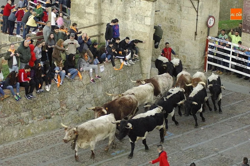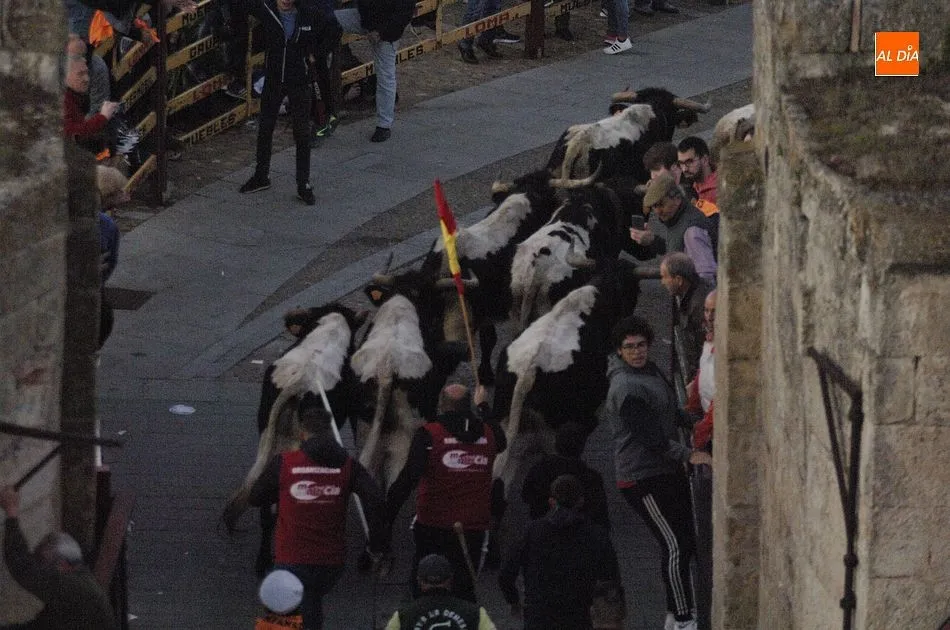 Concluido el Campanazo, buena parte de los asistentes al evento se repartieron por el recorrido del primer encierro carnavalero, protagonizado por los bueyes que en los próximos días acompañarán a los toros de los encierros urbanos. Este año, esos bueyes pertenecen a la ganadería de Raya La Dehesa SLU, contándose hasta con una docena de ellos.