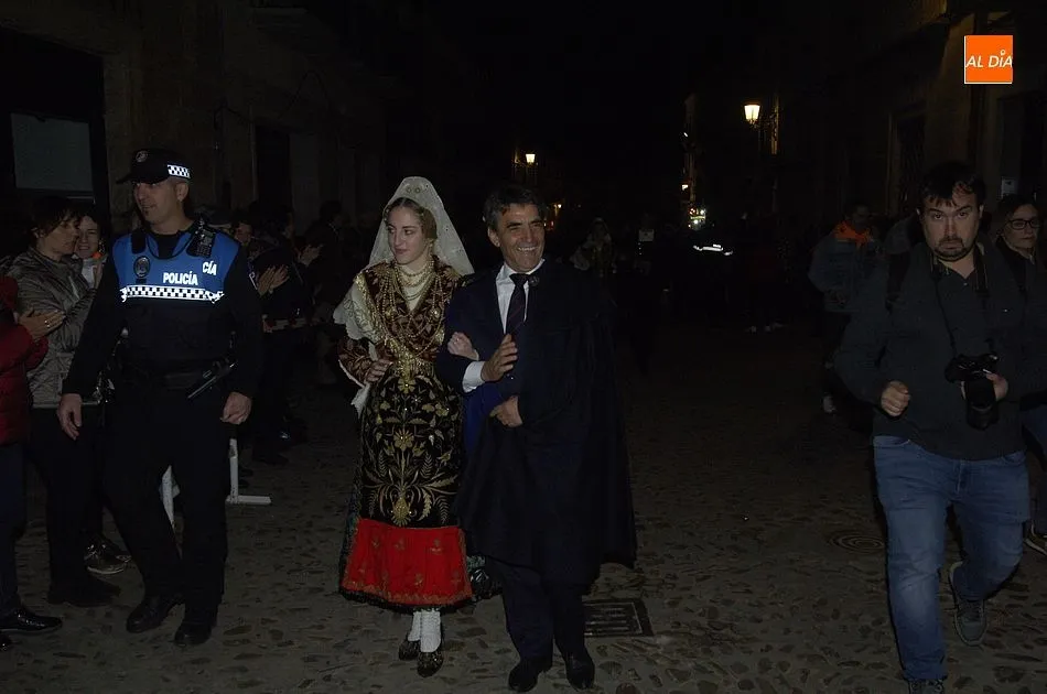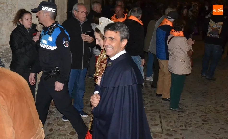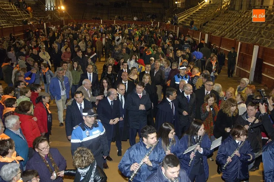 Buena parte de las autoridades mencionadas se concentraron para iniciar este bloque junto a la Catedral de Santa María, donde con la Banda Municipal de Música pusieron rumbo a la Casa Consistorial, donde Victorino Martín firmó en el Libro de Honor del Ayuntamiento de Ciudad Rodrigo antes de ofrecer desde la balconada del edificio el tradicional pregoncillo, que congregó en la arena de la Plaza a varios cientos de mirobrigenses.