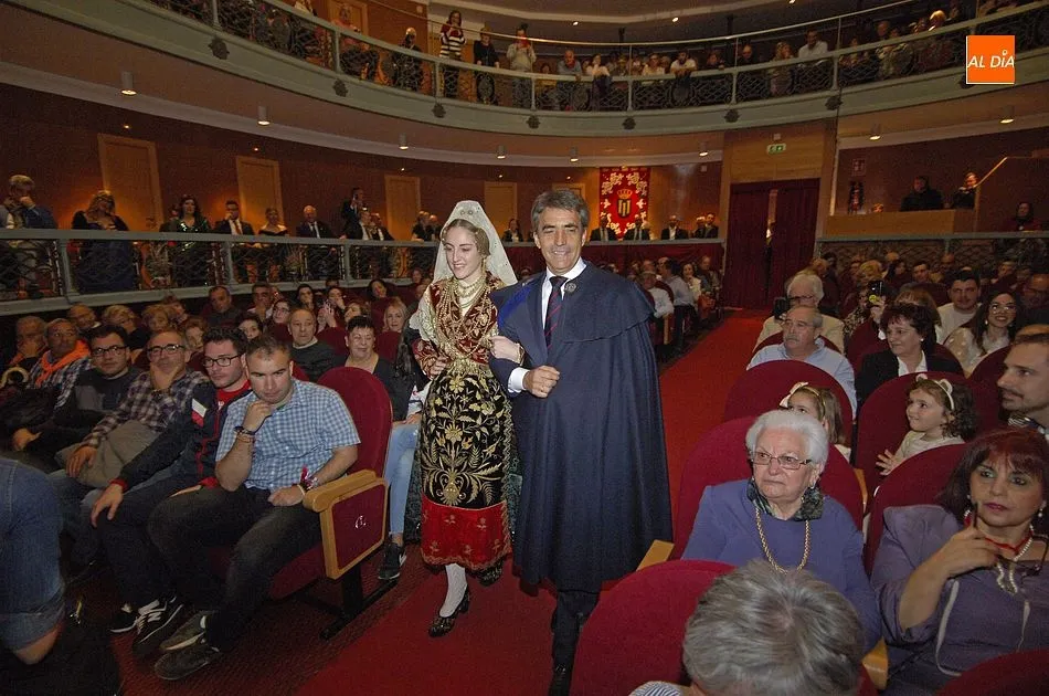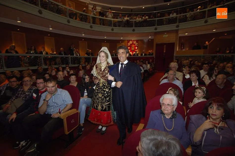 A continuación, se puso rumbo en el tradicional paseíllo hasta el Teatro Nuevo Fernando Arrabal, solemnemente engalanado para un acto que fue presentado por la delegada de la parte Cultural del Carnaval, Paola Martín Muñoz. Ella fue la encargada de ir dando entrada a la Corte de Honor, sus acompañantes y el pregonero. Las damas Julia Fernández Cencerrado y Laura Pérez Pinto fueron del brazo, respectivamente, de Diego Cencerrado y Juan Antonio Pérez Pinto, mientras que la Reina Patricia Martín Jorge fue con el Pregonero Mayor.
