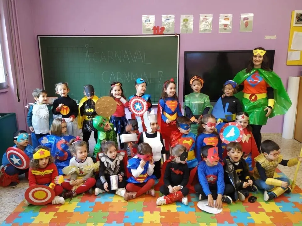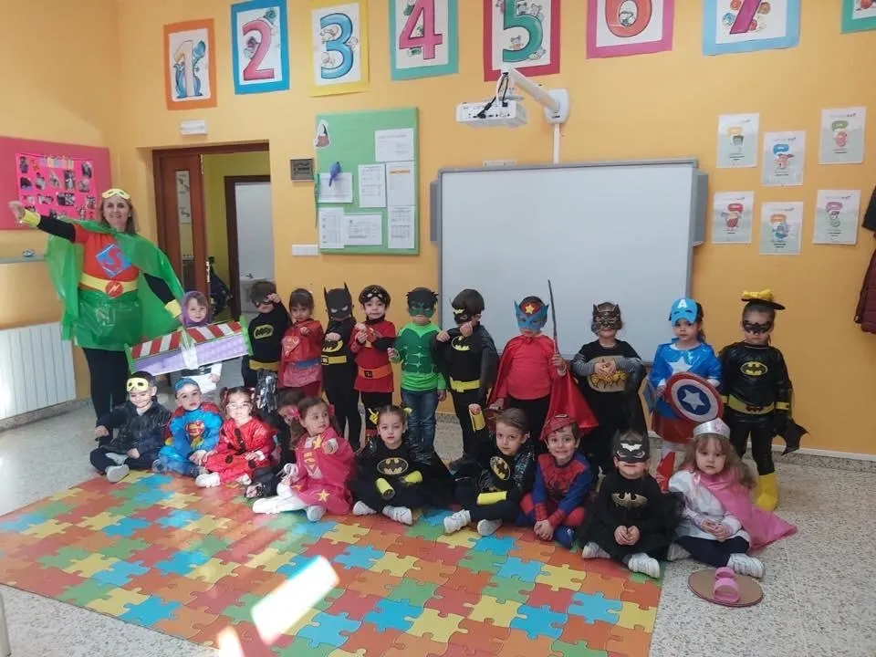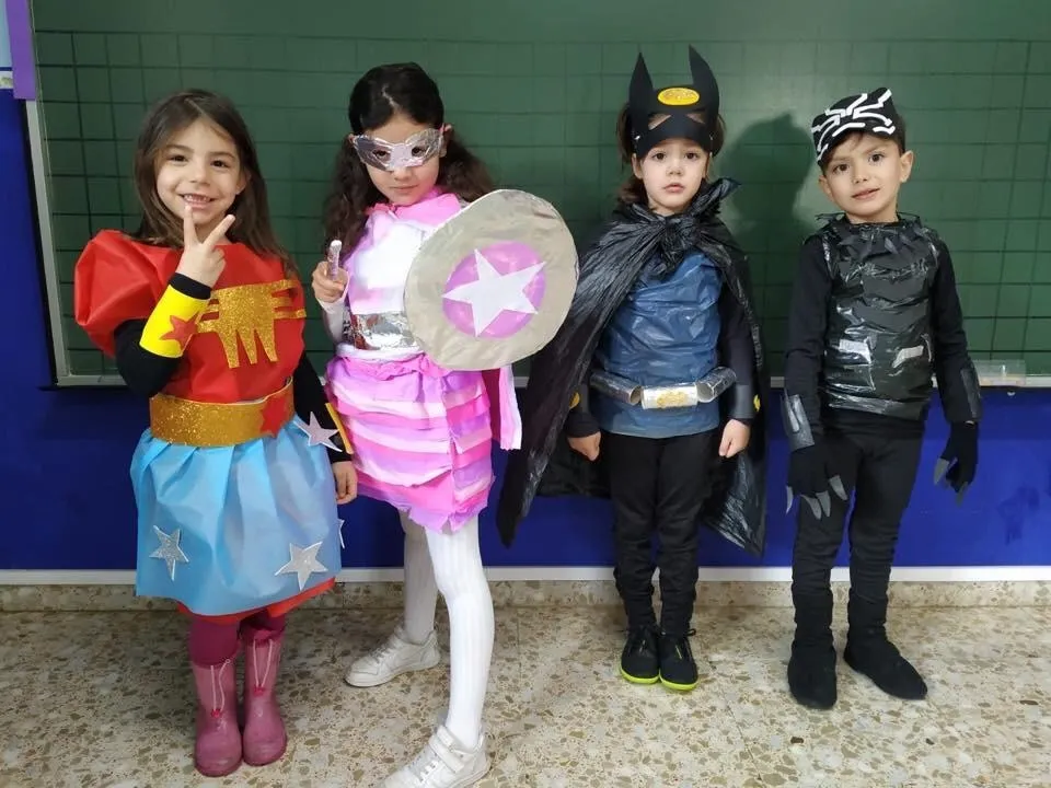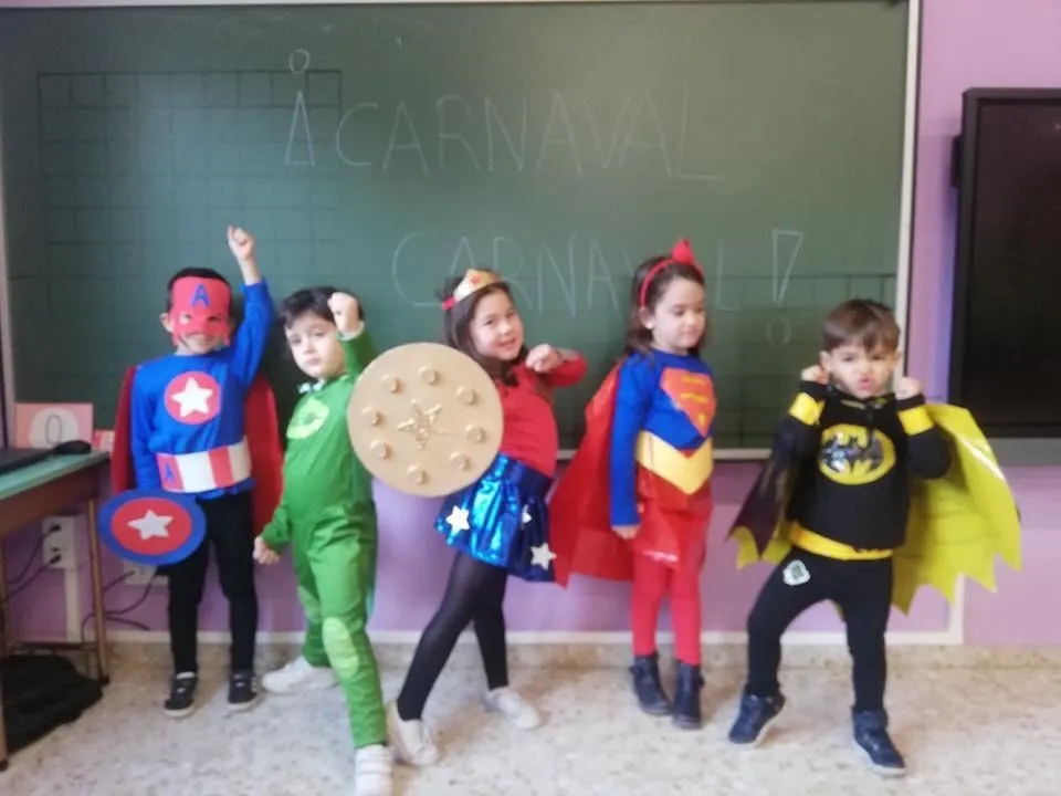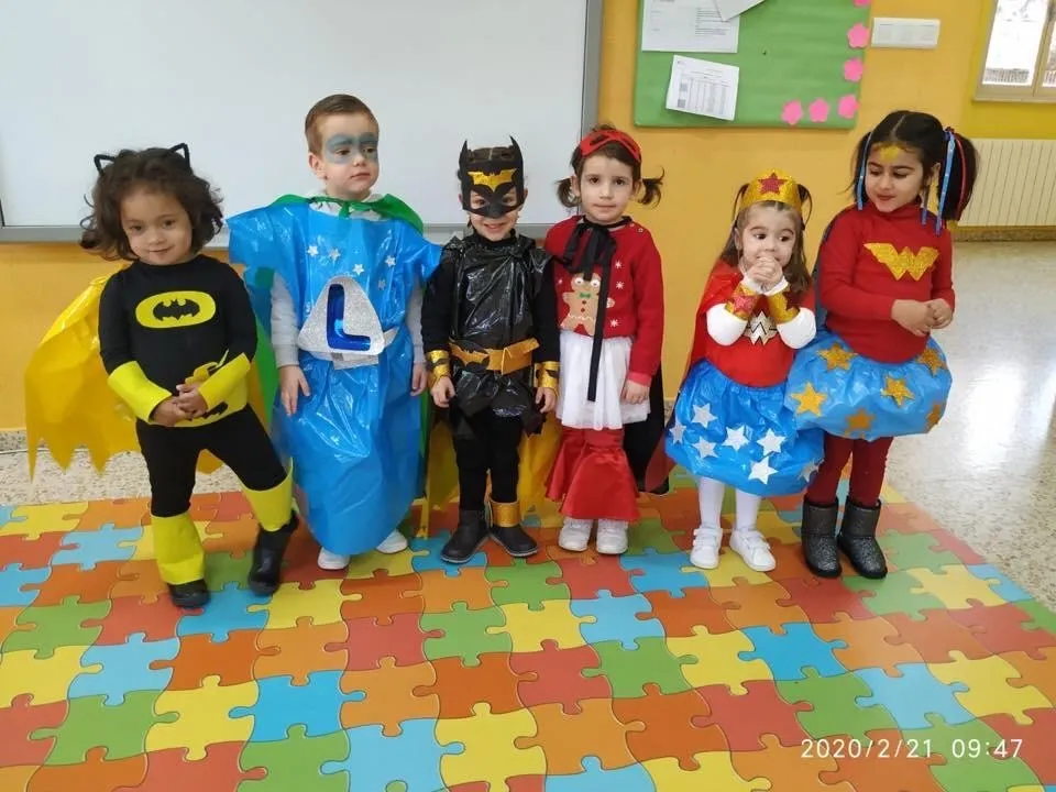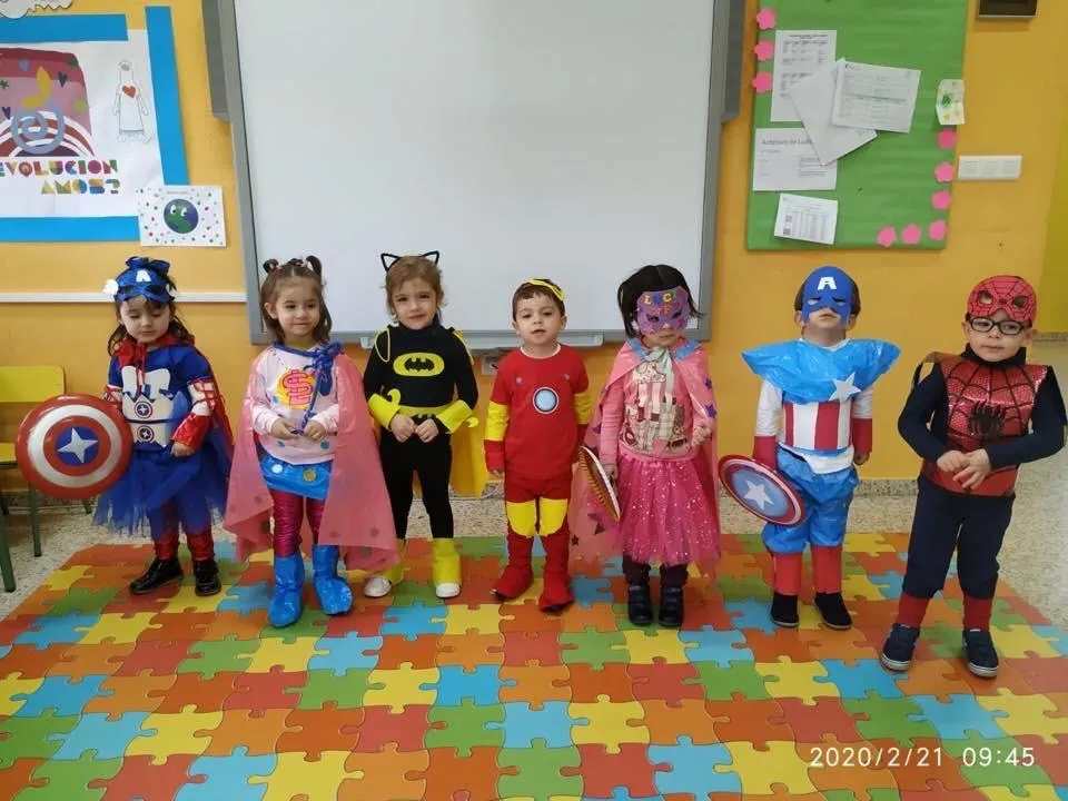 Los alumnos de Educación Infantil del Colegio Santa Teresa de Jesús de Salamanca han celebrado este viernes, junto a sus profesores, su particular fiesta de carnaval con disfraces de auténticos superhéroes elaborados con material reciclado y creando un ambiente de alegría, baile y diversión, como viene siendo habitual.
