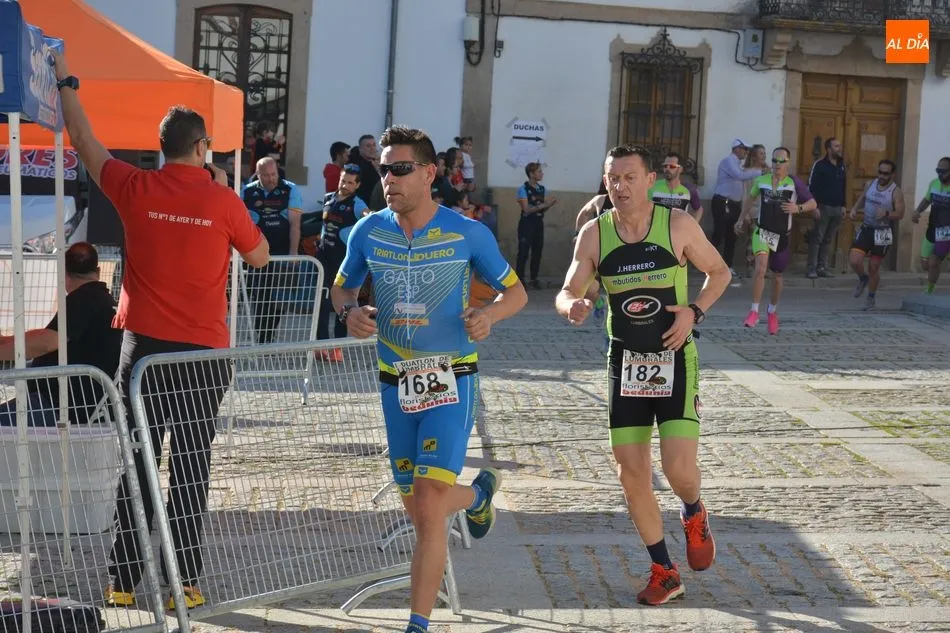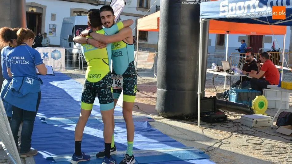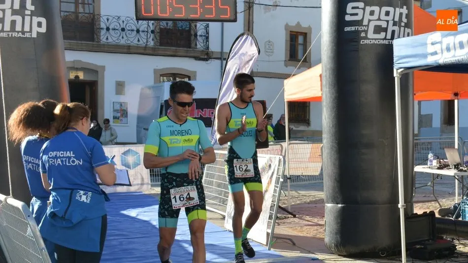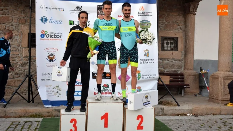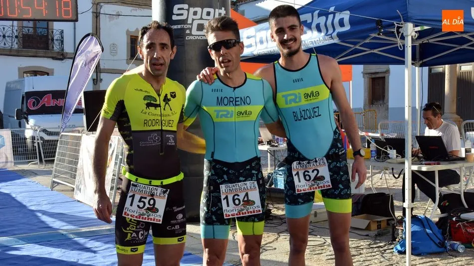 Ochenta deportistas de varios club de Salamanca, Ávila, Oviedo, Zamora y Segovia han disputado esta tarde el I Duatlón ?Villa de Lumbrales?, un evento deportivo incluido en la Liga Duatlón de Salamanca, y puntuable dentro del circuito de Triatlón de Castilla y León. A pesar de la dureza del recorrido y del fuerte calor durante la prueba, los primeros clasificados emplearon menos de 1 hora en llegar a la meta, instalada en la Plaza Mayor de Lumbrales. Fernando Moreno y Alberto Blázquez, ambos del Club Triatlón Ávila, entraron de la mano en la meta, aunque en la clasificación se dió como ganador de la carrera lumbralense al primero de ellos. El tercer corredor en entrar en la meta fue Carlos Rodríguez.
