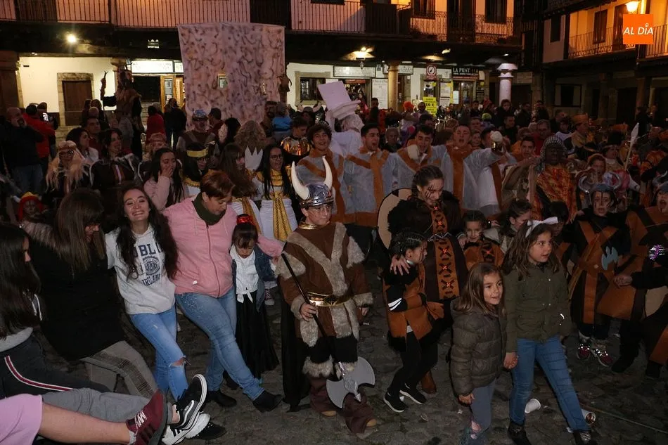 La Alberca continúa hoy con su divertida programación de carnaval propuesta desde el Ayuntamiento. Cientos de personas se dieron en la Plaza Mayor tras partir desde la ermita de San Antonio para disfrutar del divertido pasacalles y posterior concurso de disfraces. No faltó la música de la charanga y una chocolatada ofrecida en el soportal del Consistorio.