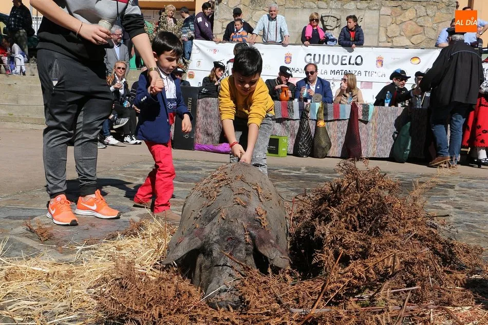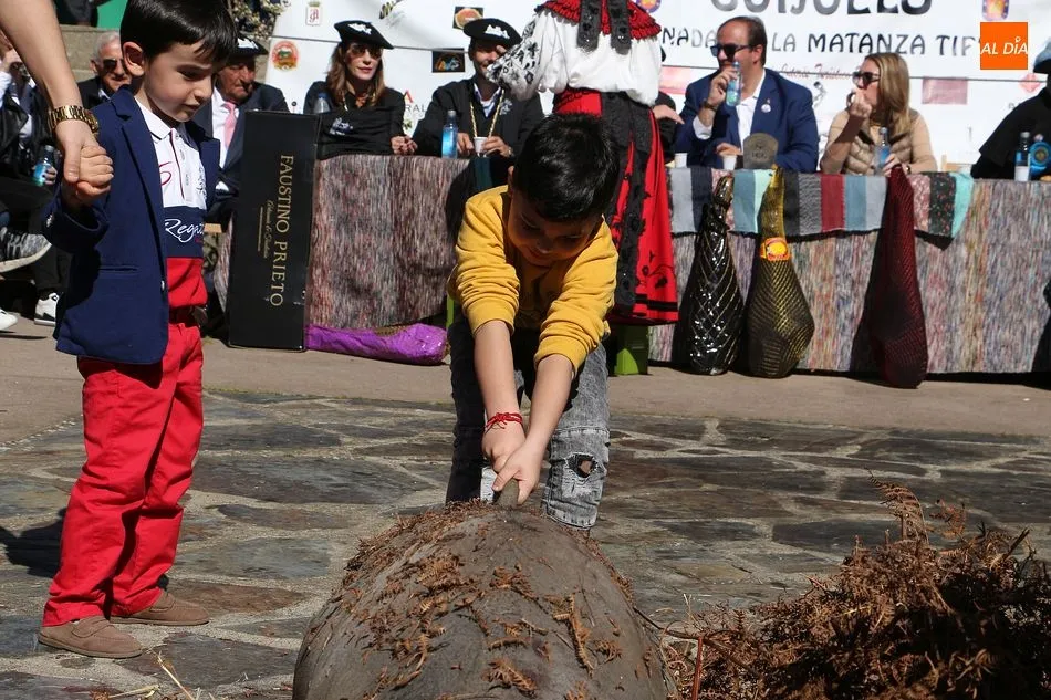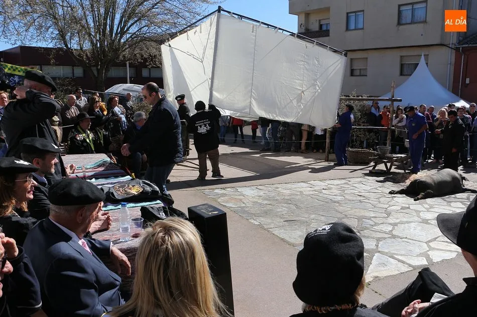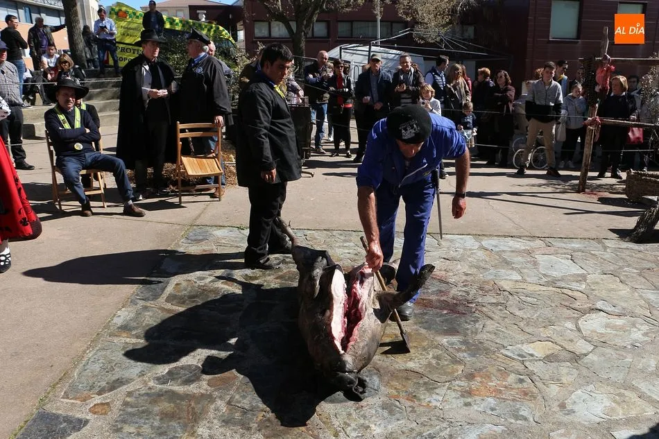 En el capítulo de matanceros de honor, hoy fue el turno de la exMiss España Ines Sáinz, el presidente del Club Harley de Madrid Kike Romero, el cocinero José Manuel Pascua y periodista radiofónico Alfredo Menéndez. La música de la gaita y el tamboril acompañó a las águedas en el reparto de viandas típicas de matanza durante el despiece del animal llevado a cabo por los matarifes. No faltó tampoco un último recuerdo a Faustino Prieto, uno de los promotores de la fiesta fallecido el pasado año, en esta primera edición su su presencia.