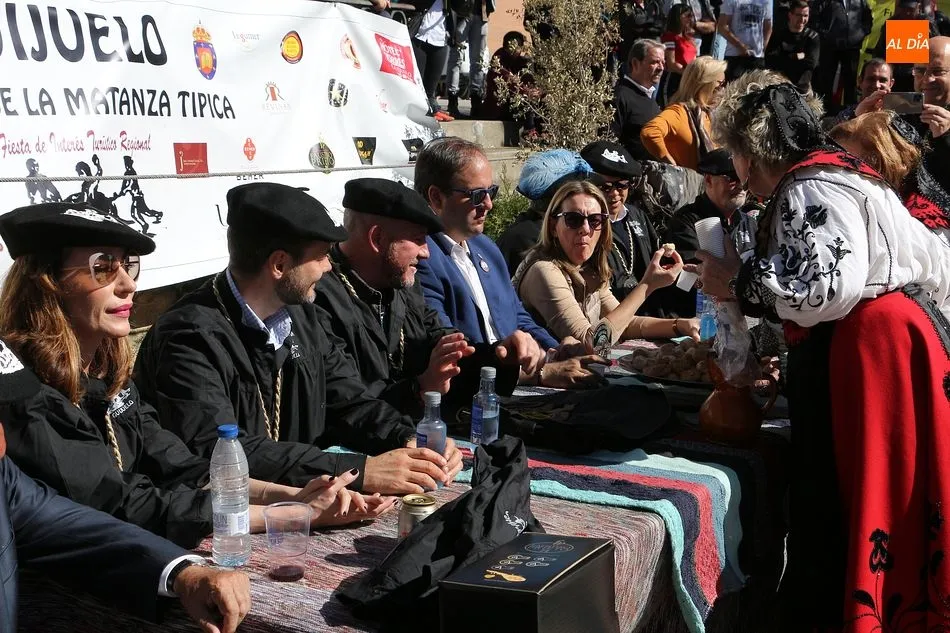 Guijuelo ha vivido esta mañana la última jornada de la Matanza Típica de 2020. Con una temperatura y un sol más propios de otras estaciones dio comienzo la matanza dedicada a las cofradias, con especial atención a la Cofradía Gastronómica de Guijuelo, presidida por Goyo Llorente. No faltaron los anfitriones habituales, el conocido cortador de jamón, Jesús Merino y el alcalde de la villa, Roberto Martín. El invitado de honor fue Juan José Hidalgo, popular empresario salmantino que ya fue nombrado matancero de honor en 1996, en los inicios de la fiesta, y que ha visitado de nuevo la villa para recordar su cariño a Guijuelo y al típico producto guijuelense. No faltaron otros maestros de ceremonias como José María de Juana, Carlos Santos, Francisco Neto, Araceli Zarzalejos y la directora general de Turismo de Castilla y León, Estrella Torrecilla.