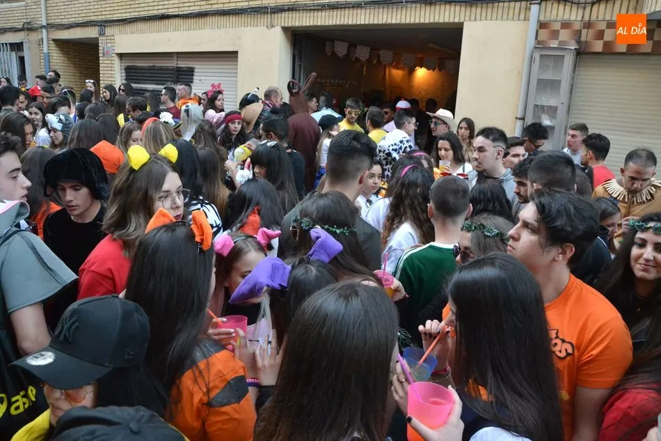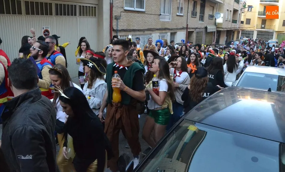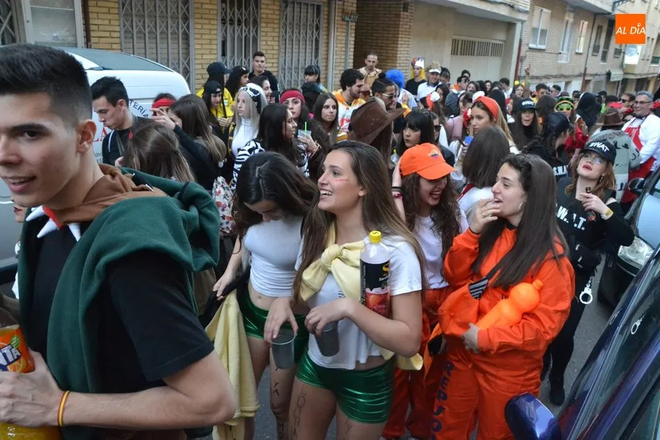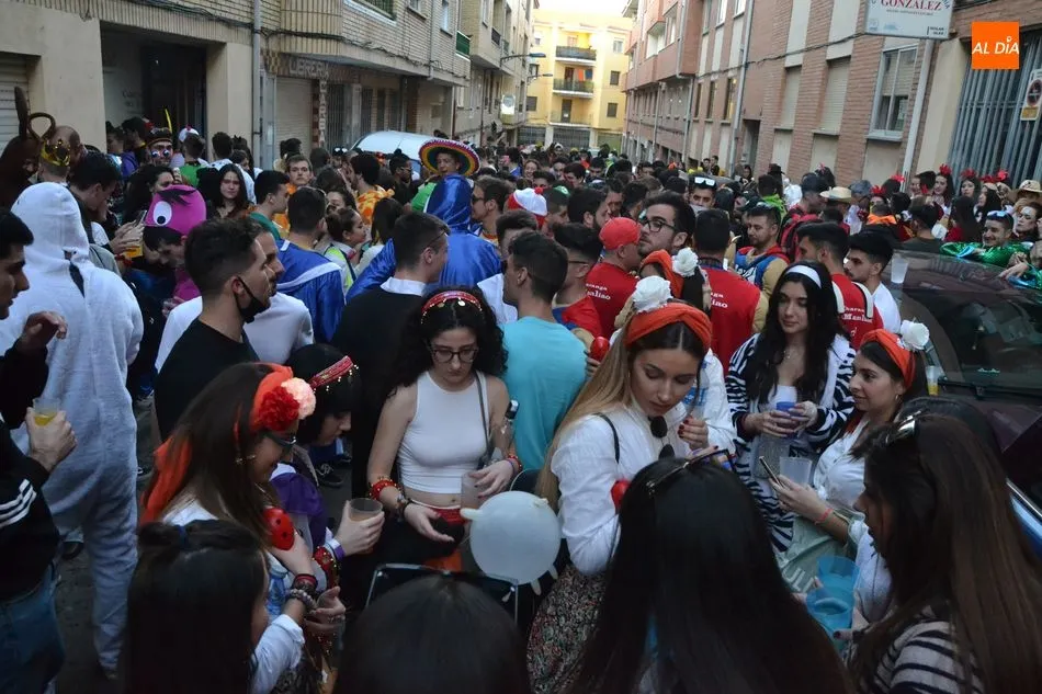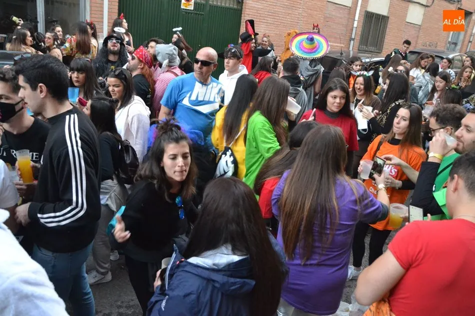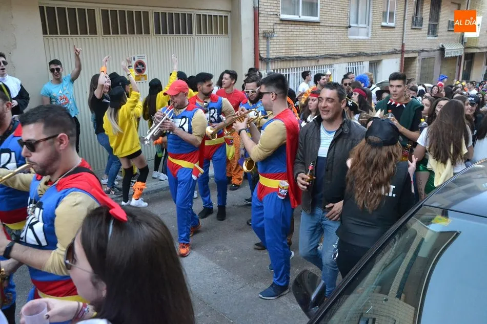 Tras un rato allí (con todos los jóvenes invadiendo la vía), se puso rumbo a la calle Santiago Vegas Arranz, donde está la sede de la Peña El Resultado. La última parada fue en una calle paralela, la calle Jesús Sánchez Terán, donde está la sede de la Peña Los Zumbaos, quienes fueron los promotores originales de este recorrido callejero ya en el lejano 2015.