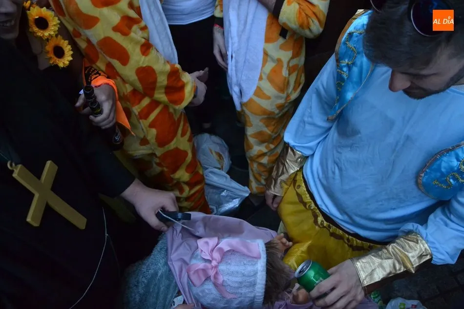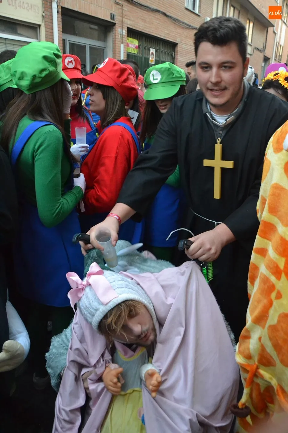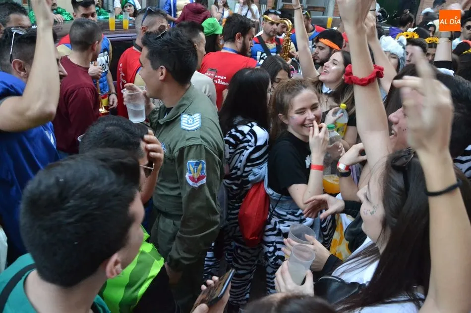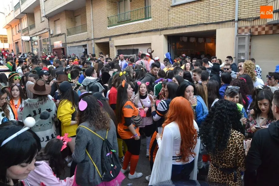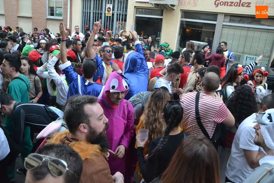 Tras un rato allí (con todos los jóvenes invadiendo la vía), se puso rumbo a la calle Santiago Vegas Arranz, donde está la sede de la Peña El Resultado. La última parada fue en una calle paralela, la calle Jesús Sánchez Terán, donde está la sede de la Peña Los Zumbaos, quienes fueron los promotores originales de este recorrido callejero ya en el lejano 2015.