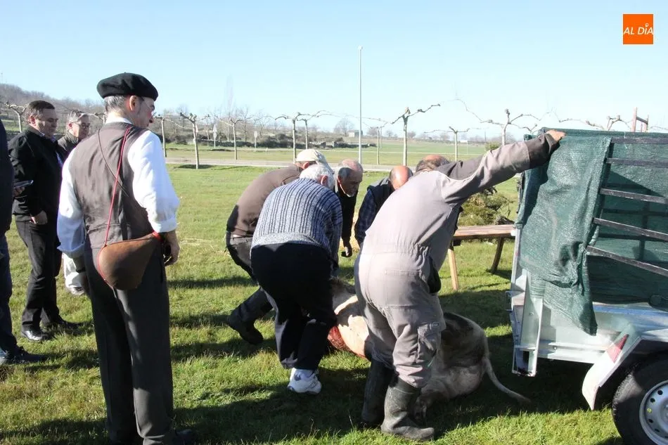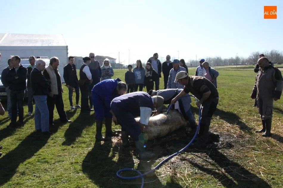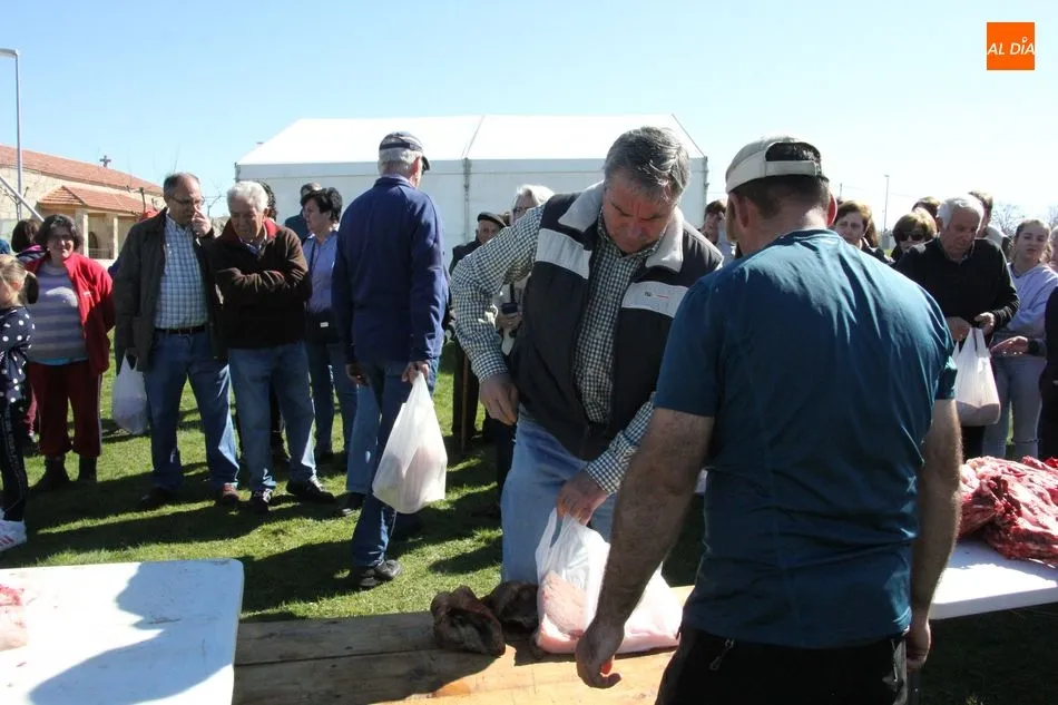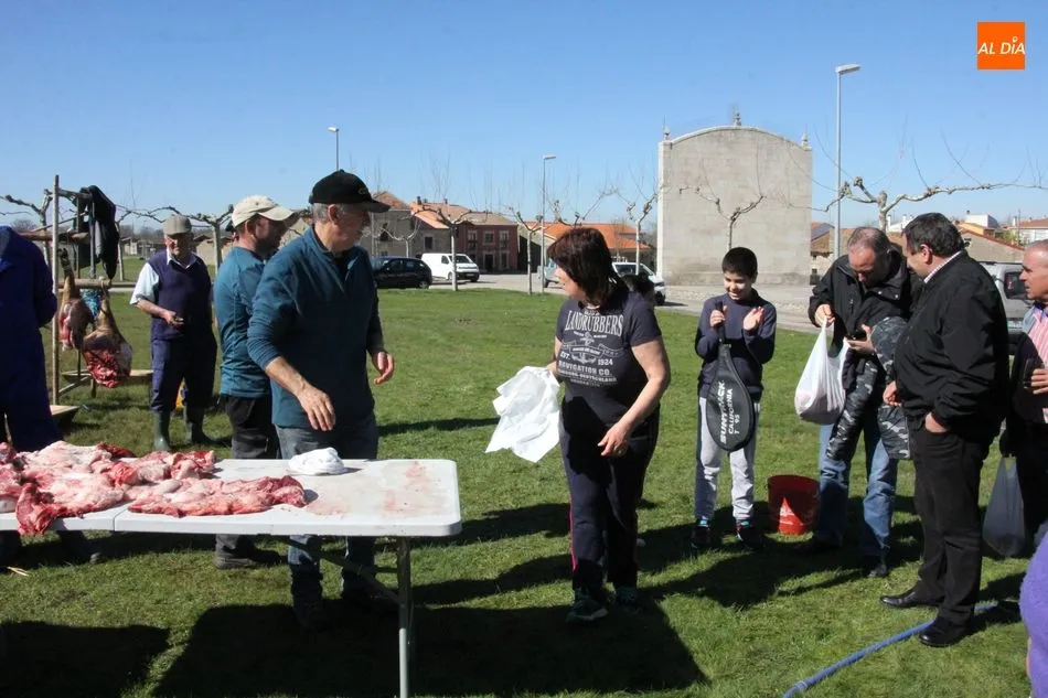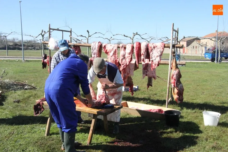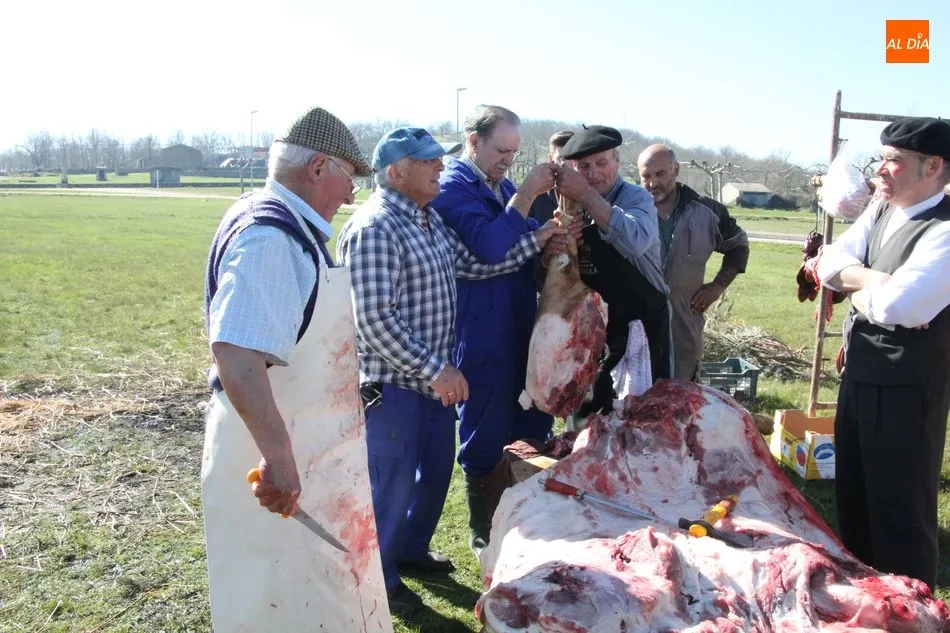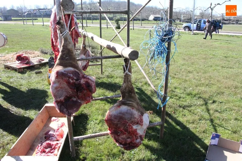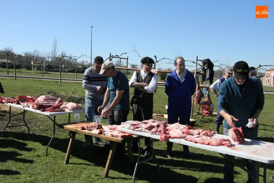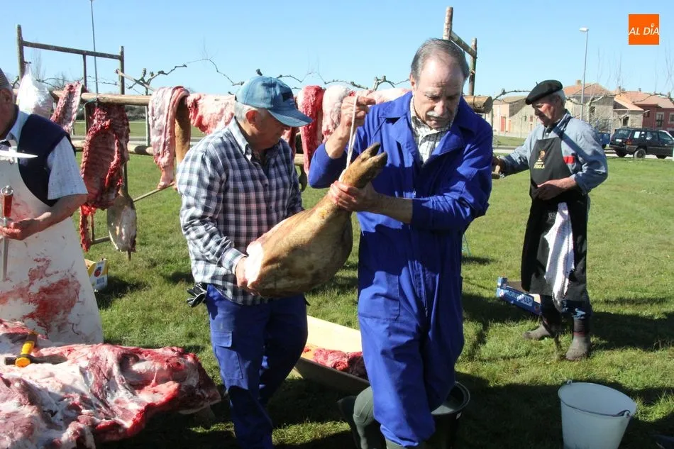 Así, una vez limpio y sobre el tajo, Manuel, en calidad de matancero, se encargaba de separar las distintas piezas del animal ante la mirada atenta y curiosa de vecinos y visitantes. Jamones, paletas, lomos, panceta y el resto de las distintas partes del cerdo serían posteriormente presentadas por el Maestro de Ceremonias para subastarse entre el público asistente.