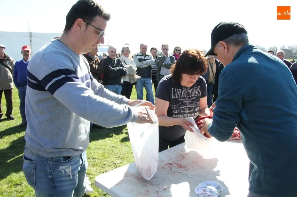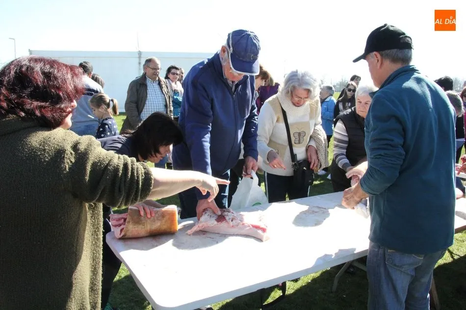 Los asistentes pudieron pujar en la subasta de las distintas piezas del cerdo