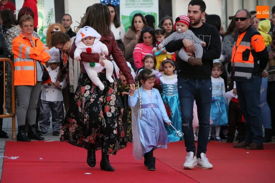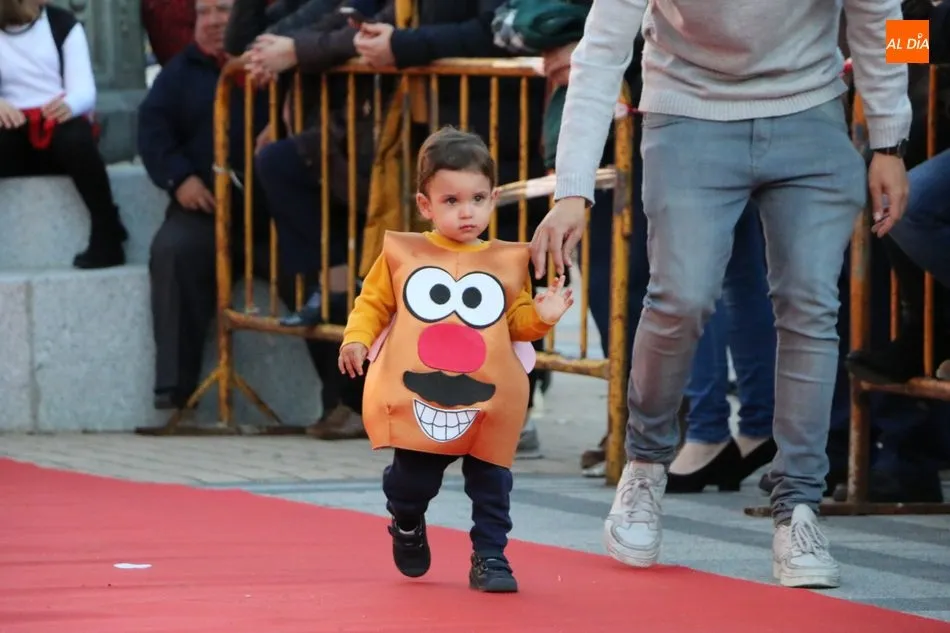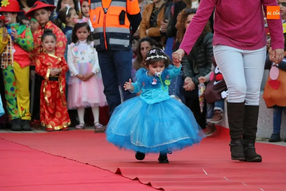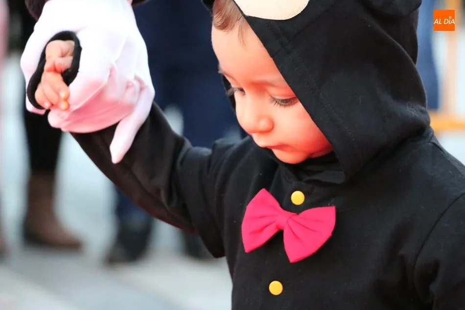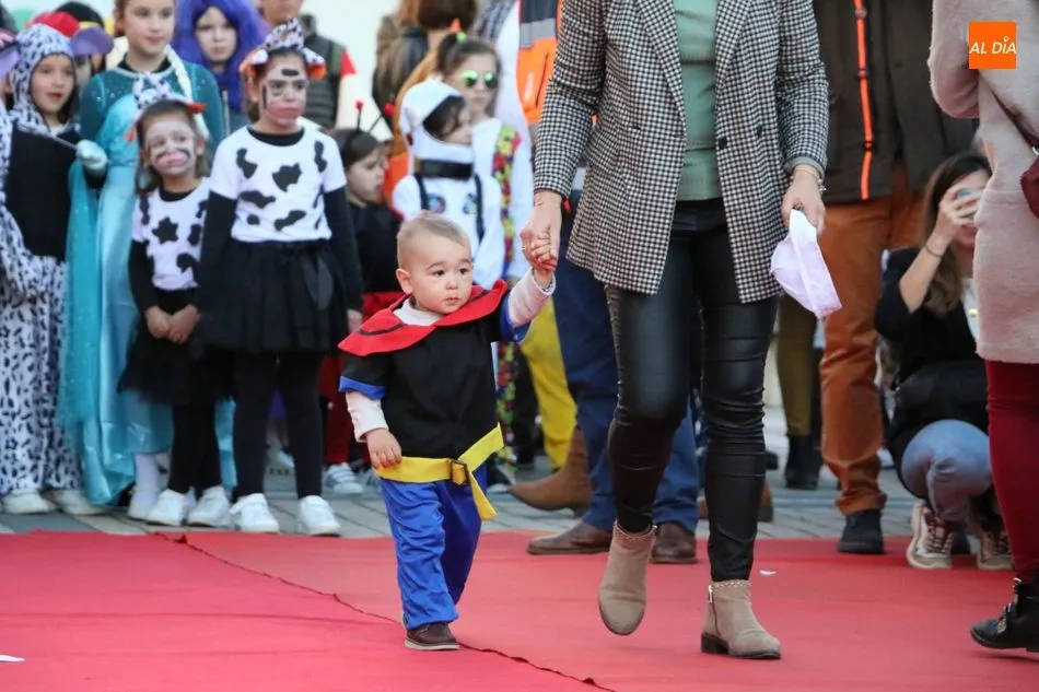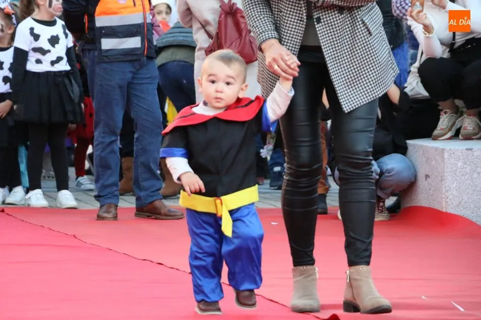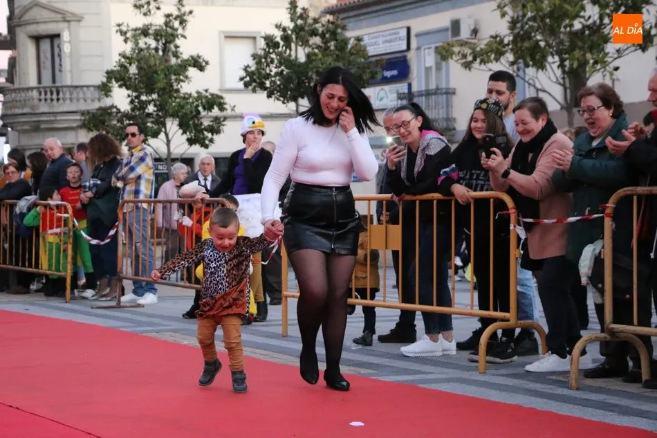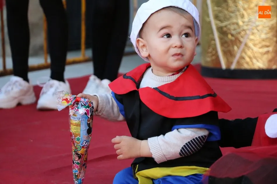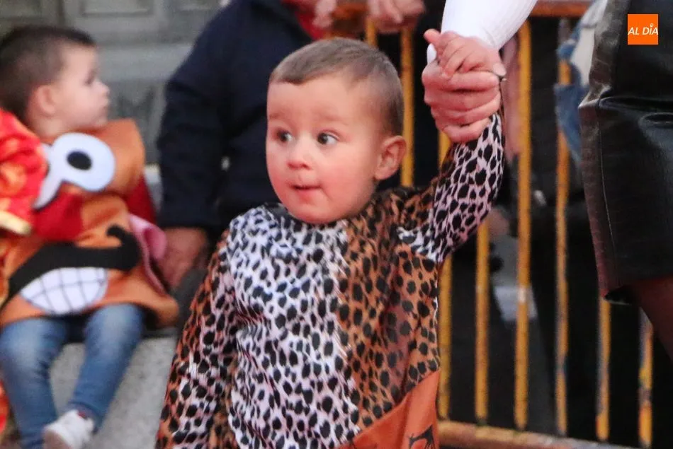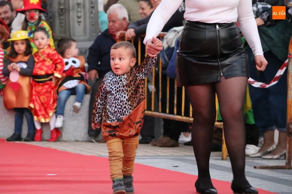 Ahora, eran los más pequeños de Vitigudino los que centraban las miradas de sus padres y abuelos, también de algún que otro hermano, durante un colorido desfile que recorría de una punta a la otra la Plaza del Ayuntamiento, un esfuerzo para algunos y un placer para la mayoría, que demostraban ya su destreza para las pasarelas, incluso hubo quien casi daría aquí sus primeros pasos, aunque todos recibieron como recompensa el aplauso del público, además de una bolsa de chuches, casi lo más agradecido.