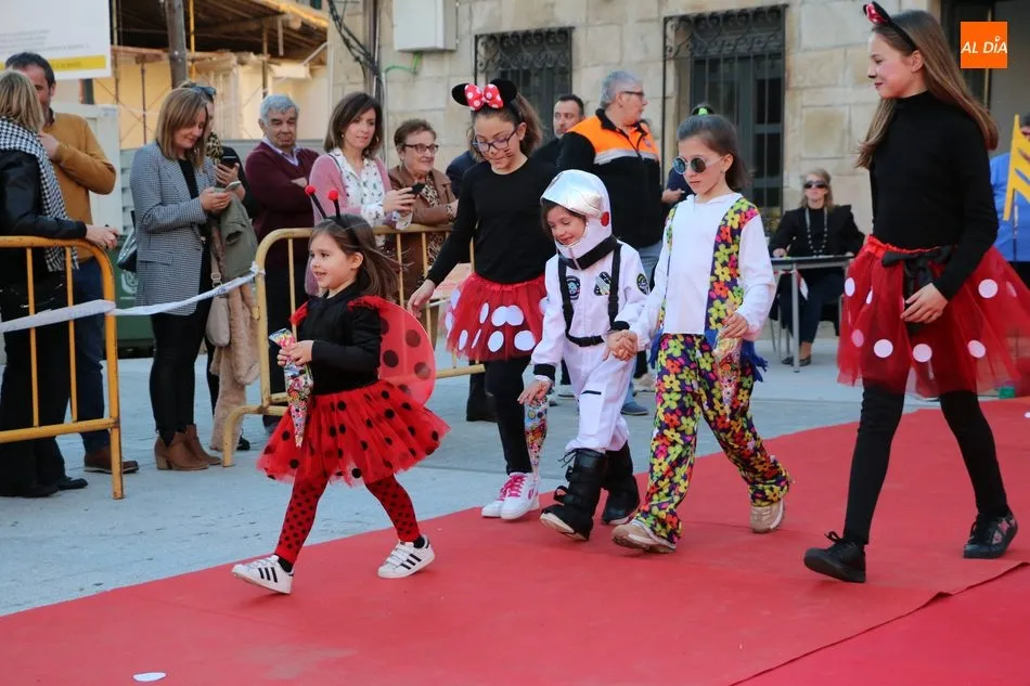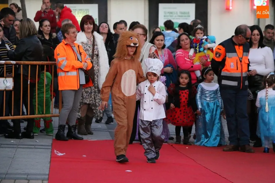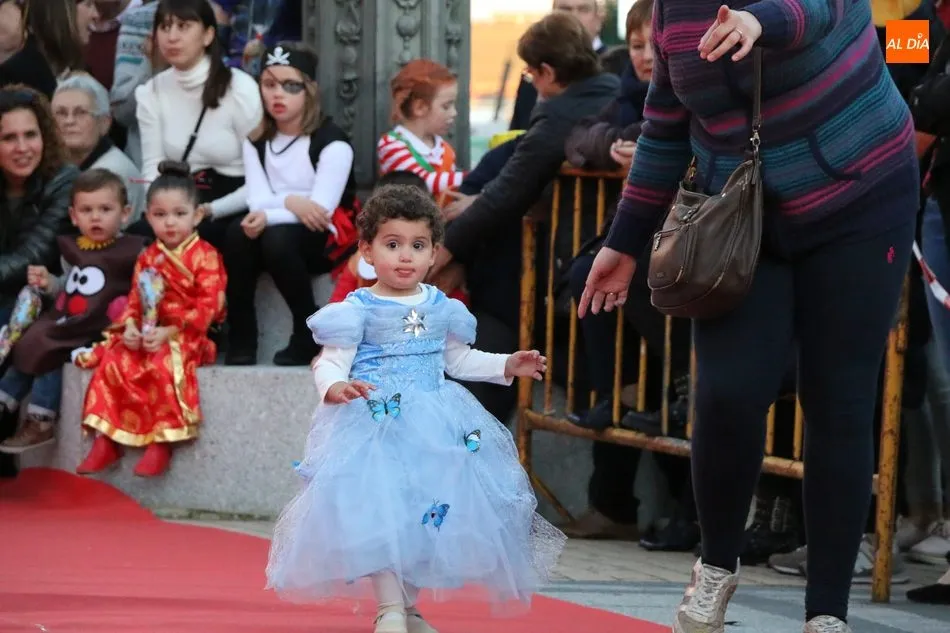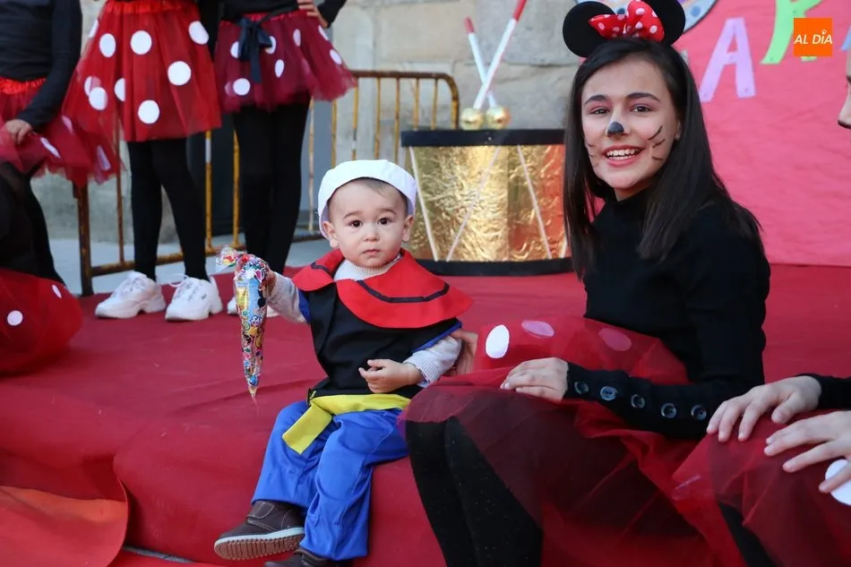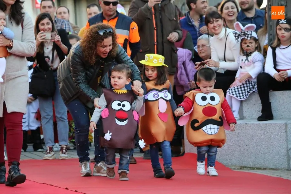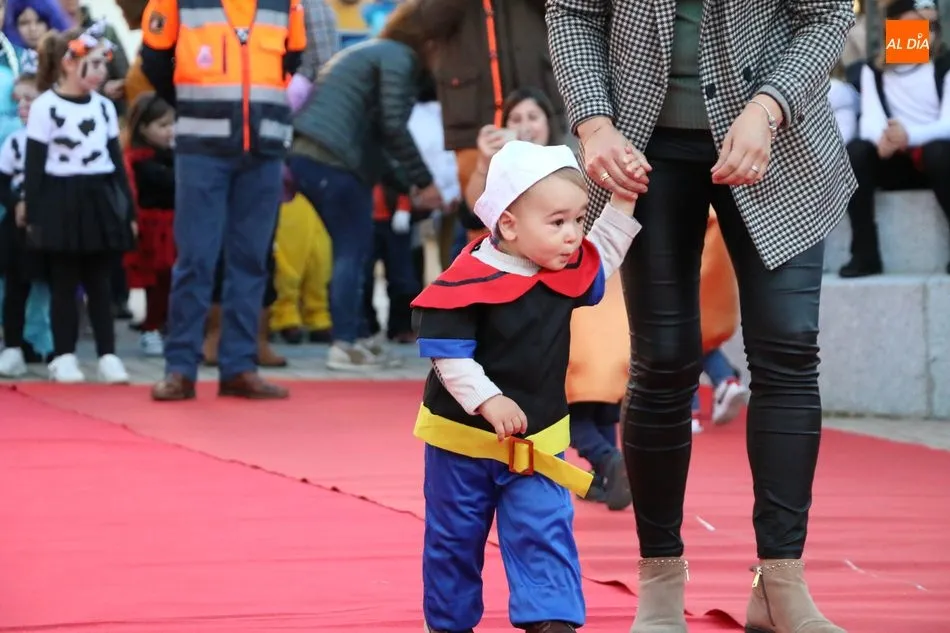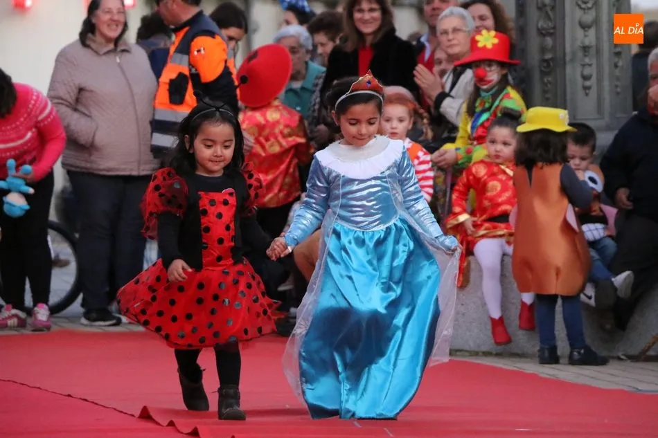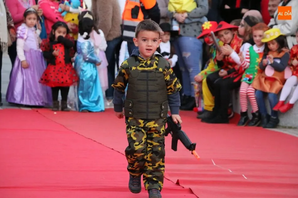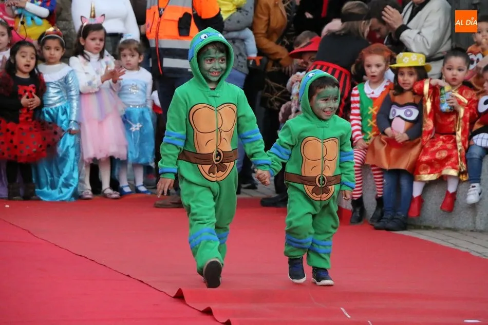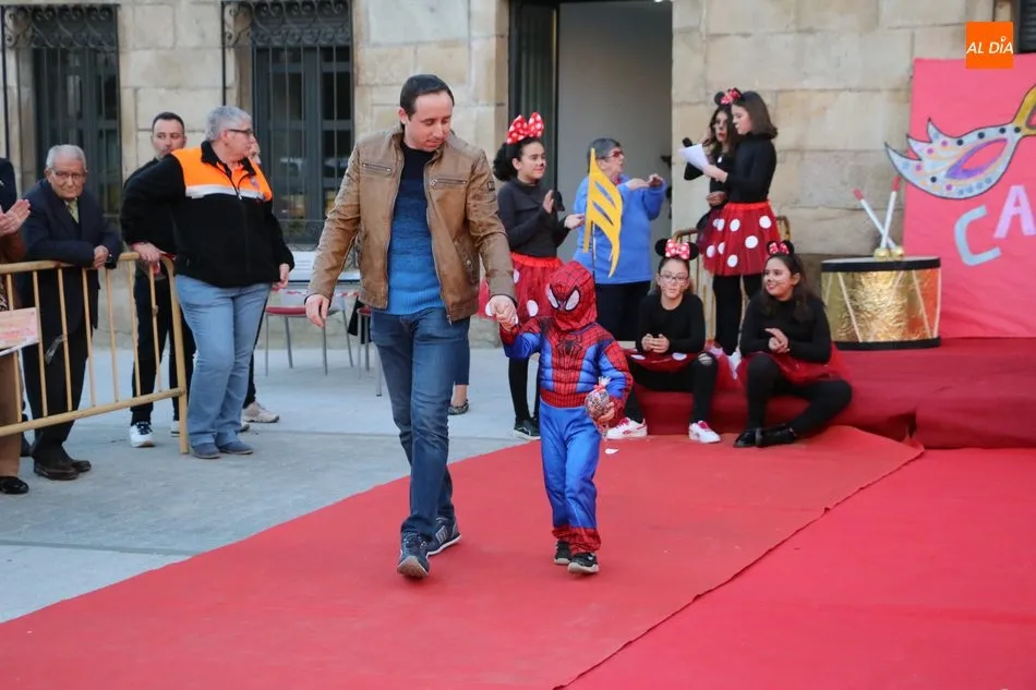 Ahora, eran los más pequeños de Vitigudino los que centraban las miradas de sus padres y abuelos, también de algún que otro hermano, durante un colorido desfile que recorría de una punta a la otra la Plaza del Ayuntamiento, un esfuerzo para algunos y un placer para la mayoría, que demostraban ya su destreza para las pasarelas, incluso hubo quien casi daría aquí sus primeros pasos, aunque todos recibieron como recompensa el aplauso del público, además de una bolsa de chuches, casi lo más agradecido.