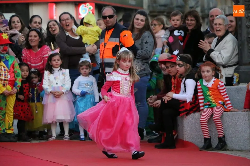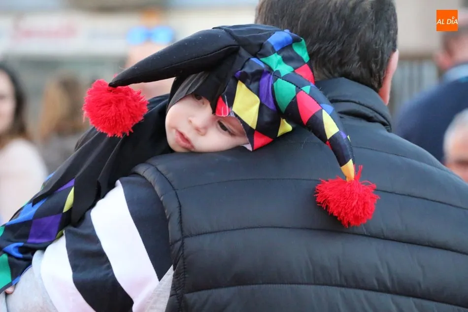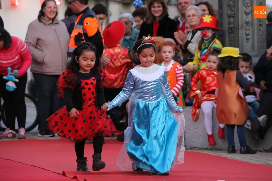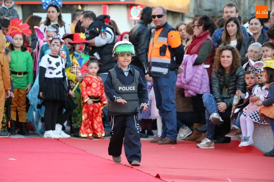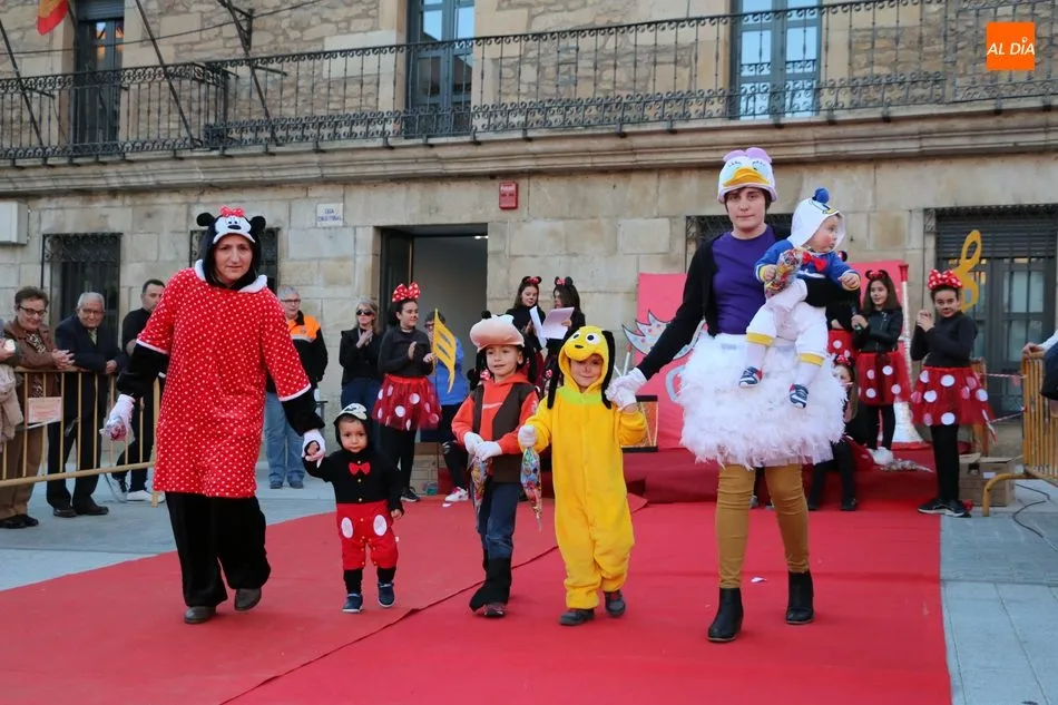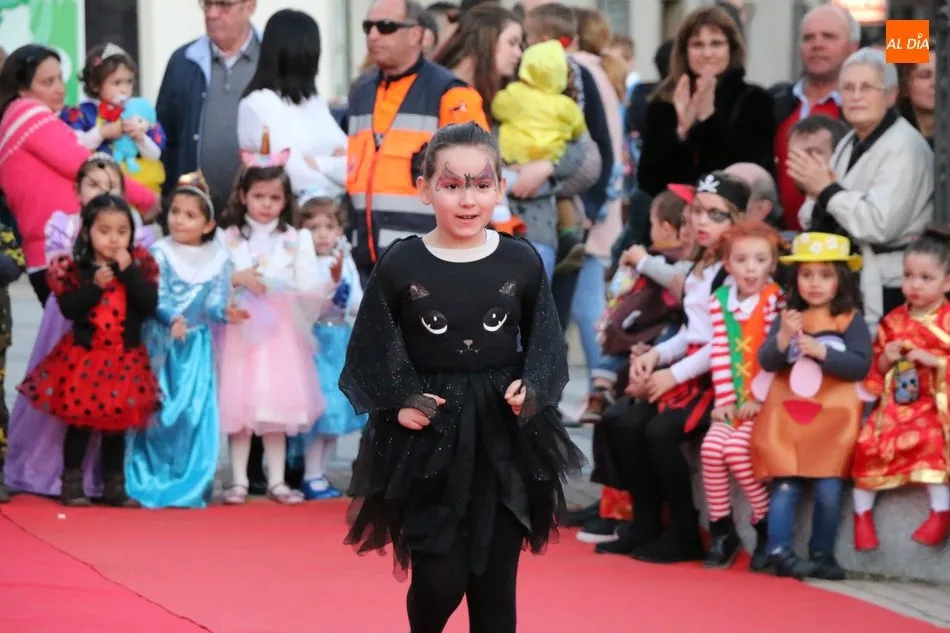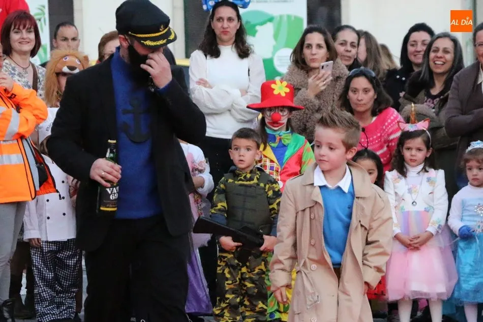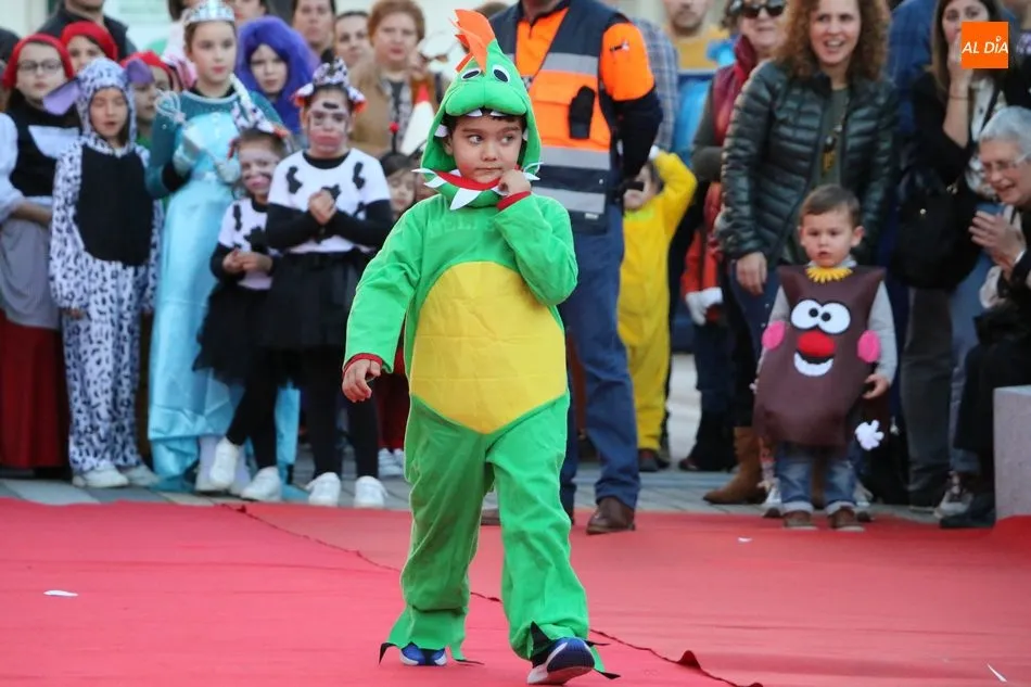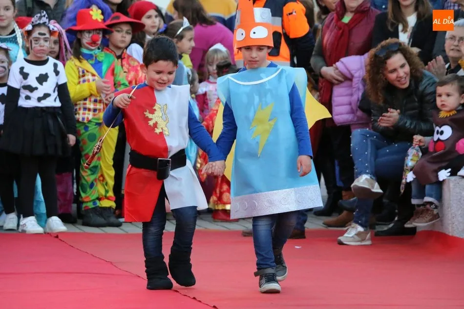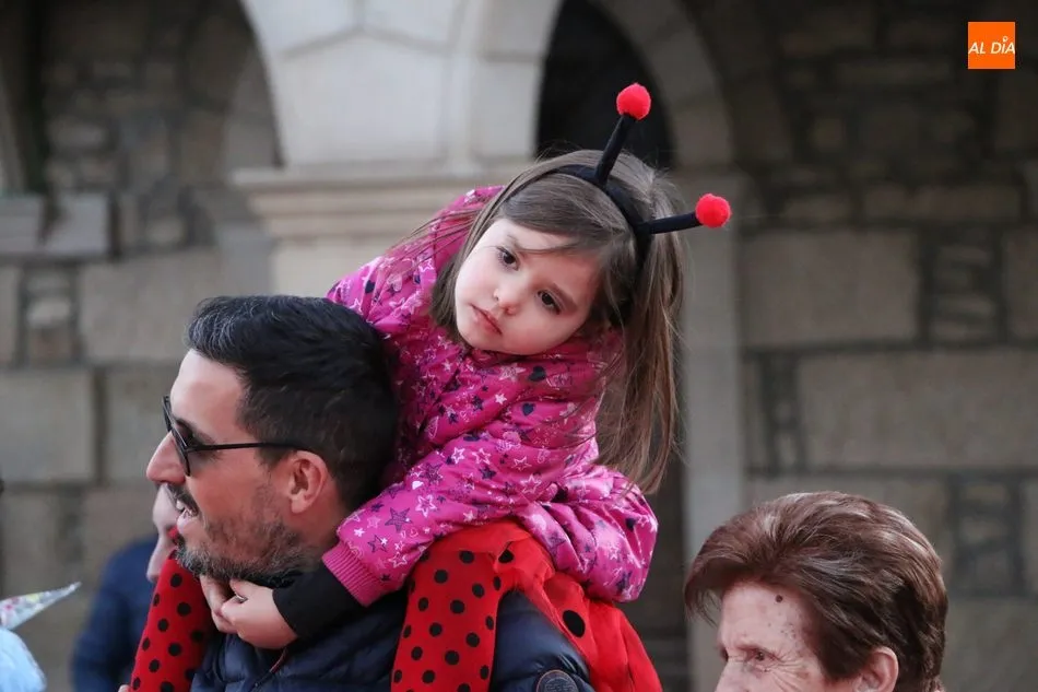 Ahora, eran los más pequeños de Vitigudino los que centraban las miradas de sus padres y abuelos, también de algún que otro hermano, durante un colorido desfile que recorría de una punta a la otra la Plaza del Ayuntamiento, un esfuerzo para algunos y un placer para la mayoría, que demostraban ya su destreza para las pasarelas, incluso hubo quien casi daría aquí sus primeros pasos, aunque todos recibieron como recompensa el aplauso del público, además de una bolsa de chuches, casi lo más agradecido.