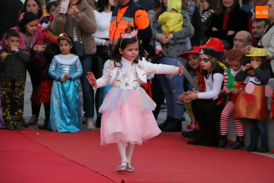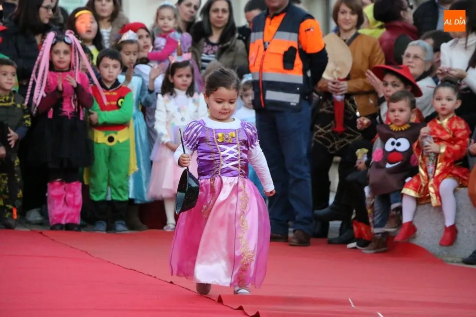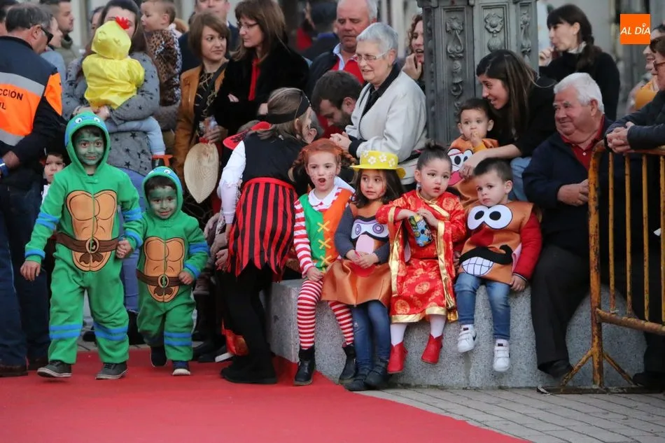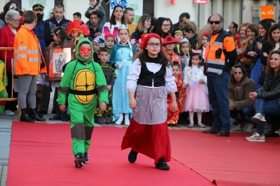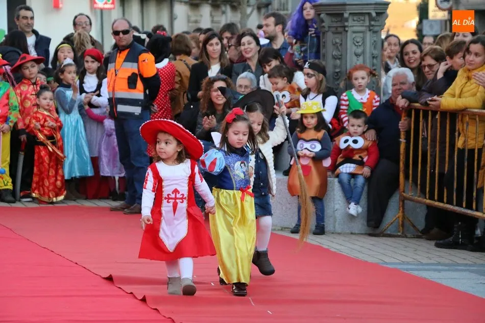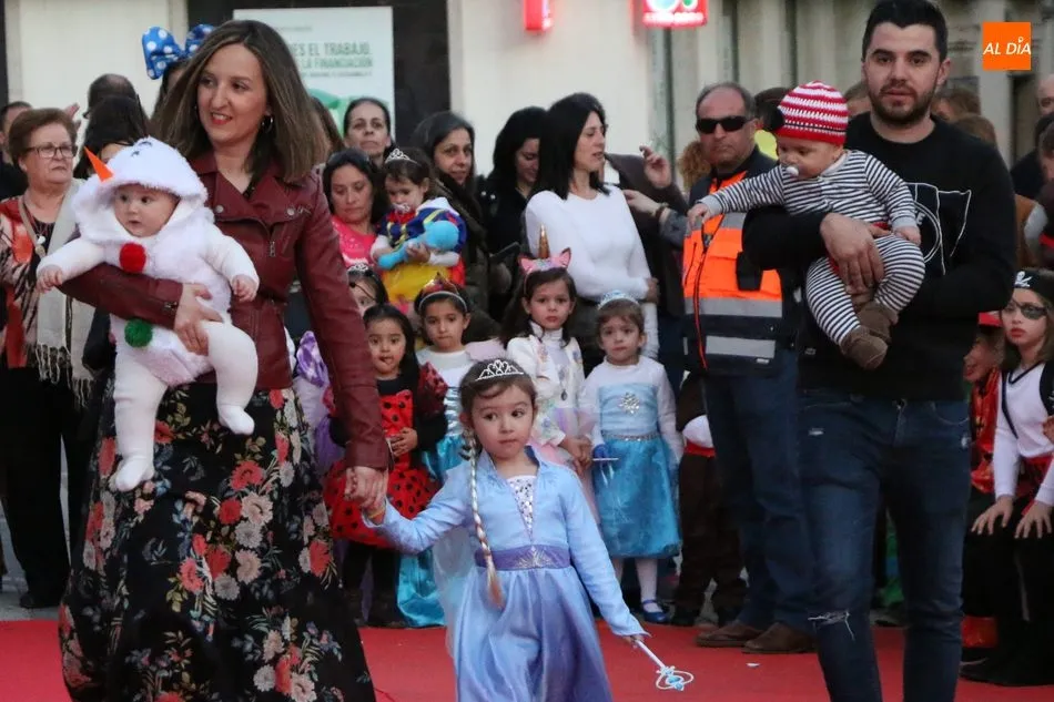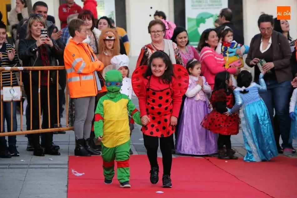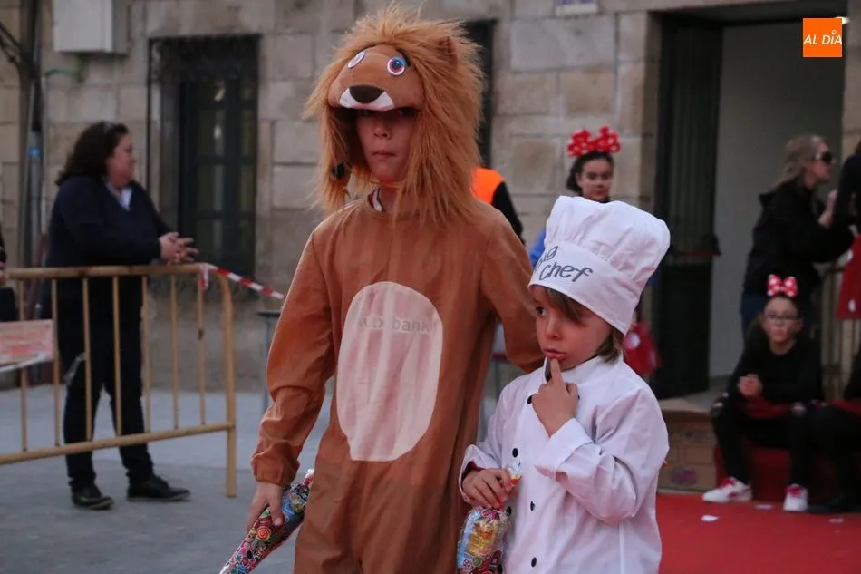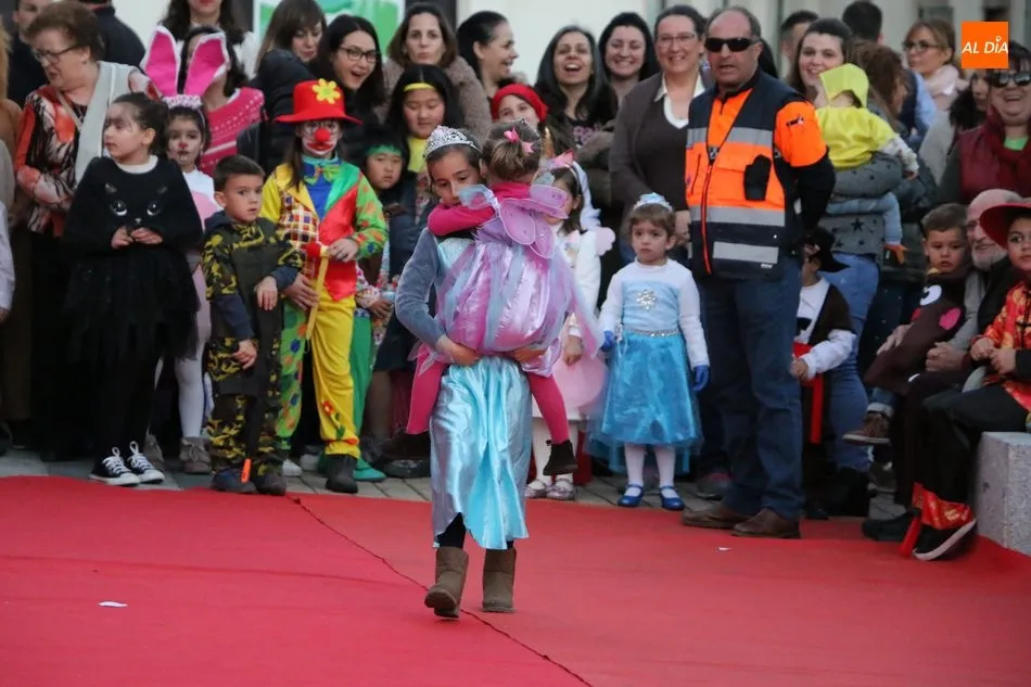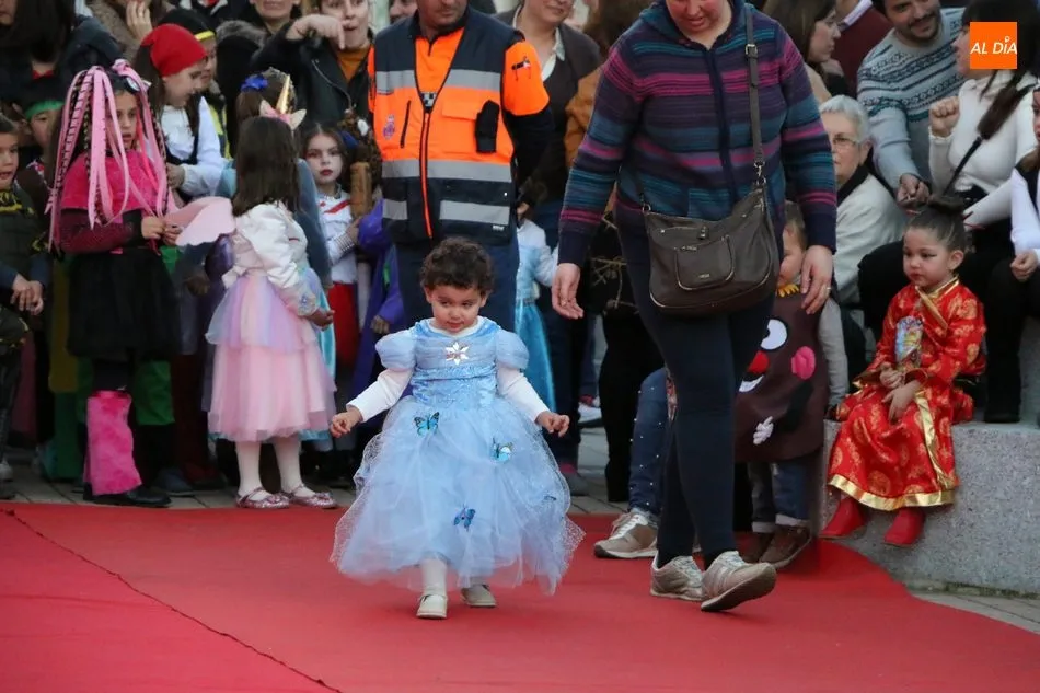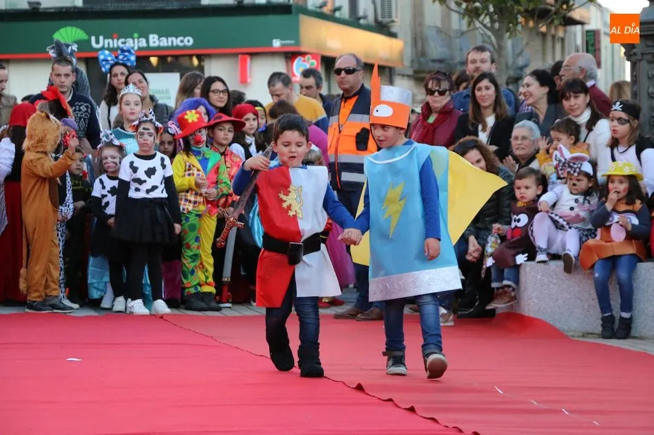 Ahora, eran los más pequeños de Vitigudino los que centraban las miradas de sus padres y abuelos, también de algún que otro hermano, durante un colorido desfile que recorría de una punta a la otra la Plaza del Ayuntamiento, un esfuerzo para algunos y un placer para la mayoría, que demostraban ya su destreza para las pasarelas, incluso hubo quien casi daría aquí sus primeros pasos, aunque todos recibieron como recompensa el aplauso del público, además de una bolsa de chuches, casi lo más agradecido.