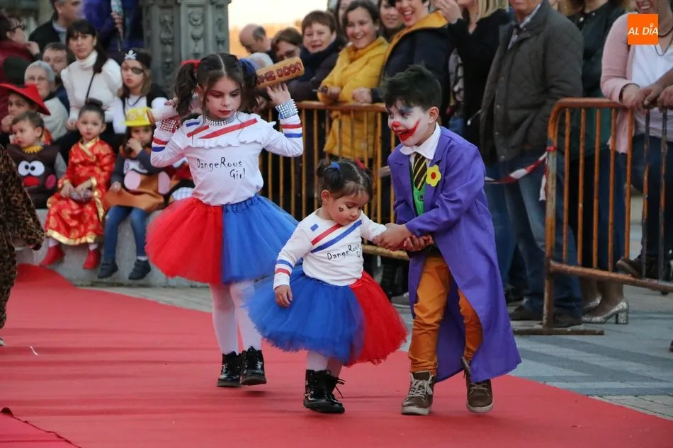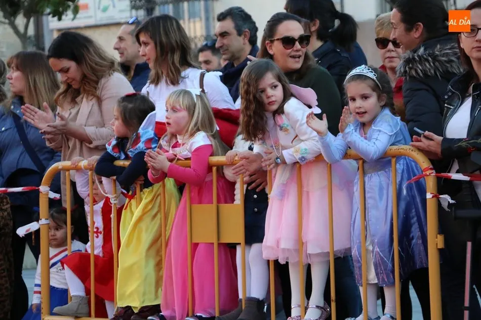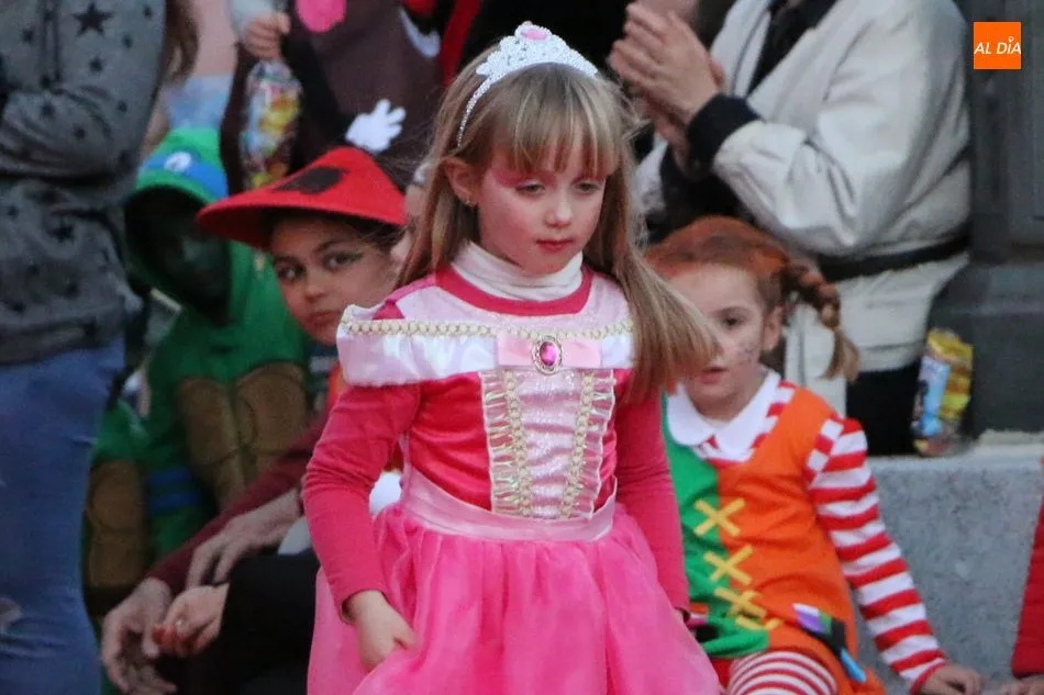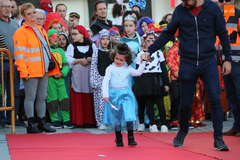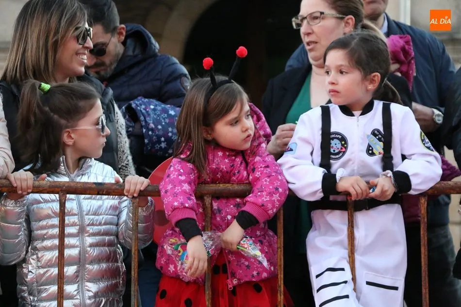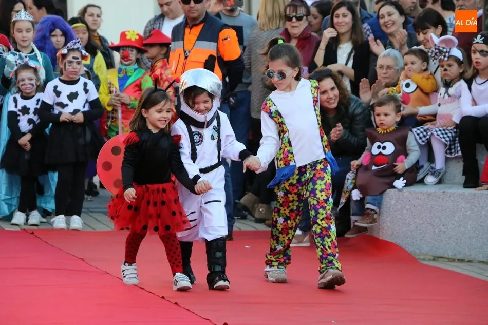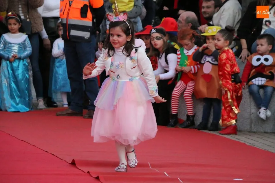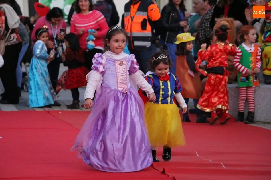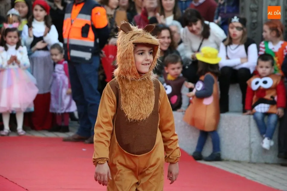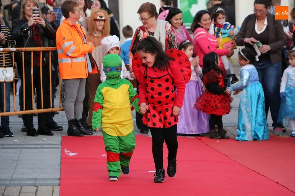 Ahora, eran los más pequeños de Vitigudino los que centraban las miradas de sus padres y abuelos, también de algún que otro hermano, durante un colorido desfile que recorría de una punta a la otra la Plaza del Ayuntamiento, un esfuerzo para algunos y un placer para la mayoría, que demostraban ya su destreza para las pasarelas, incluso hubo quien casi daría aquí sus primeros pasos, aunque todos recibieron como recompensa el aplauso del público, además de una bolsa de chuches, casi lo más agradecido.