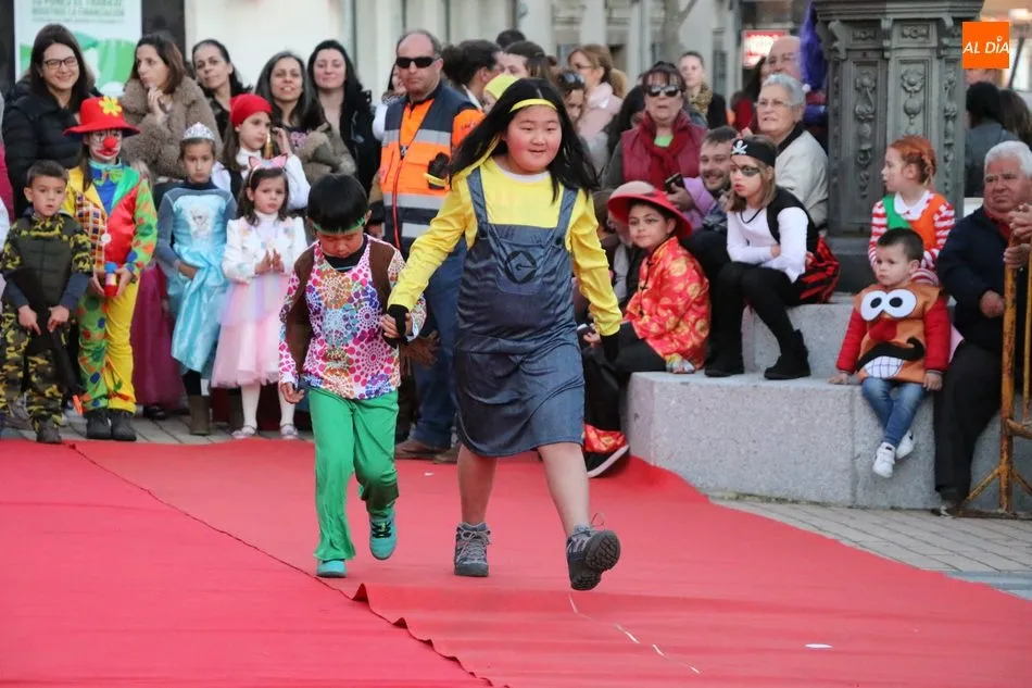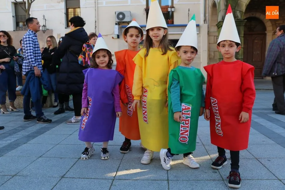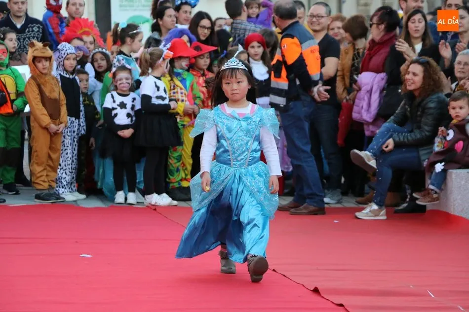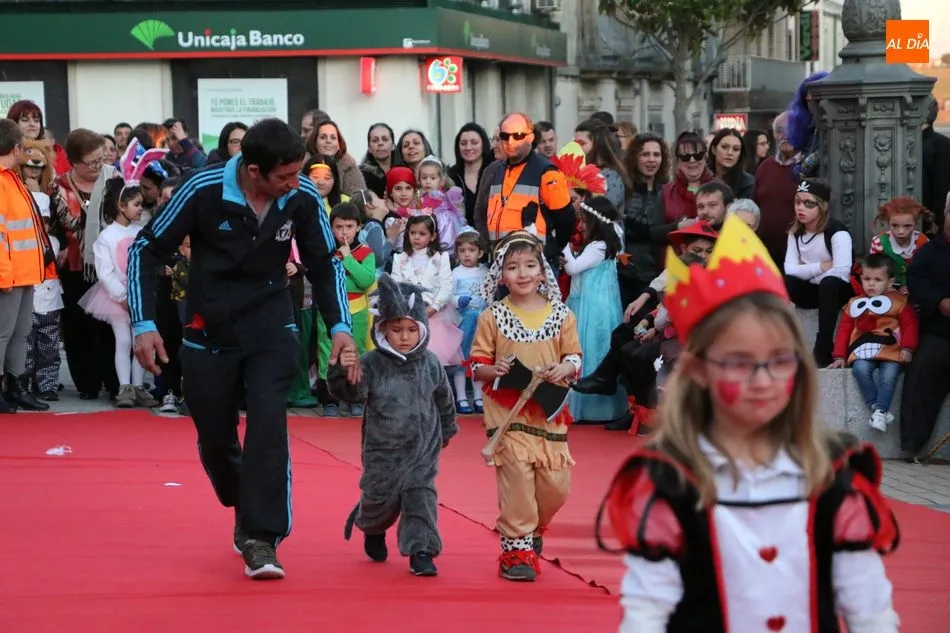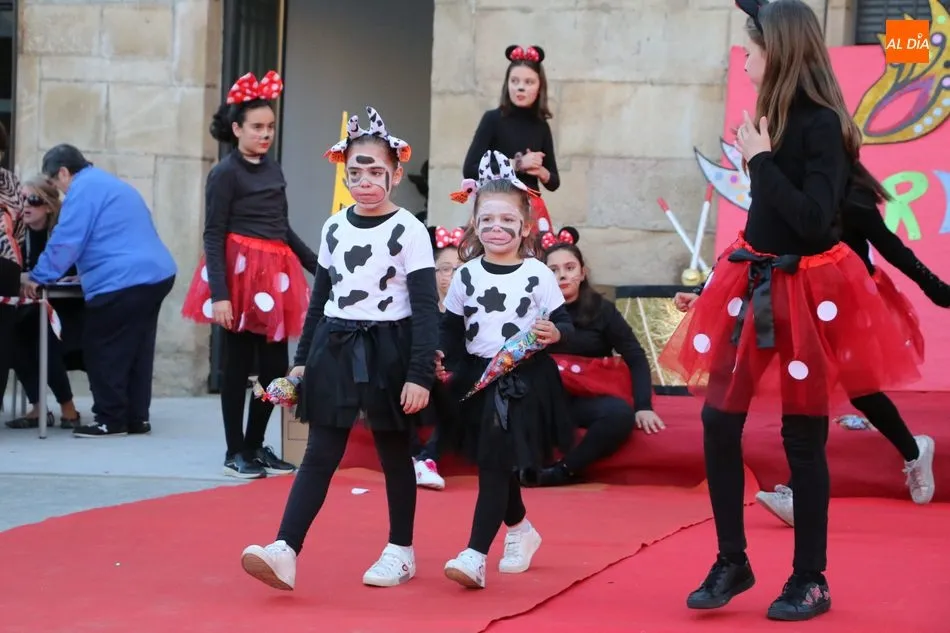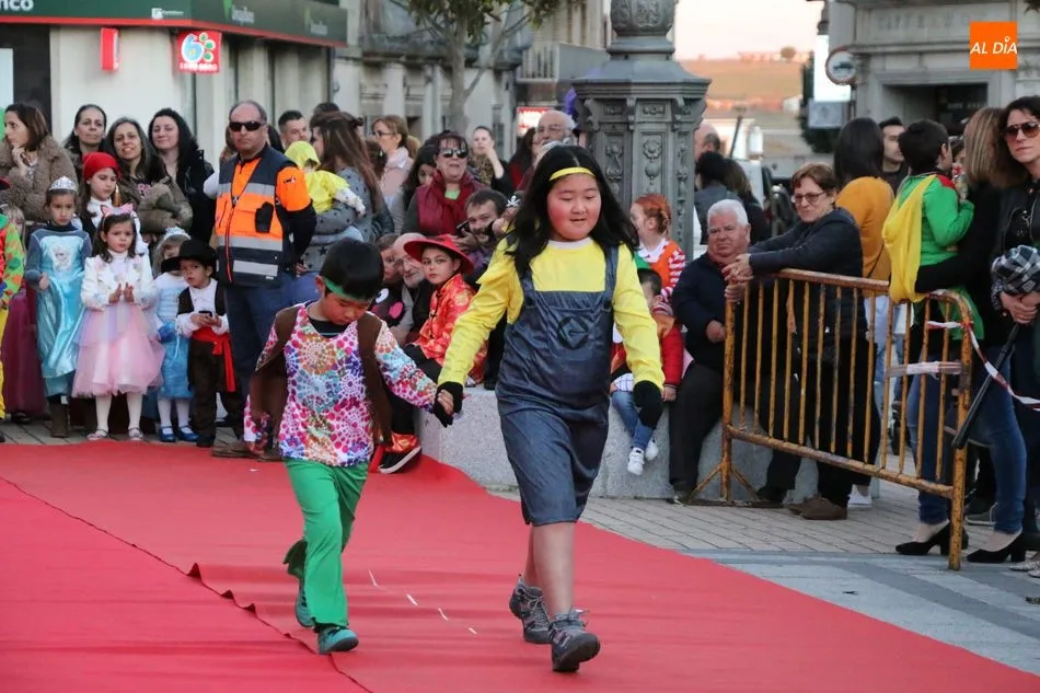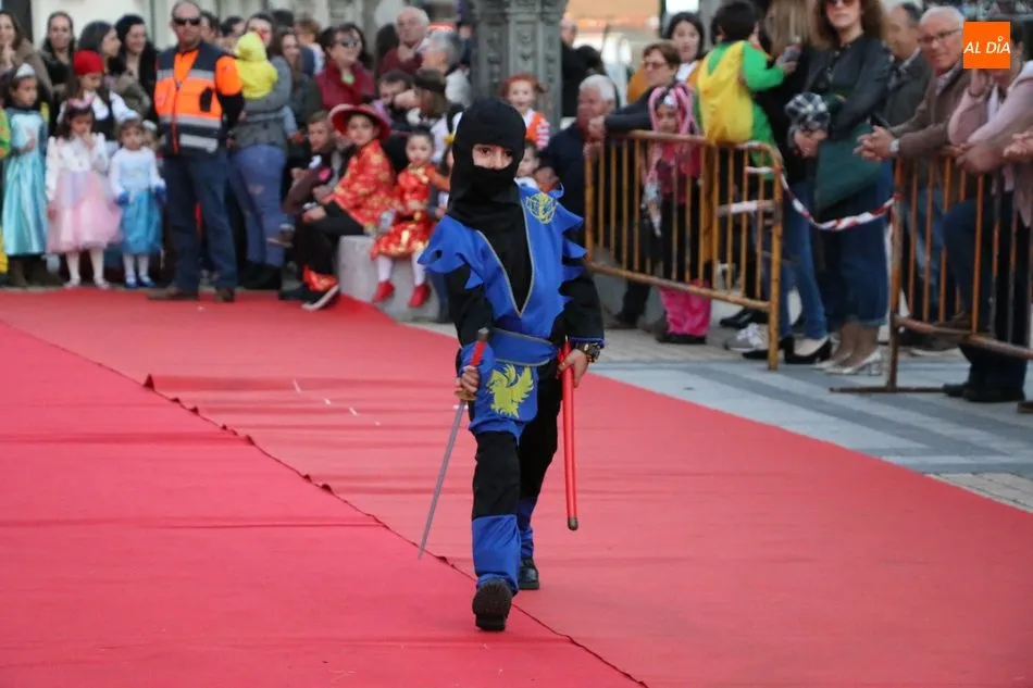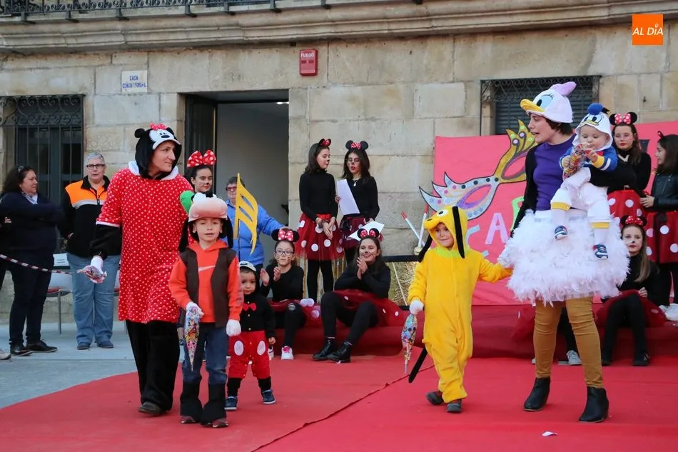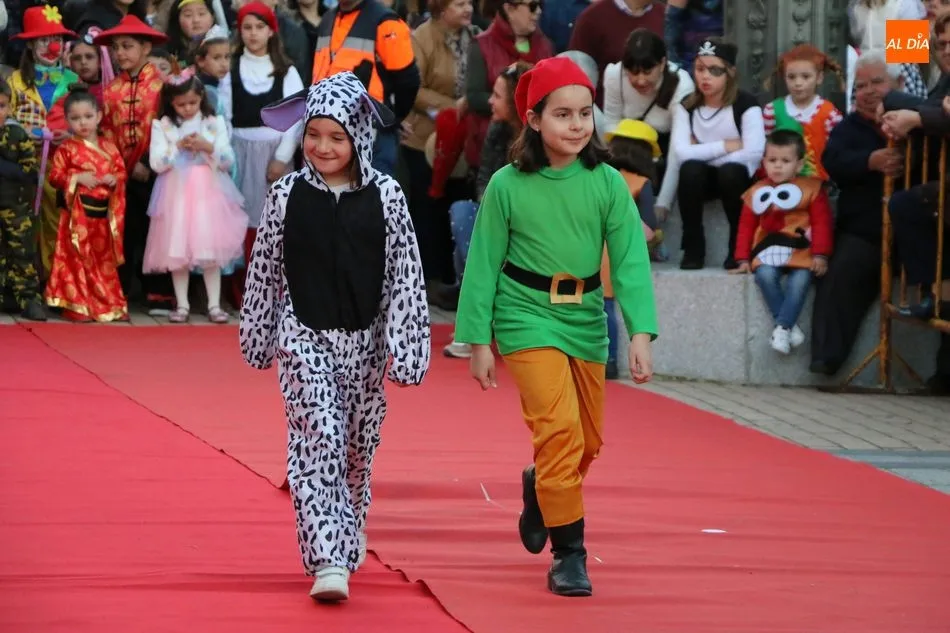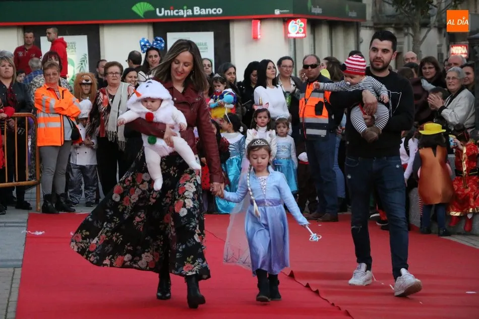 Ahora, eran los más pequeños de Vitigudino los que centraban las miradas de sus padres y abuelos, también de algún que otro hermano, durante un colorido desfile que recorría de una punta a la otra la Plaza del Ayuntamiento, un esfuerzo para algunos y un placer para la mayoría, que demostraban ya su destreza para las pasarelas, incluso hubo quien casi daría aquí sus primeros pasos, aunque todos recibieron como recompensa el aplauso del público, además de una bolsa de chuches, casi lo más agradecido.