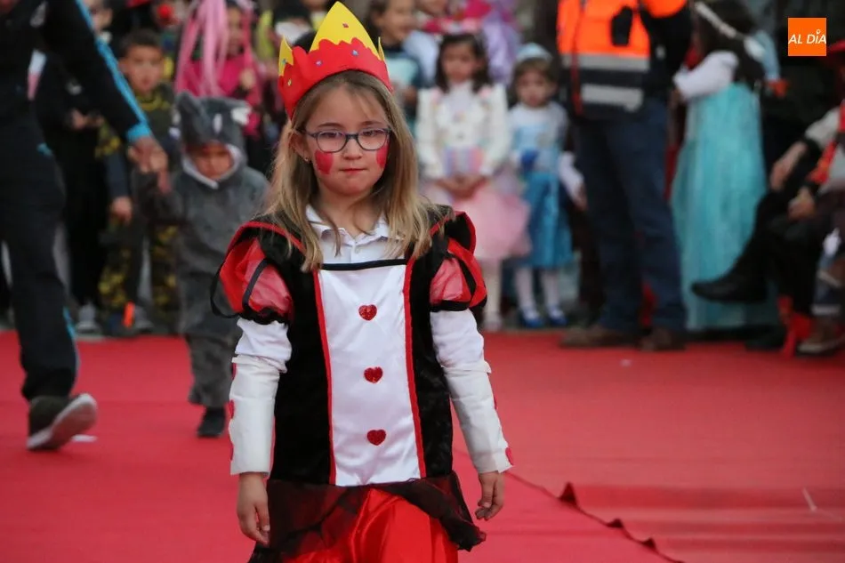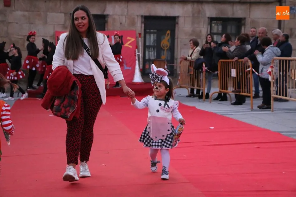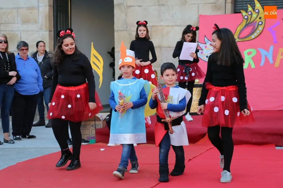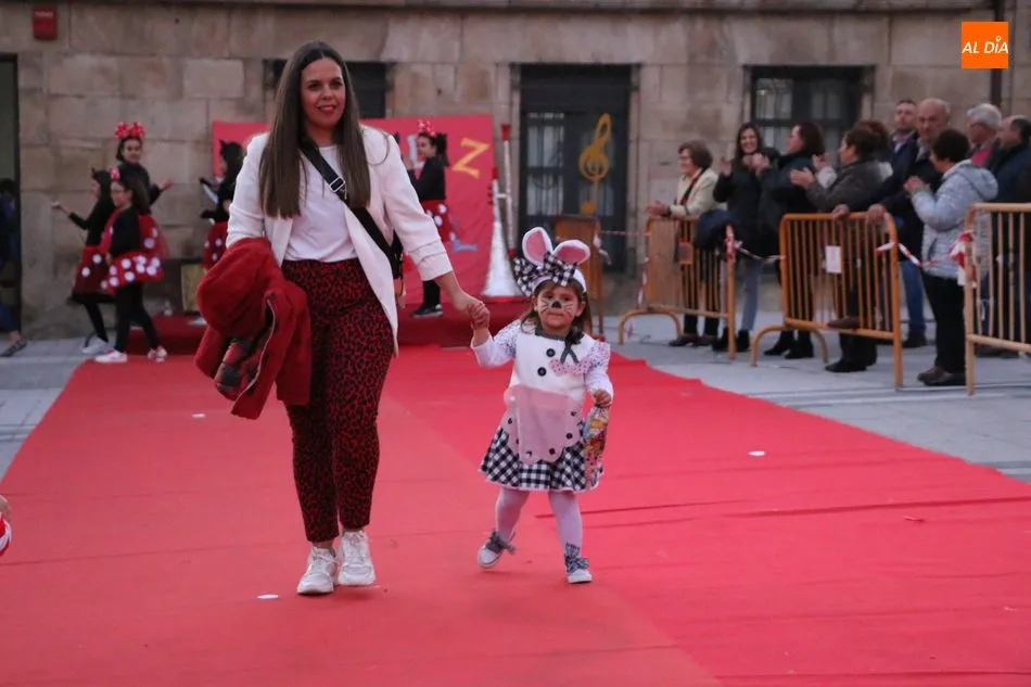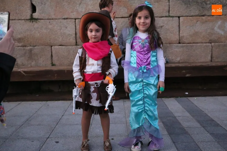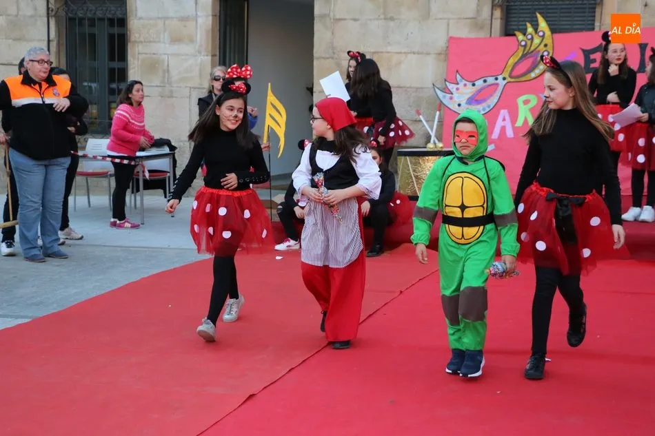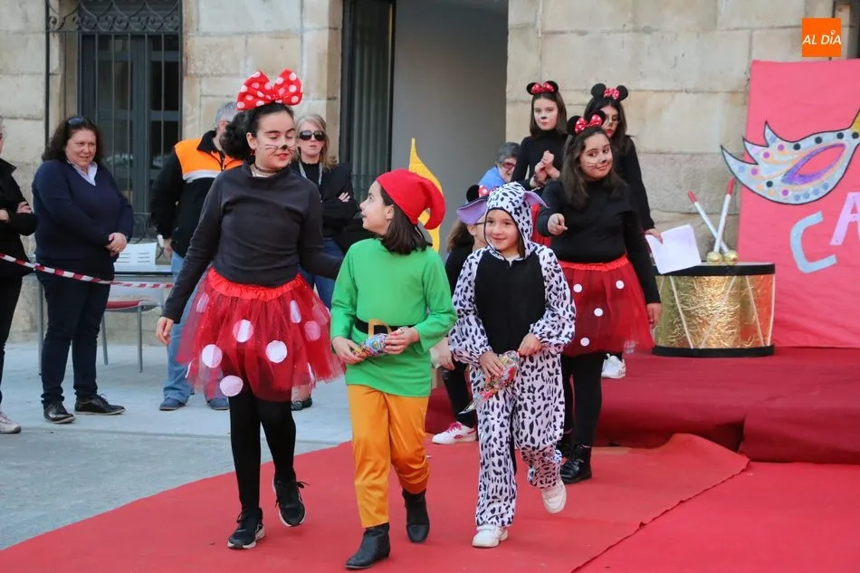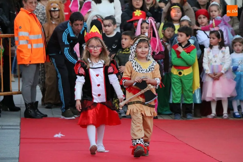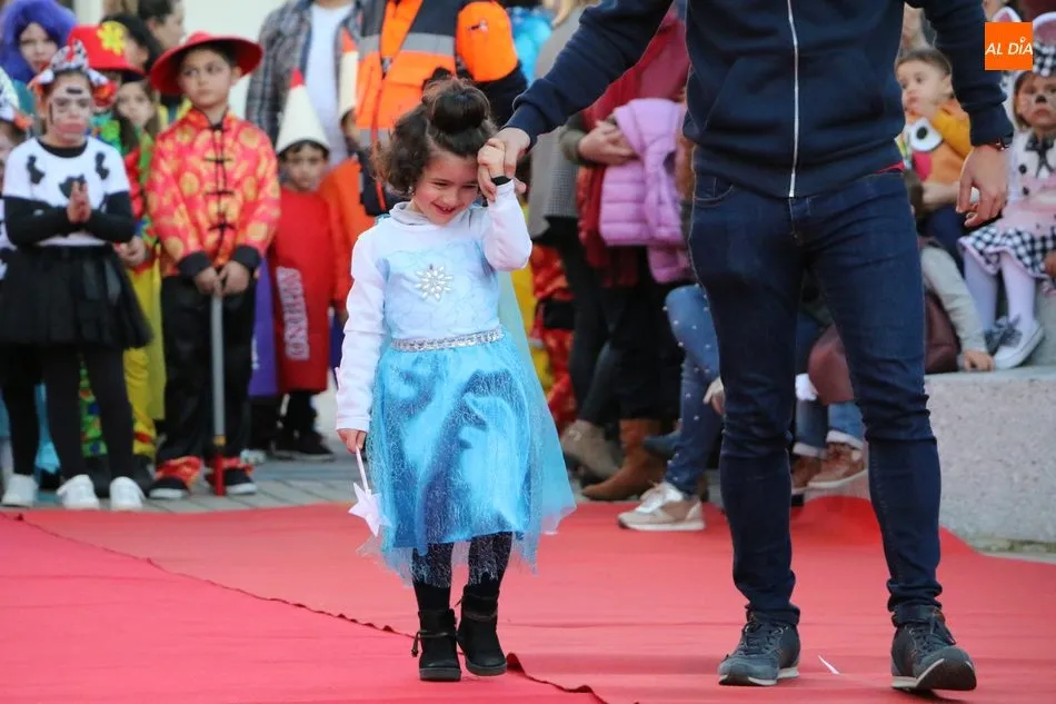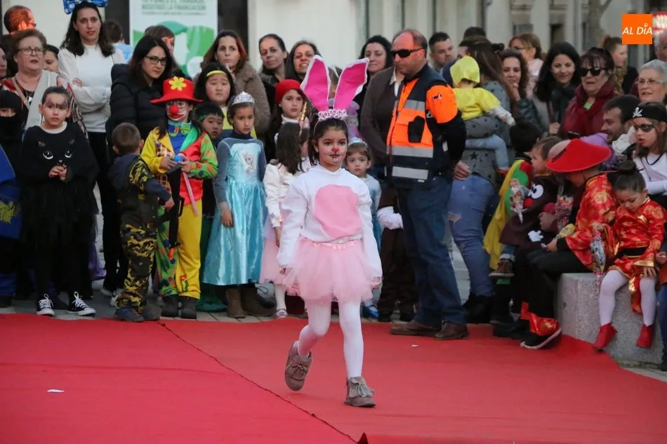 Ahora, eran los más pequeños de Vitigudino los que centraban las miradas de sus padres y abuelos, también de algún que otro hermano, durante un colorido desfile que recorría de una punta a la otra la Plaza del Ayuntamiento, un esfuerzo para algunos y un placer para la mayoría, que demostraban ya su destreza para las pasarelas, incluso hubo quien casi daría aquí sus primeros pasos, aunque todos recibieron como recompensa el aplauso del público, además de una bolsa de chuches, casi lo más agradecido.