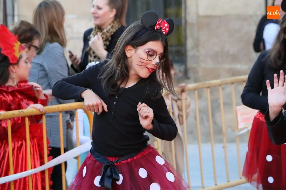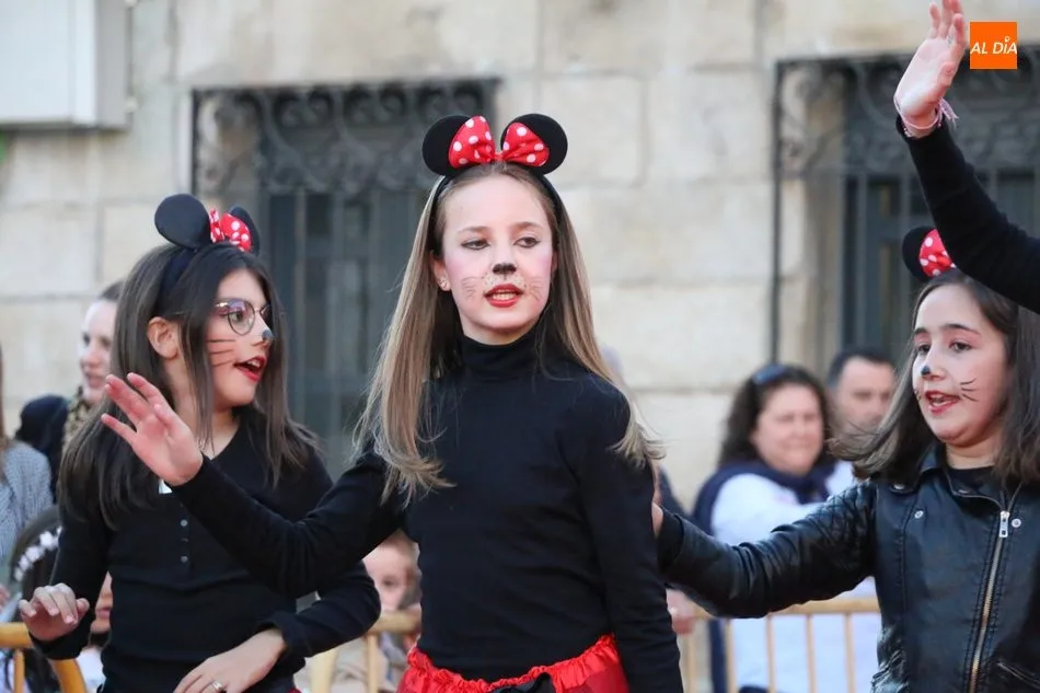 Bonito desfile infantil de disfraces el que tenía lugar este domingo en Vitigudino, evento organizado por el Ayuntamiento y en el que participaban cerca de un centenar de niños vestidos de mil y un personajes, acompañados todos por un divertido grupo de ratoncitas que obsequiaban al público un baile antes del inicio del desfile.