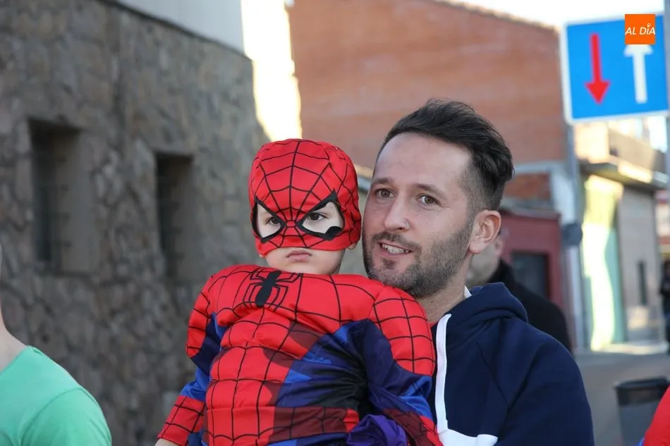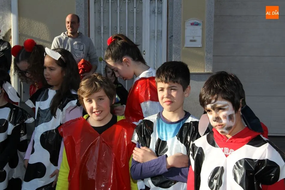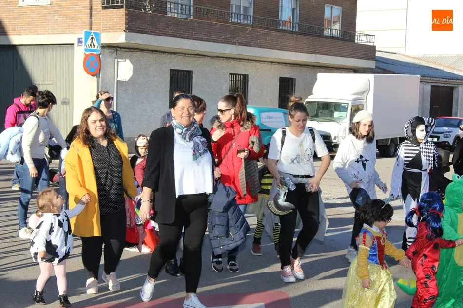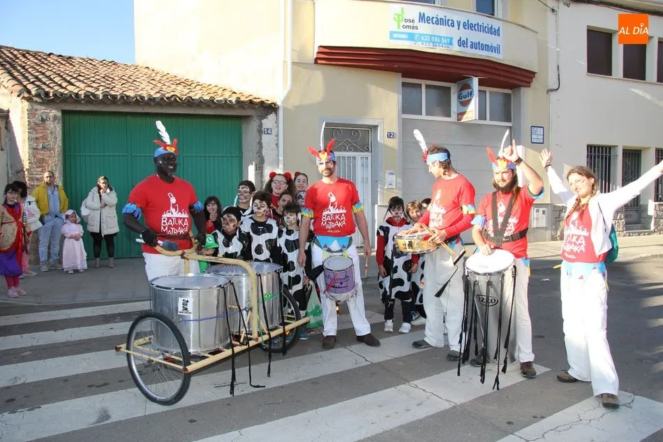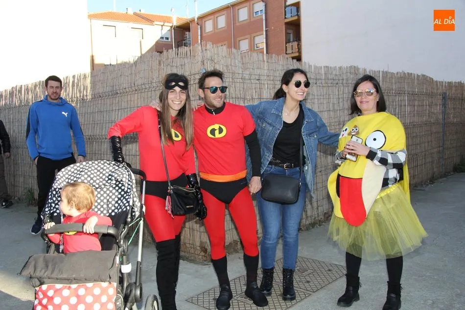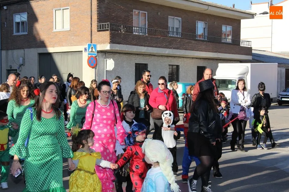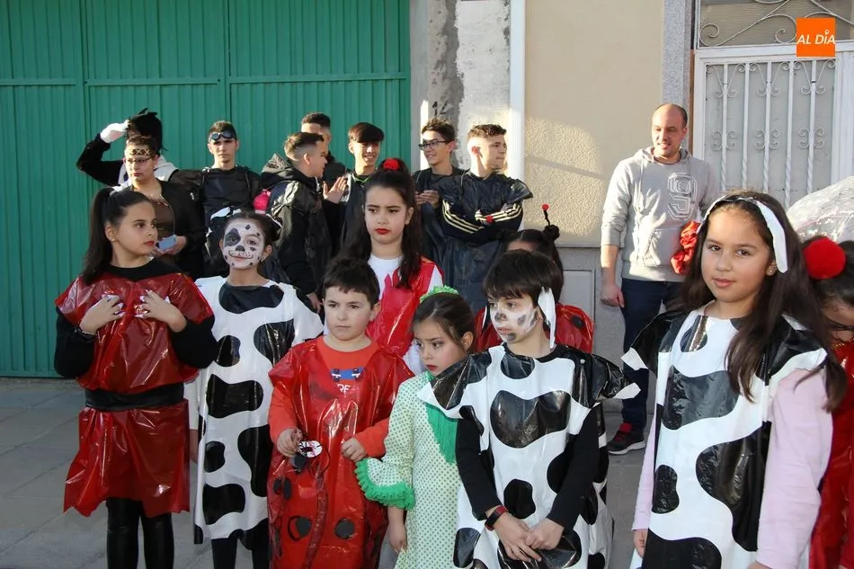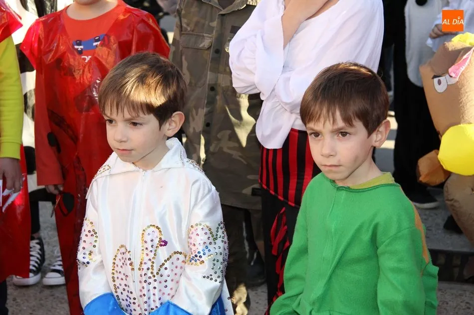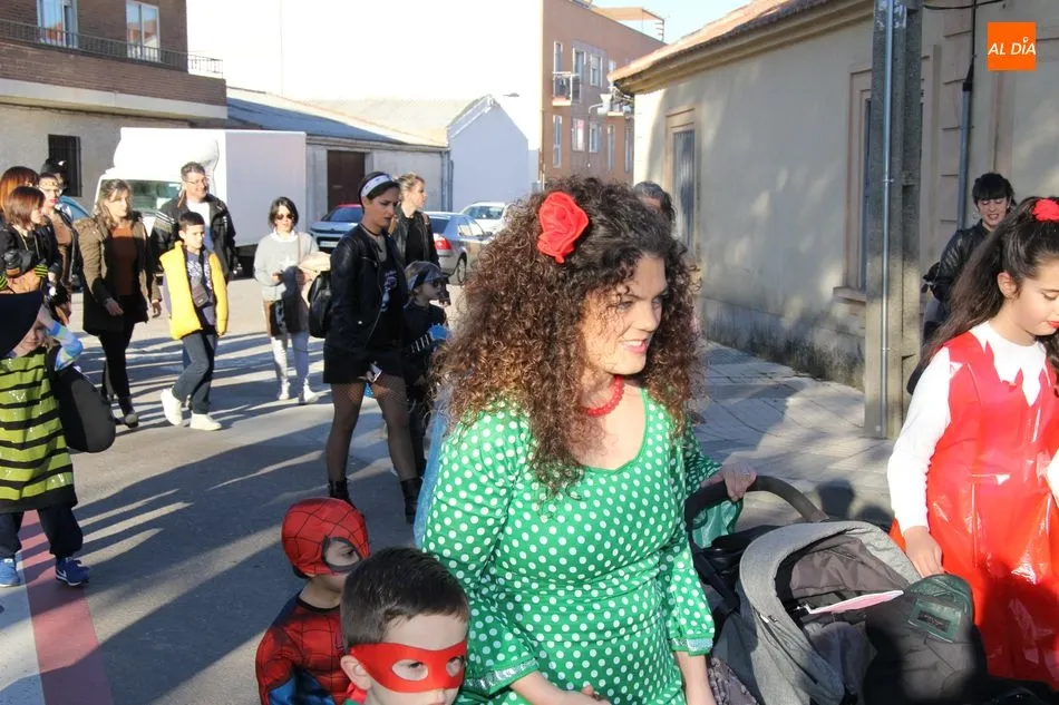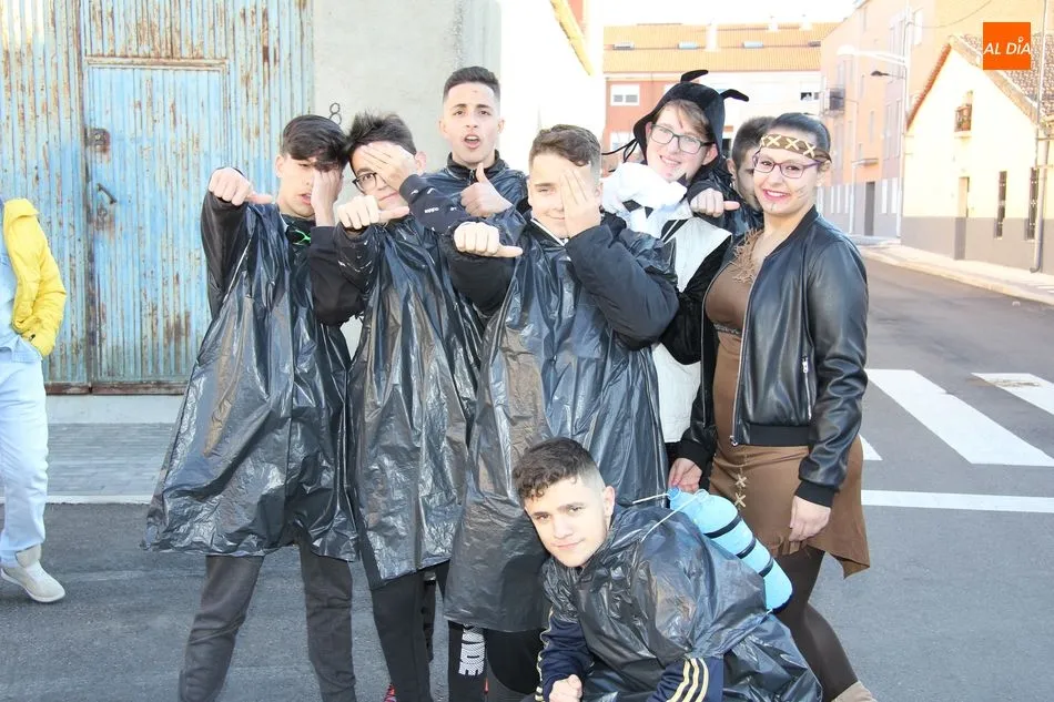 Ambiente festivo en Castellanos de Moriscos para celebrar el Carnaval. Los originales disfraces han sido los protagonistas del animado y participativo con pasacalles y mini disco, organizado este domingo por Ciudad de las Niñas y Niños de Castellanos de Moriscos y los jóvenes del Centro de Castellanos.